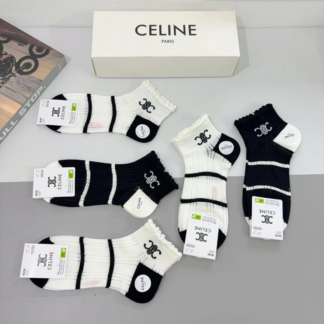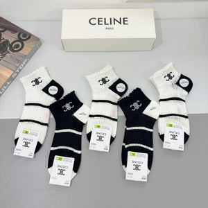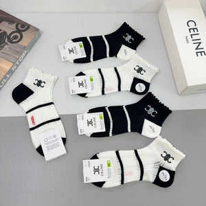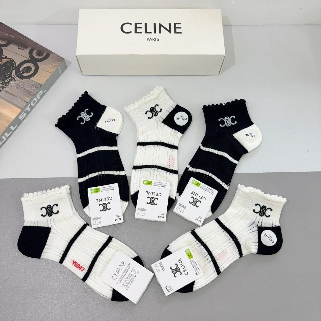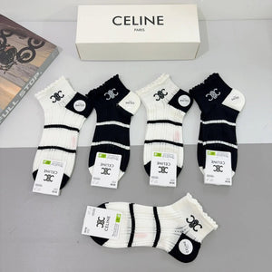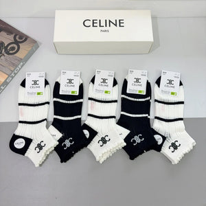 Celine Sock 【a Box5Double】Classic Pair C Letters logo Breathable Fashion25ss New Short Cotton Socks Spring Summer Autumn Thin Business Sports Casual Versatile Deodorant Sweat-Absorbing