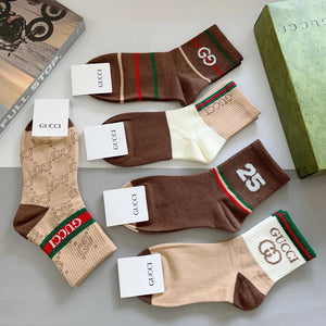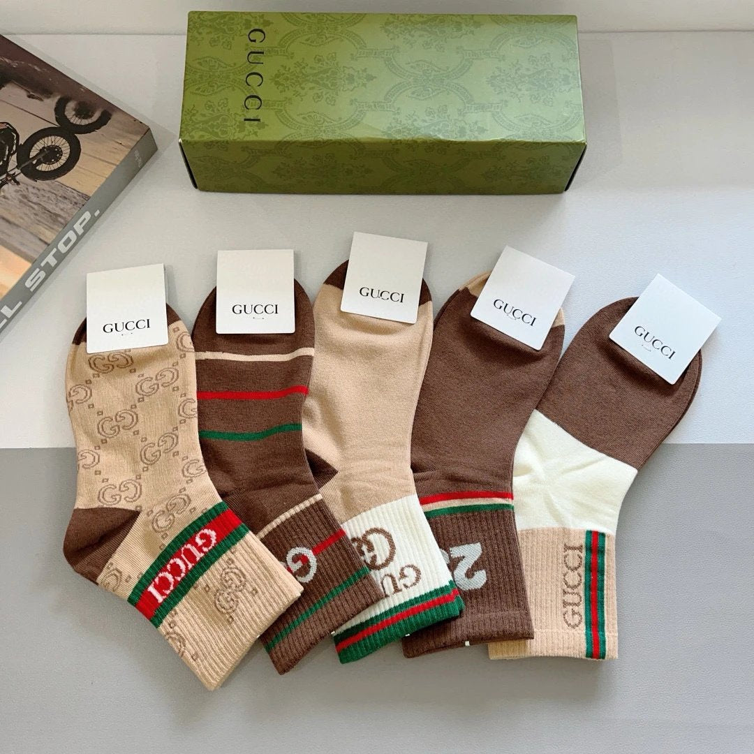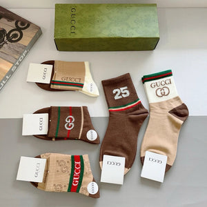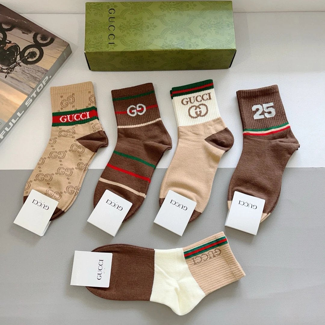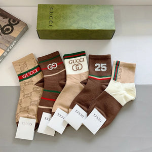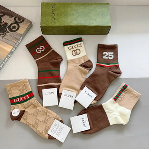Gucci Sock 【a Box5Double】Classic Pair G Letters logo Breathable and Stylish Pure Cotton Mid-Calf Socks25ss New Cotton Socks Spring Summer Autumn Thin Business Sports Casual Versatile Deodorant Sweat-Absorbing
