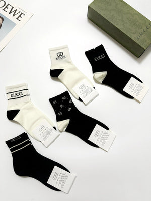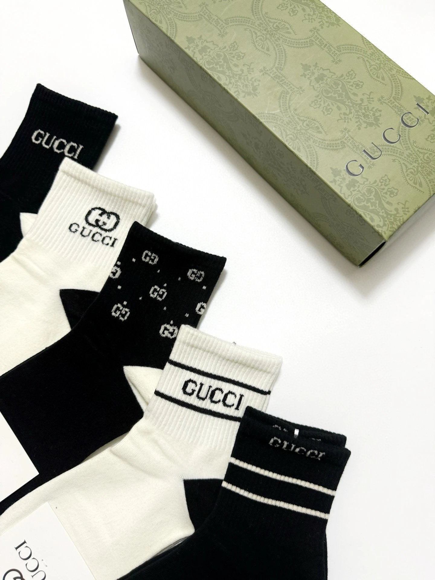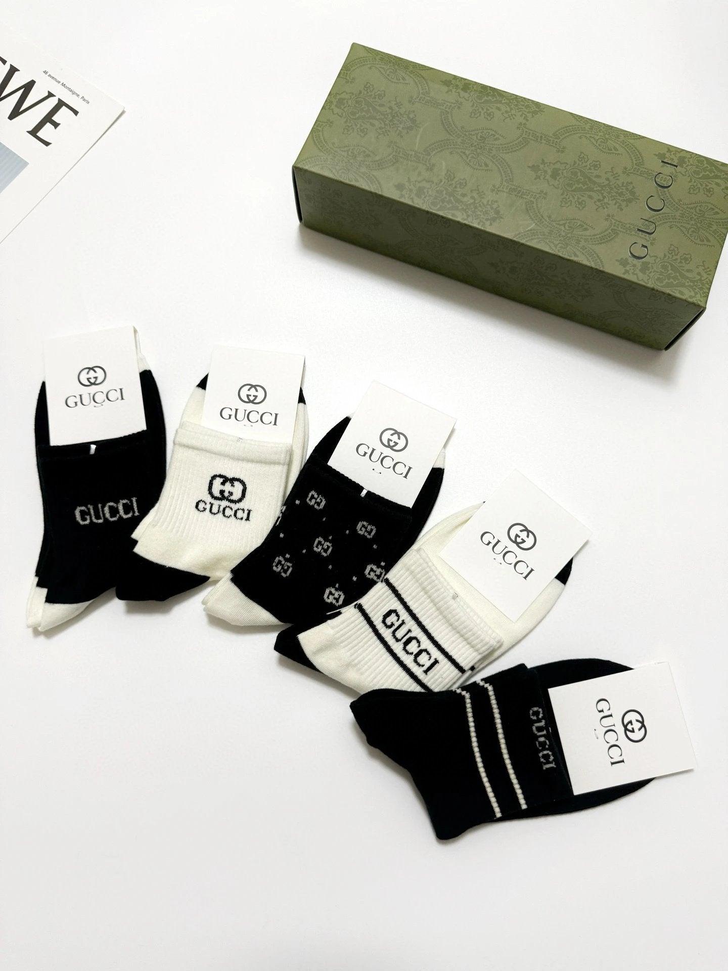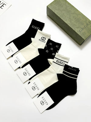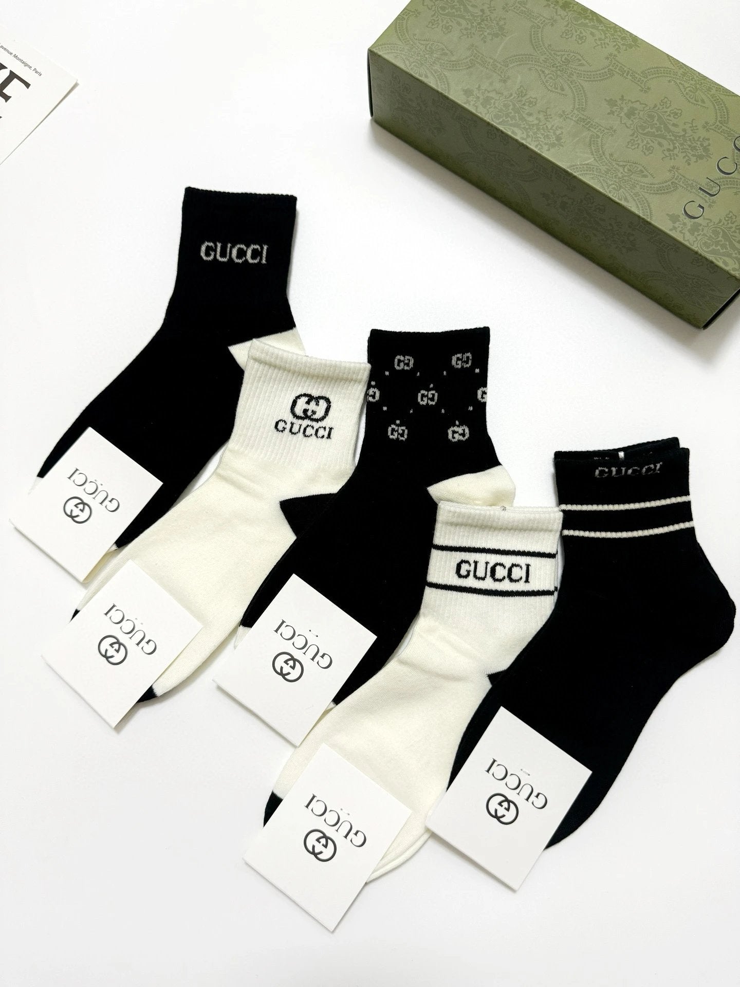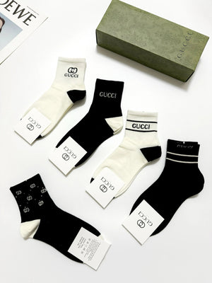 Gucci Sock 【a Box5Double】Classic Pair G Letters logo Breathable and stylish pure cotton25ss New Short Tube Cotton Socks Thin Business Sports Casual Spring Summer Autumn Versatile Deodorant Sweat-Absorbing