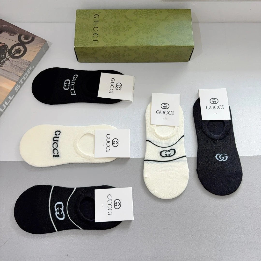 Gucci Sock 【a Box5Double】Classic Pair G Letters logo Breathable Fashion25ss New Short Cotton Socks Spring Summer Autumn Thin Business Sports Casual Versatile Deodorant Sweat-Absorbing