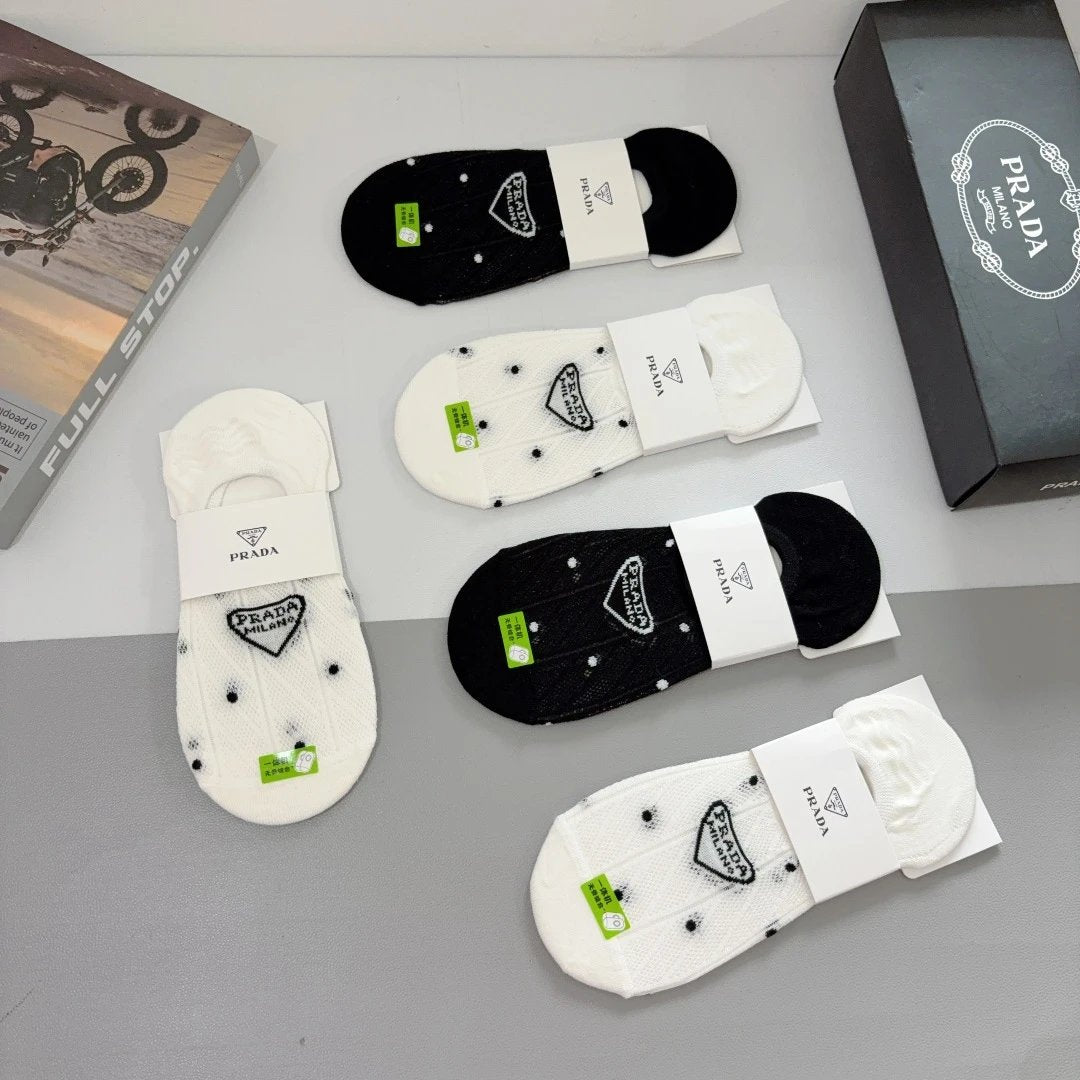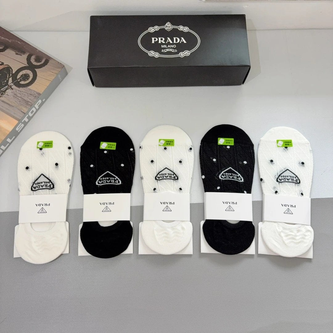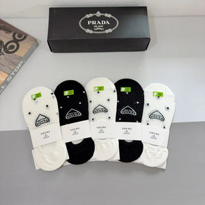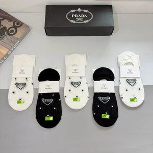 PRADA Sock 【a Box5Double】Classic Triangle Logo logo Breathable Fashion25ss New Short Cotton Socks Spring Summer Autumn Thin Business Deodorant Sweat-Absorbing Sports Casual Versatile