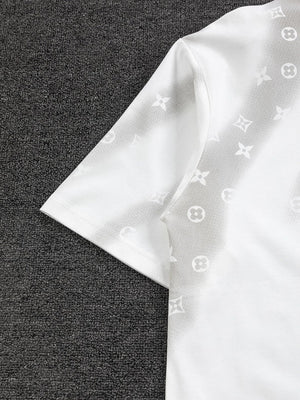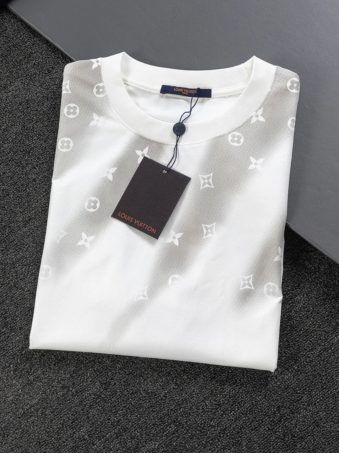 25SS New Arrival Counter Sync Classic Full Floral Gradient Print Crew Neck T-Shirt Unisex! Official website synchronization, exclusive pure cotton fabric! Skin-friendly and comfortable, durable and easy to wear, classic simple logo design, meticulous original craftsmanship. A must-have item for stylish men; short sleeves should not be cookie-cutter but unique and eye-catching. This LV short sleeve has top-notch quality, comfort level, consistent style, and fashionability Including fabric and cutting craftsmanship, we've put in a lot of effort! 320g washed pure cotton fabric, breathable pure cotton makes it very refreshing and comfortable for daily wear. The ribbed knit at the neckline is smooth and tight, ensuring it won't slip off when casually tossed around. Loose fit makes you look really nice when worn; overall minimalist and neat style that's super versatile for everyday wear! Pair it casually with pants for a youthful look or a T-shirt for a wild outfit; you can't go wrong with this fashionable piece! Available in black and white, sizes S-XL