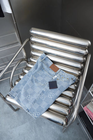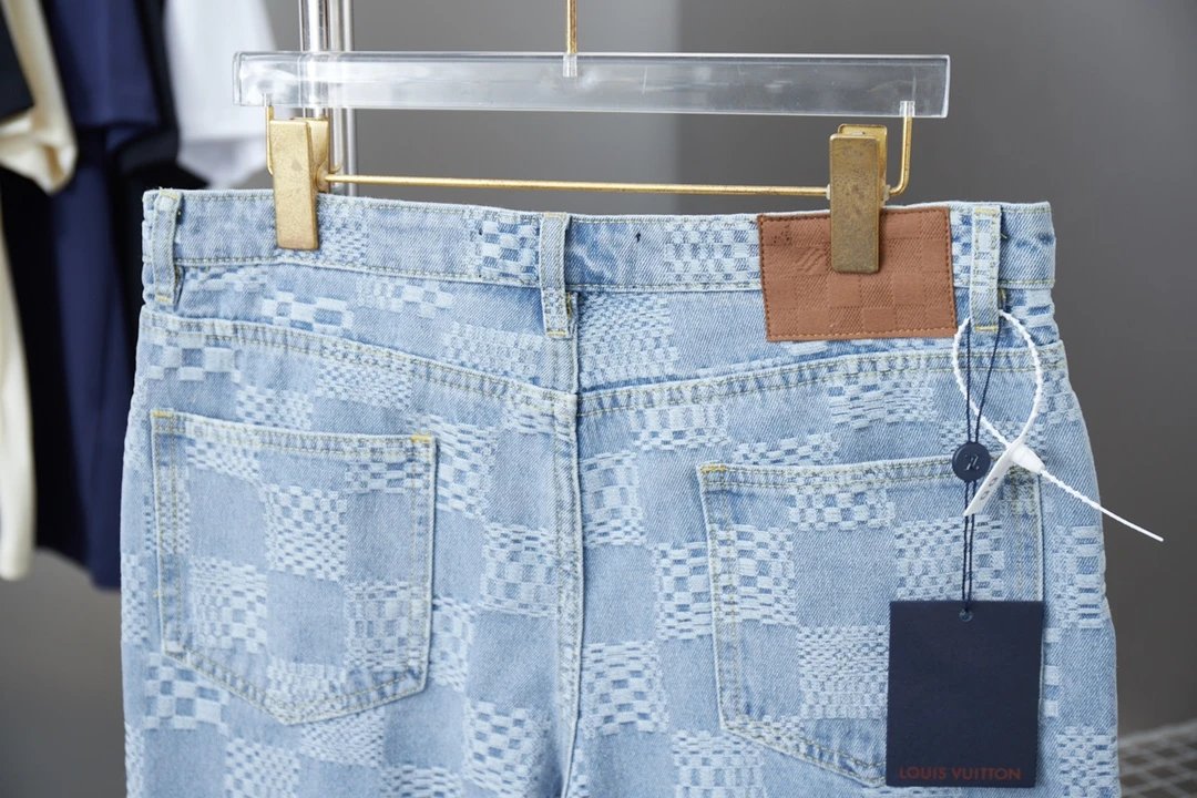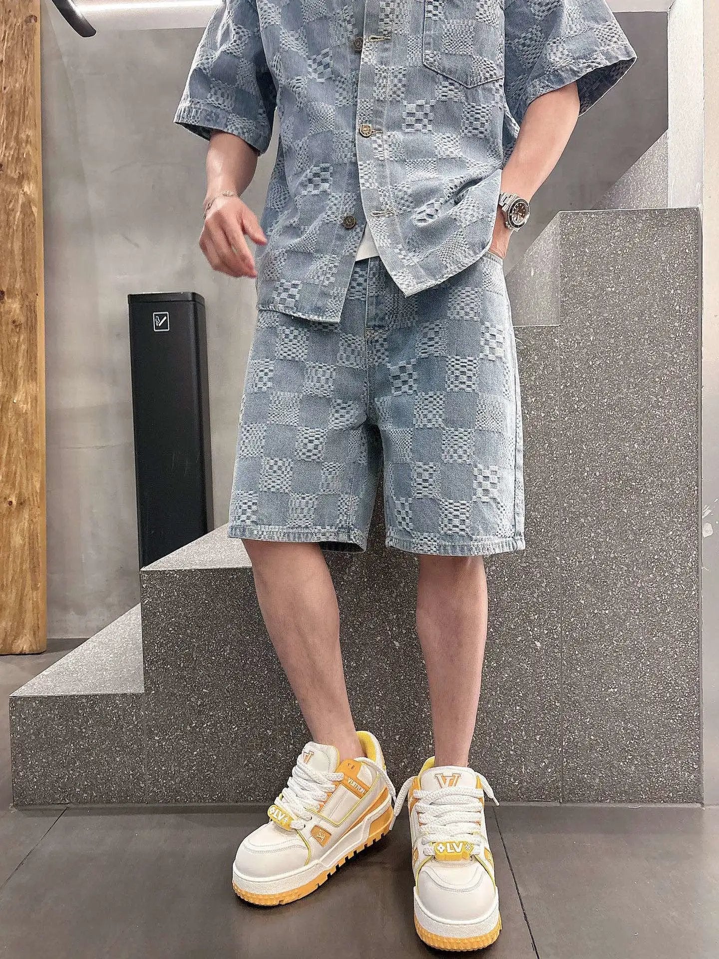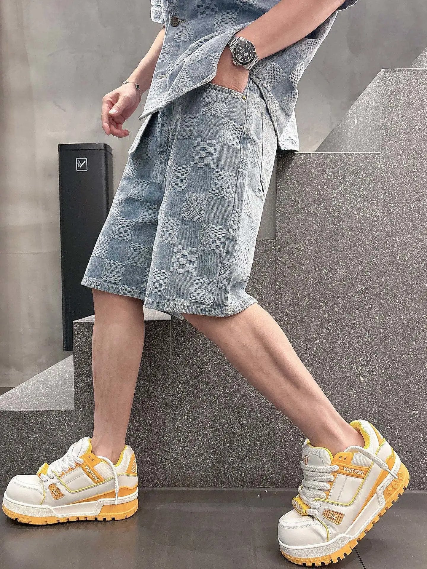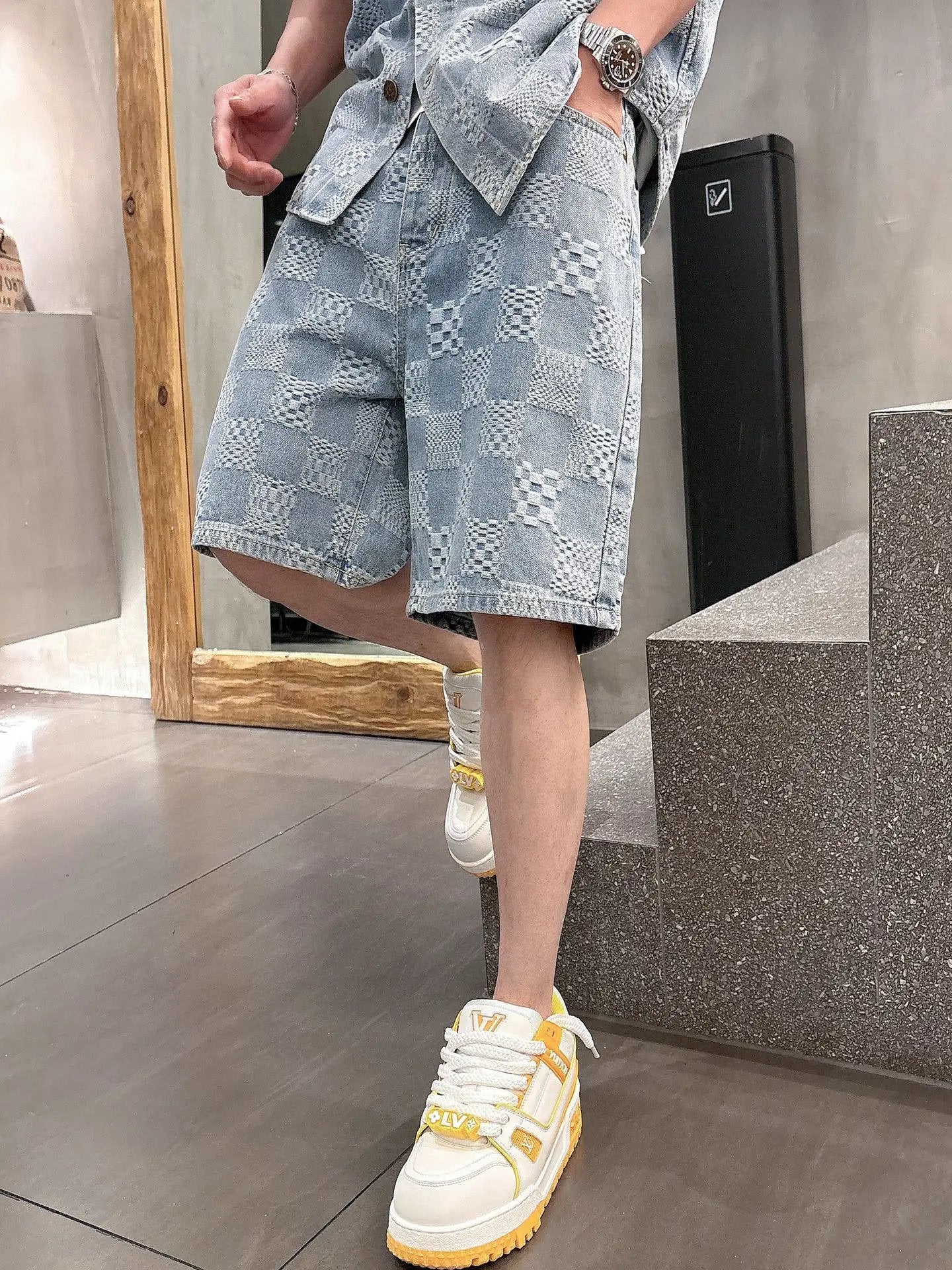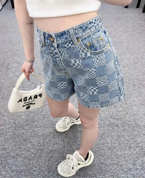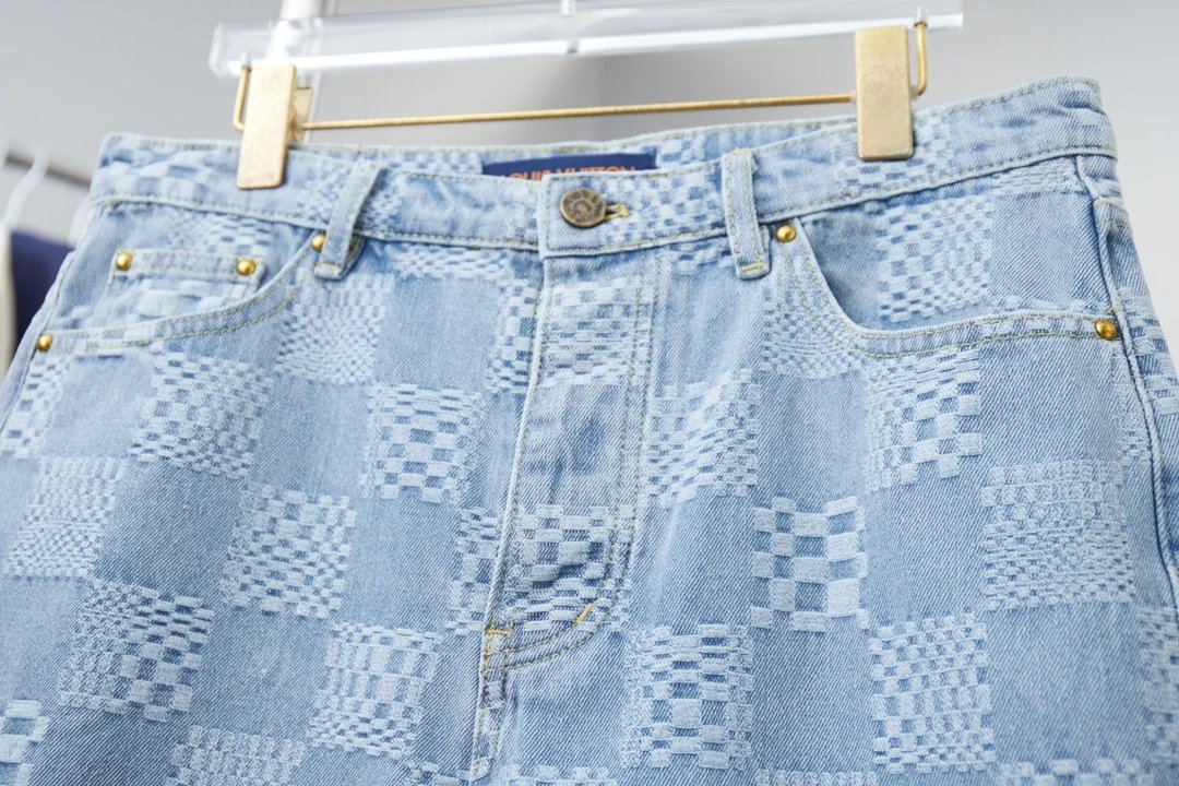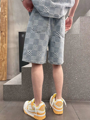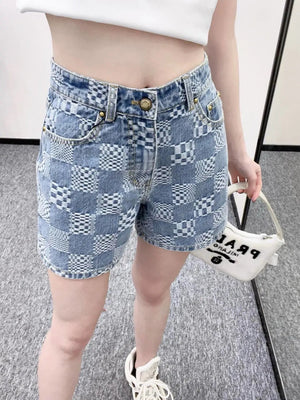 Louis Vuitton LV 25SS Early Spring New Jacquard Plaid Denim Shorts