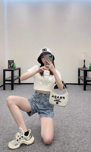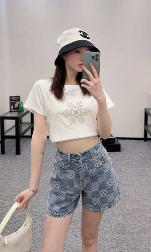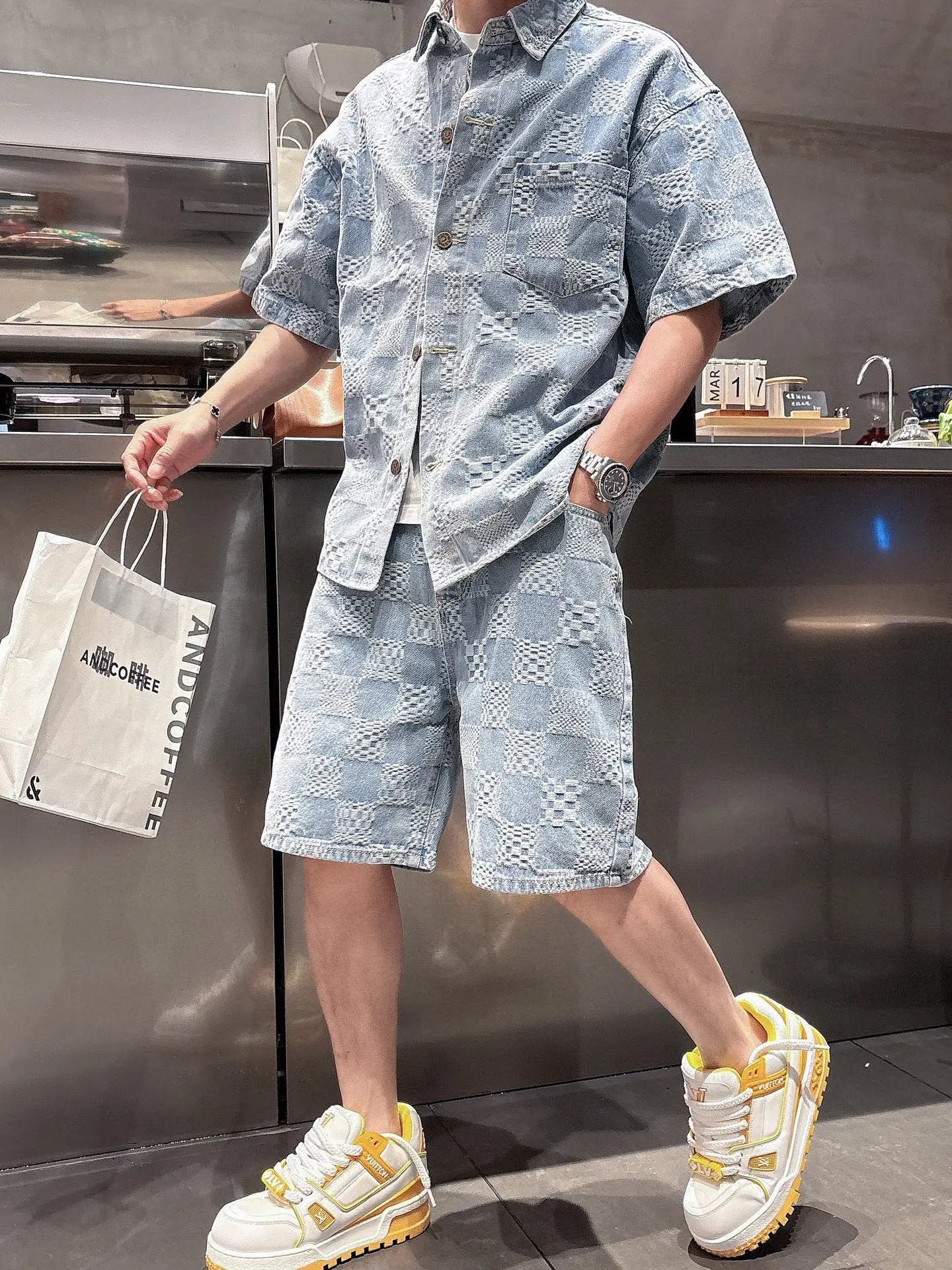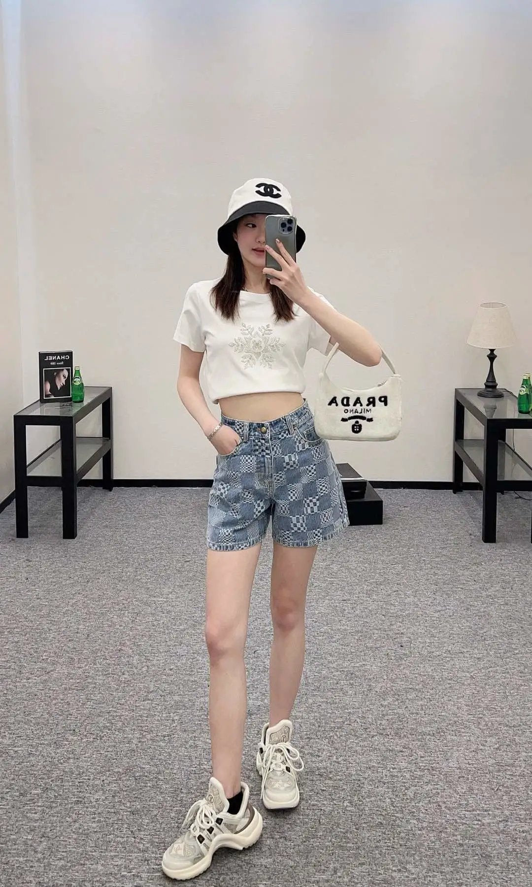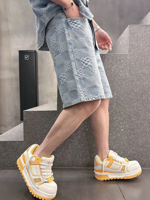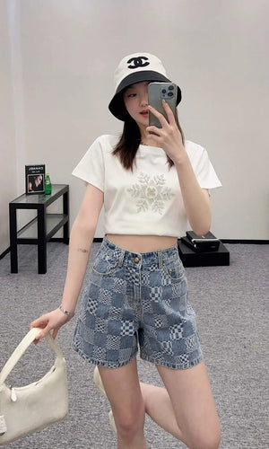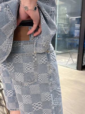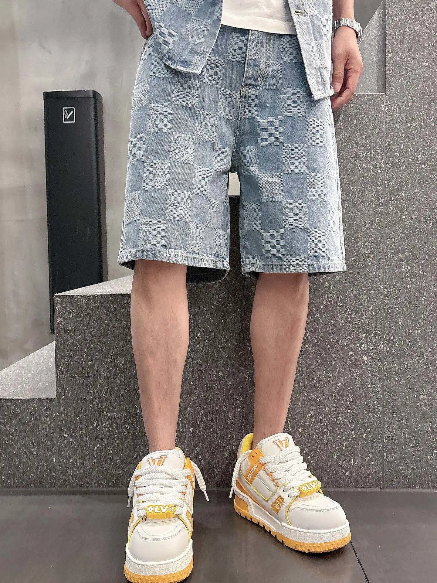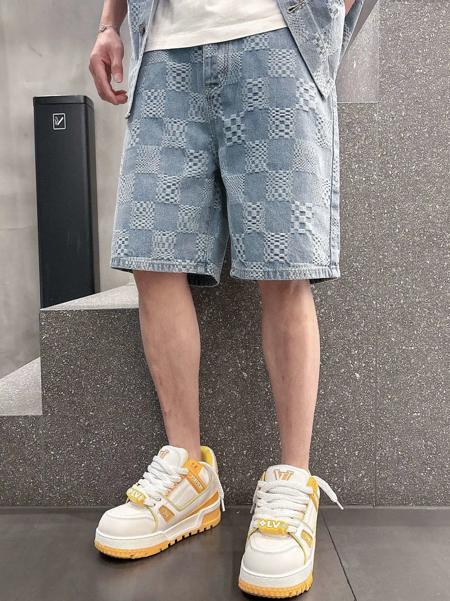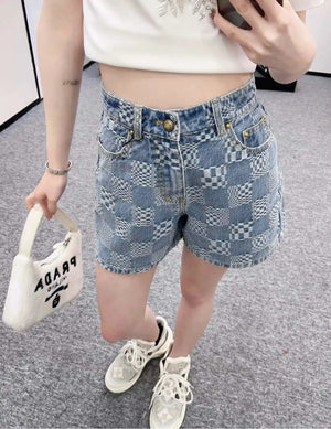 Louis Vuitton LV 25SS Early Spring New Jacquard Plaid Denim Shorts