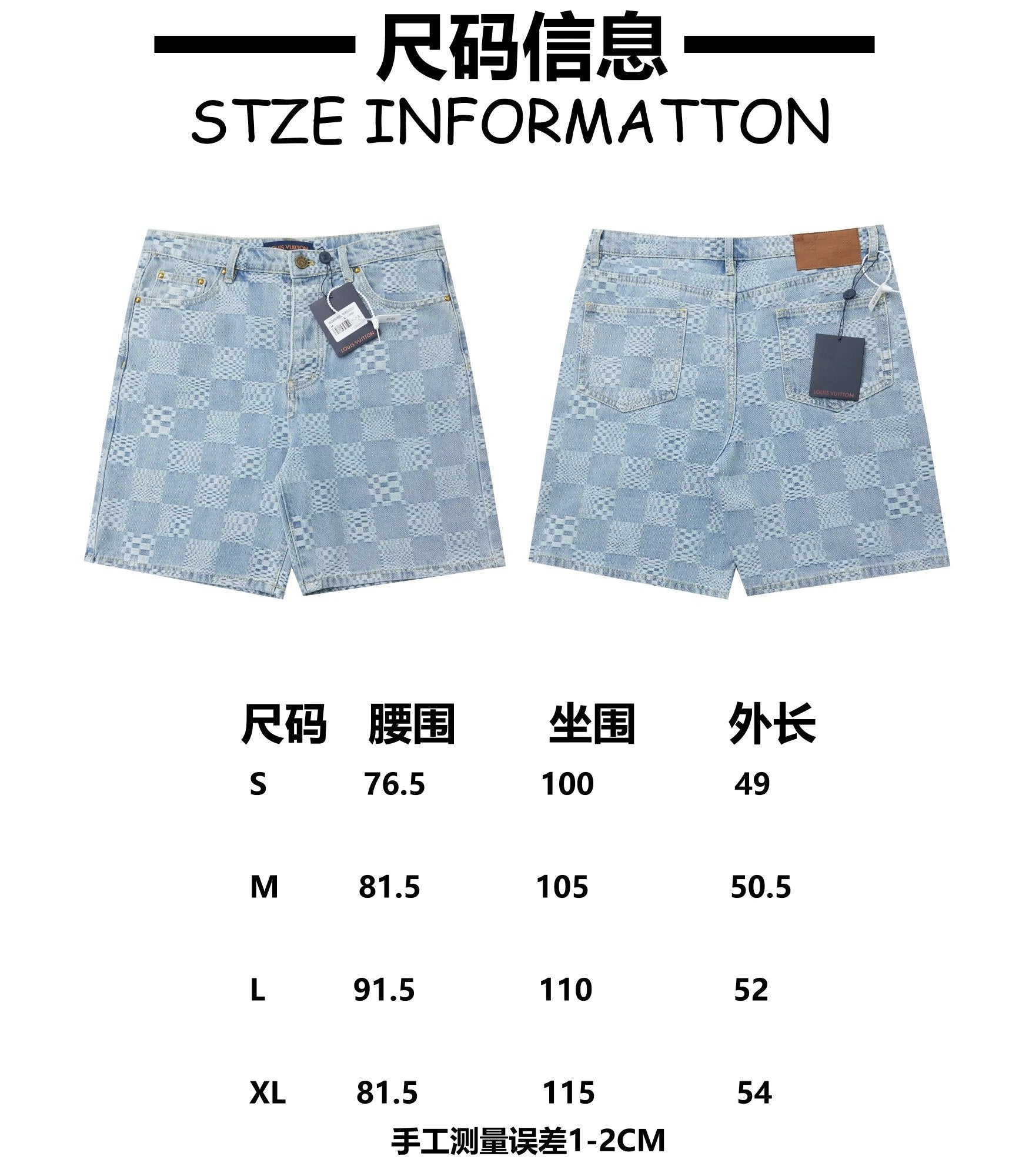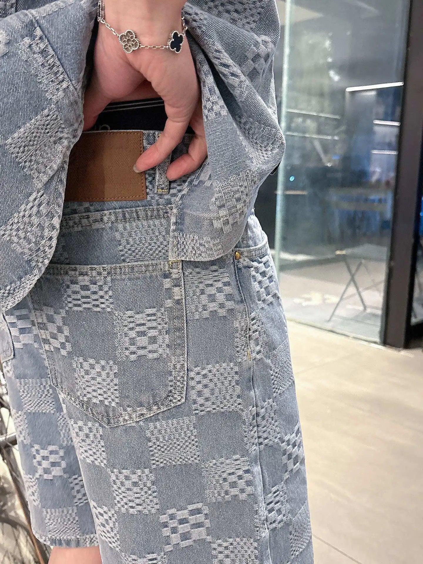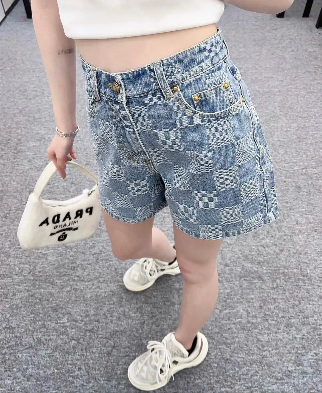 Louis Vuitton LV Shorts Allover Plaid Jacquard logo Denim Shorts Five-Point Pants25ss New Casual Unisex Summer Pants5Casual Sweatpants