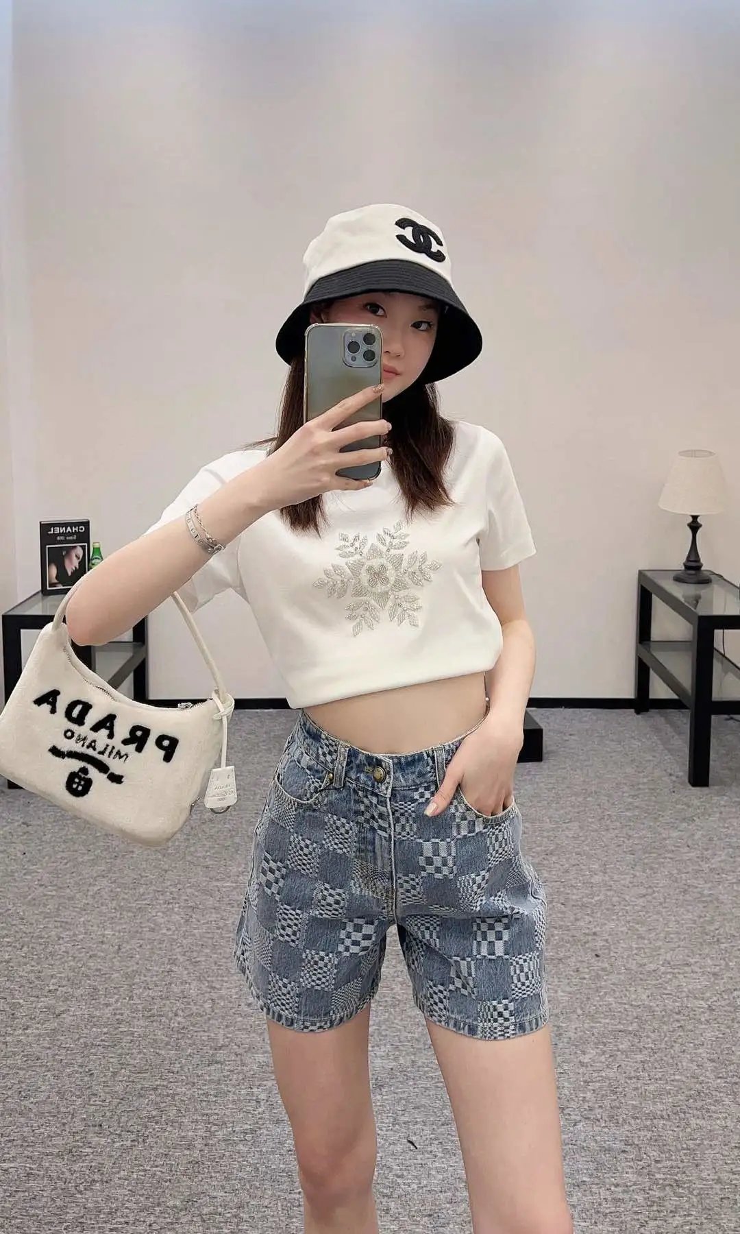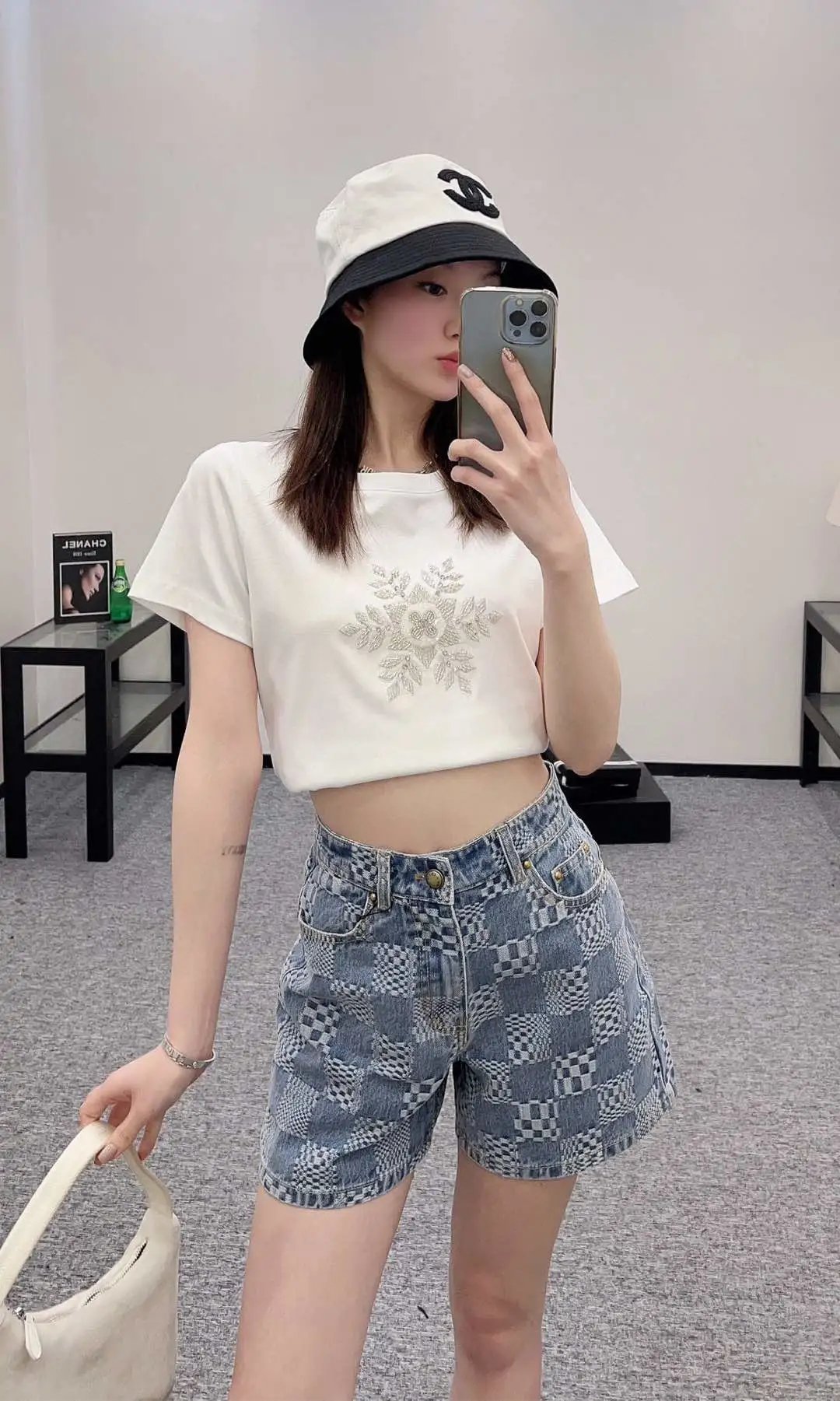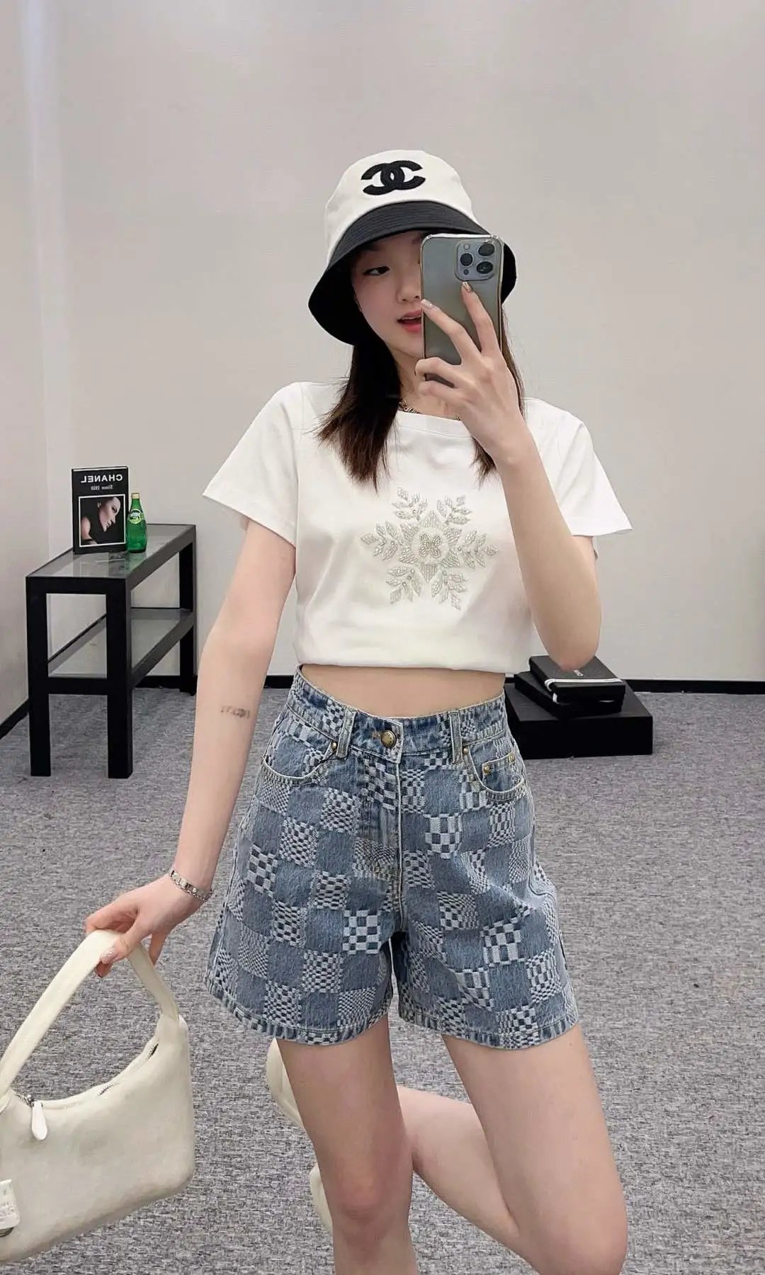 Louis Vuitton LV Shorts Allover Plaid Jacquard logo Denim Shorts Five-Point Pants25ss New Casual Unisex Summer Pants5Casual Sweatpants