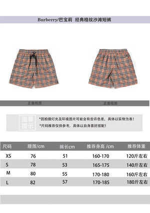 Burberry Shorts Allover Plaid Print logo Beach Shorts25ss New Five-Point Pants os Loose Quick-Dry Unisex Casual Trendy Brand Big Shorts5Pants
