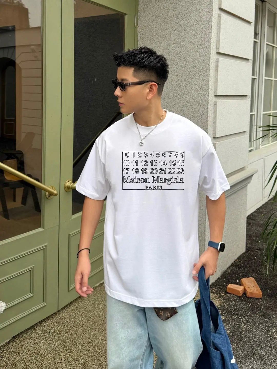 Maison Margiela T-shirt Alphabet Doodle Numbers logo Printed round Neck Short Sleeve25ss New Pure Cotton Unisex Style T T-shirt OS Loose Fit Base Shirt Short Sleeve Top T-Shirt