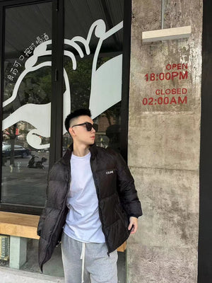 Celine Down Jacket Arc De Triomphe Dark Pattern Stand-up Collar down Jacket Same Style for Men and Women