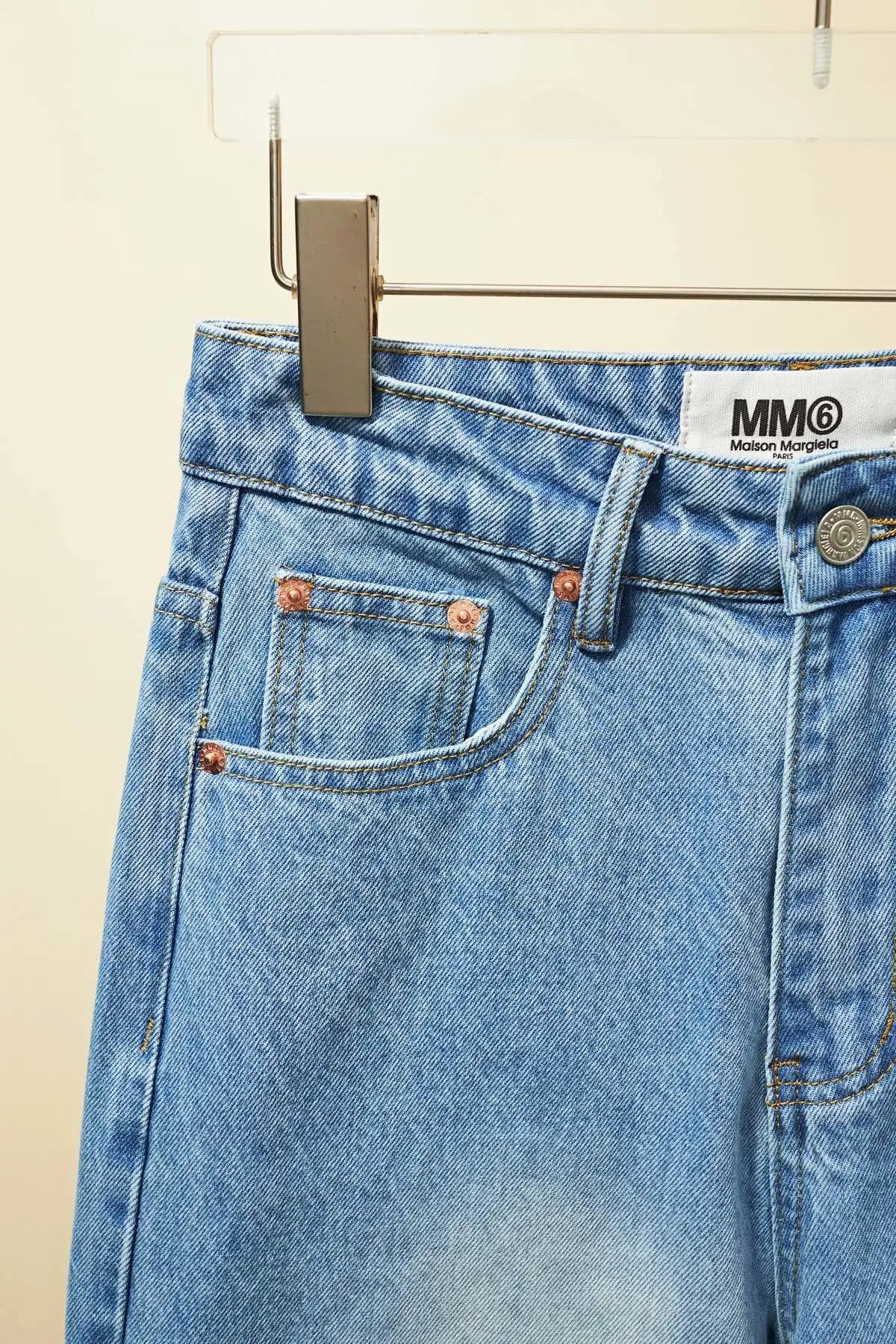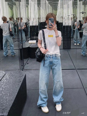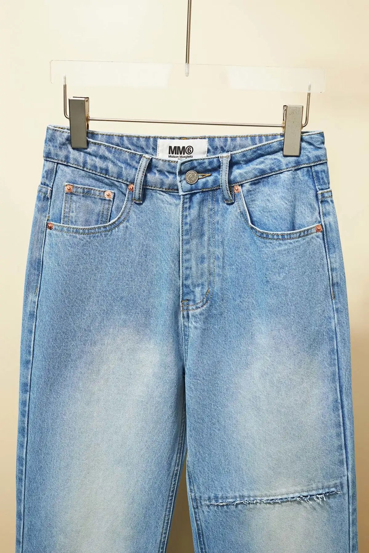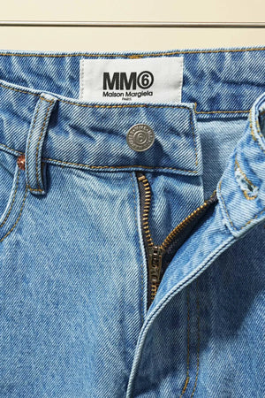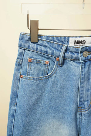 Top Version MM6 Margiela Asymmetric Split Line Denim Long Pants Women Straight Versatile Casual