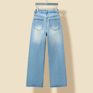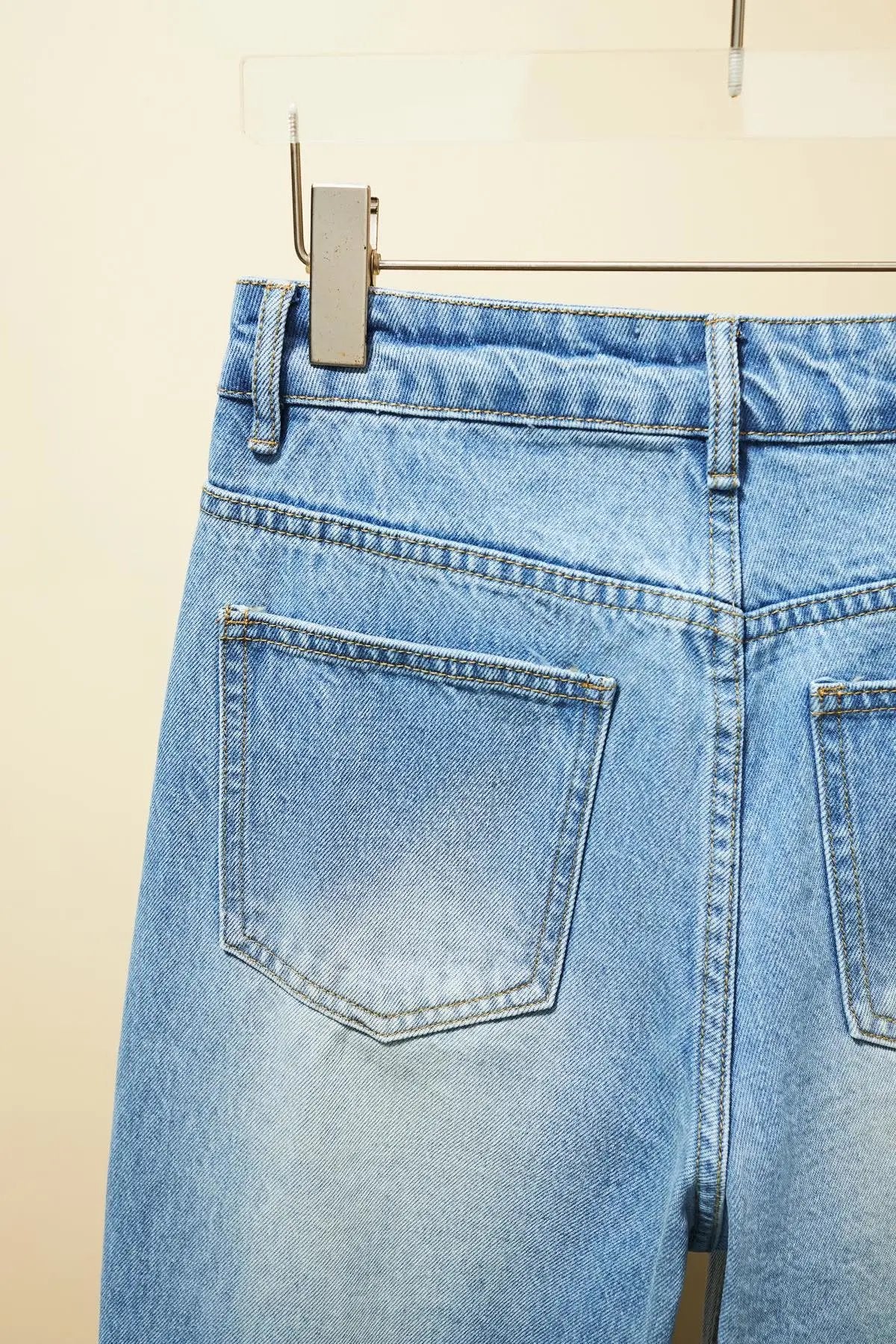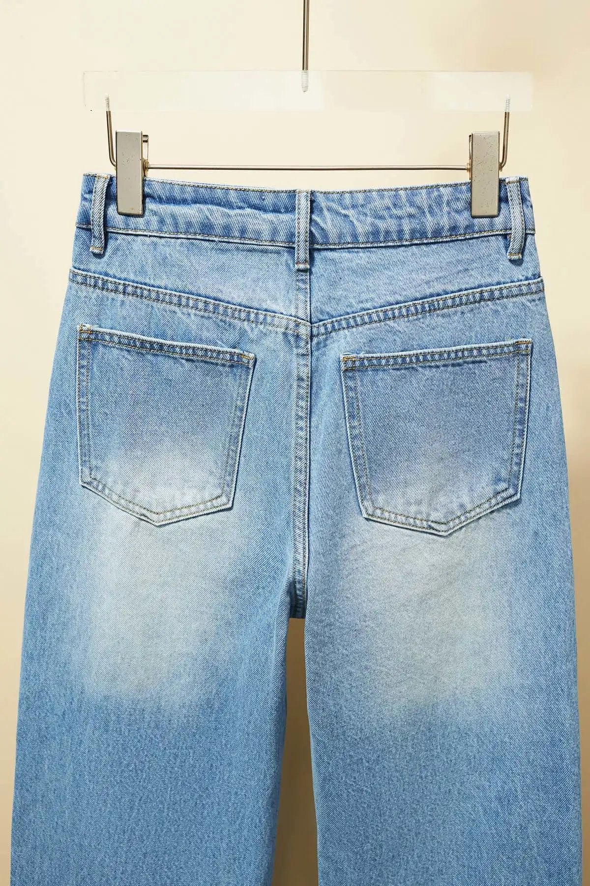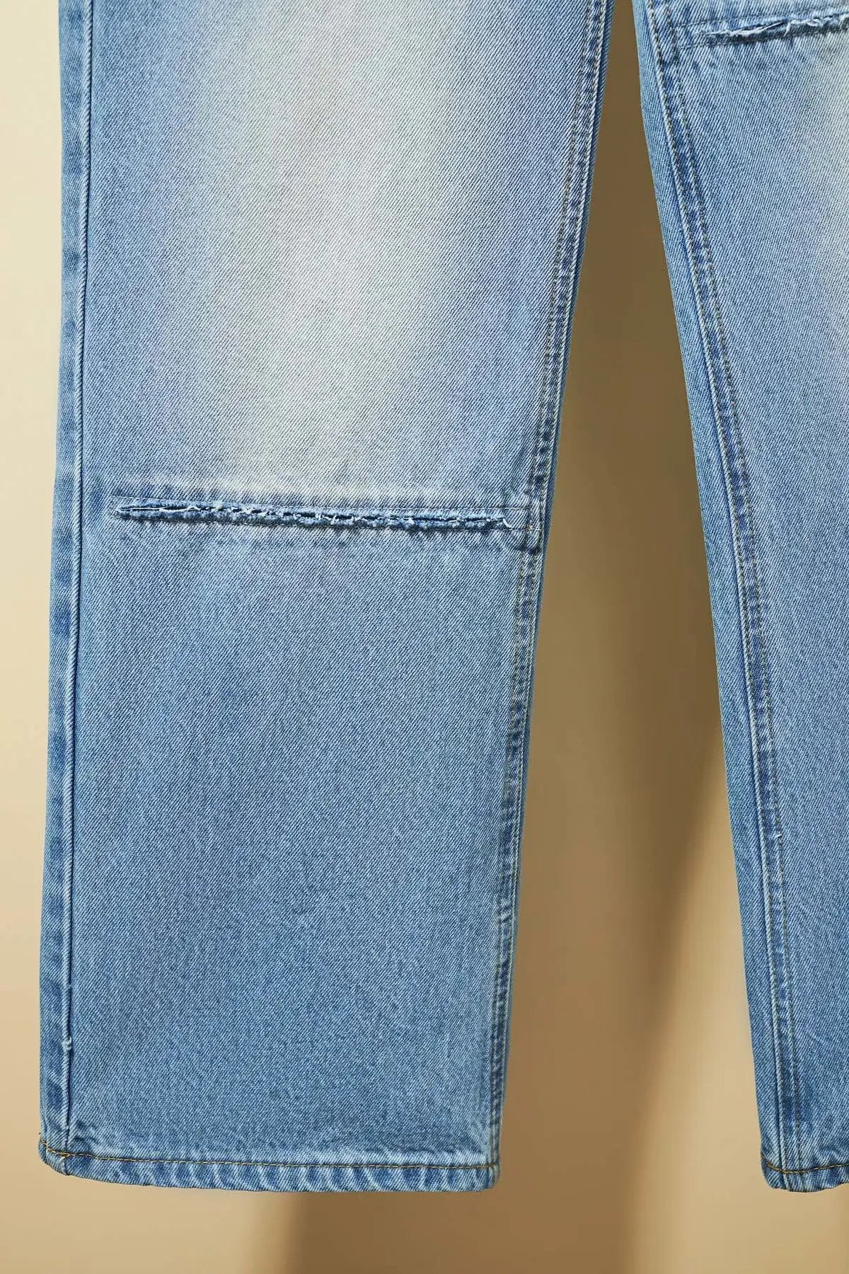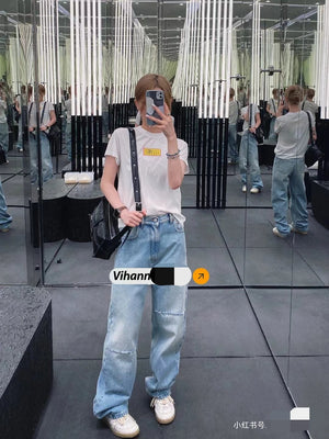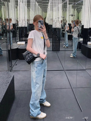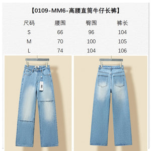 Super beautiful washed color matching, eco-friendly washing without pungent smell, fabric without impurities, super skin-friendly material with top-notch texture. Asymmetric front panel with a dividing line that elongates the legs proportionally. The straight-leg slim-fit design looks fashionable and sophisticated when worn. The loose fit often conceals extra body weight and cleverly hides excess hip fat, making you appear slimmer and with longer legs—a versatile essential. It suits everyone regardless of body shape. Size: S M L Pre-purchase Instructions