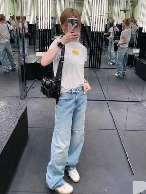 Maison Margiela Jeans Asymmetric Split Line Denim Long Pants Women Straight Leg Versatile Casual