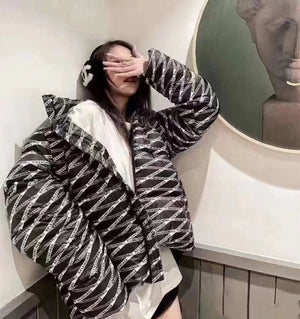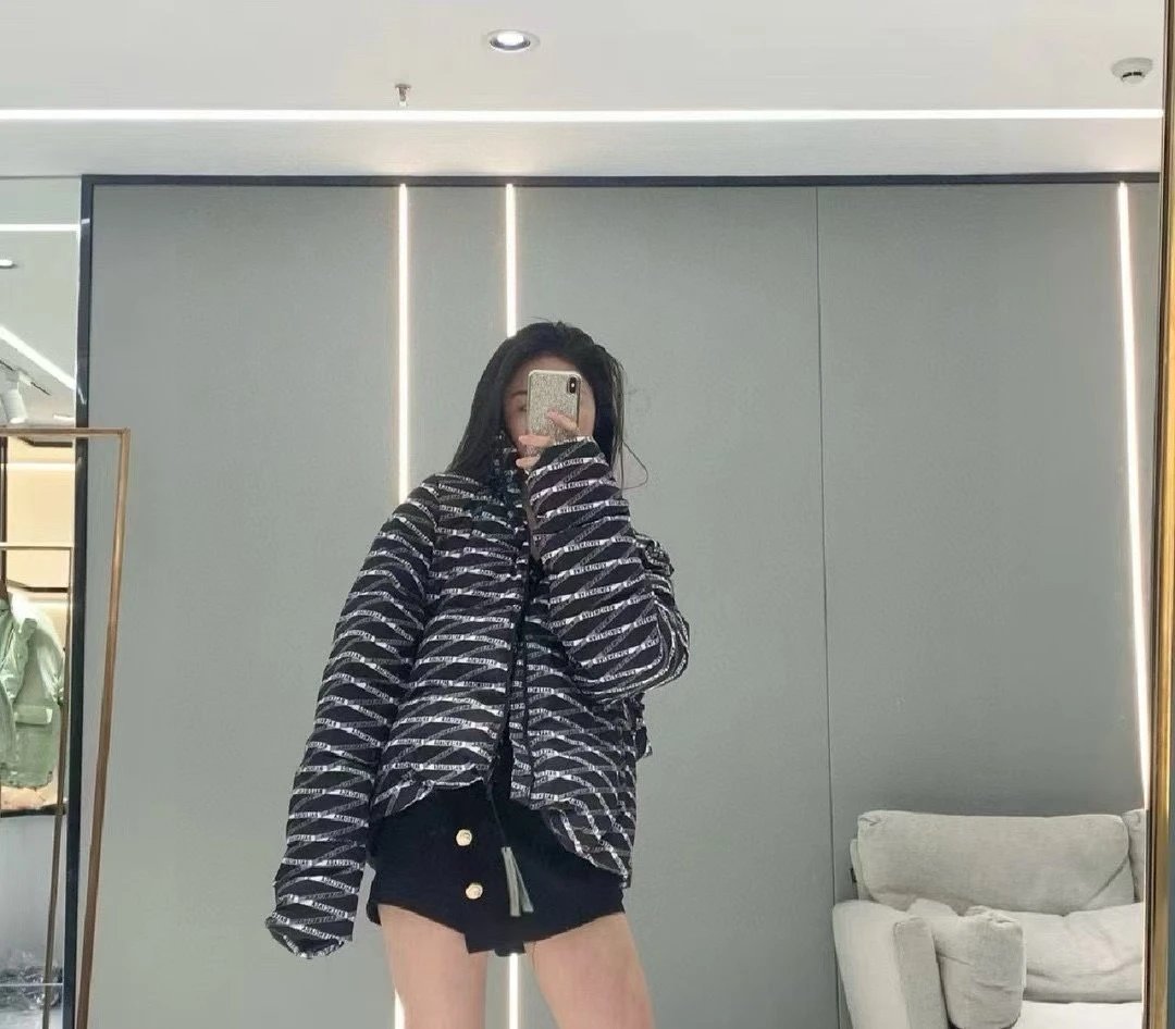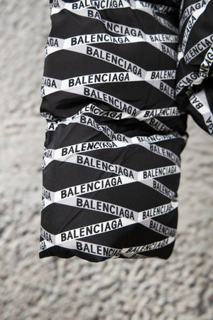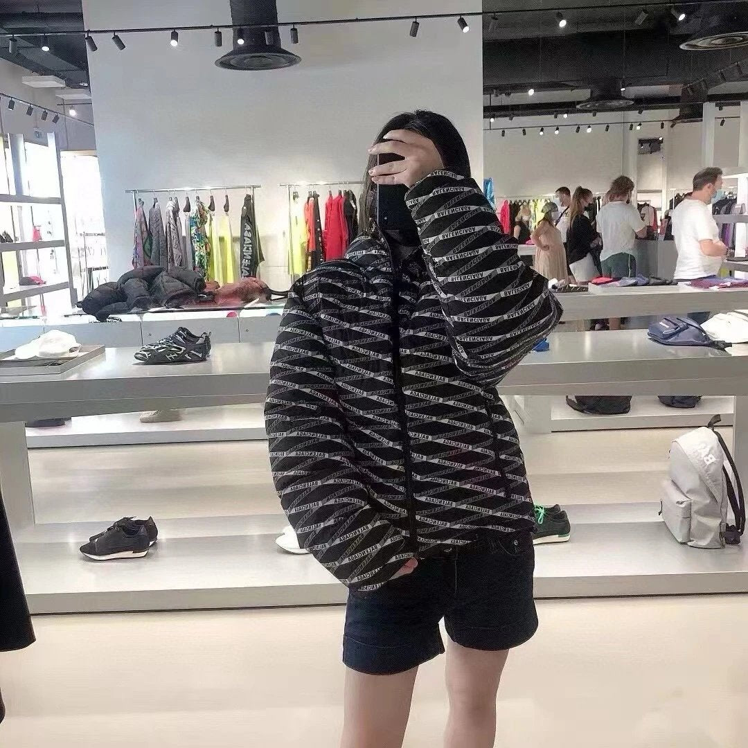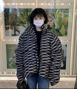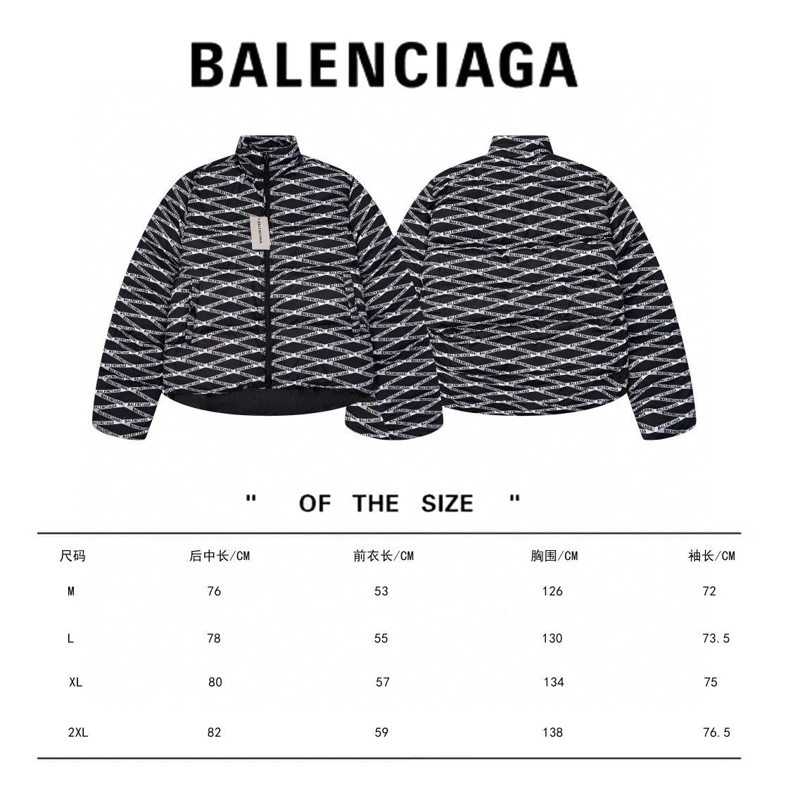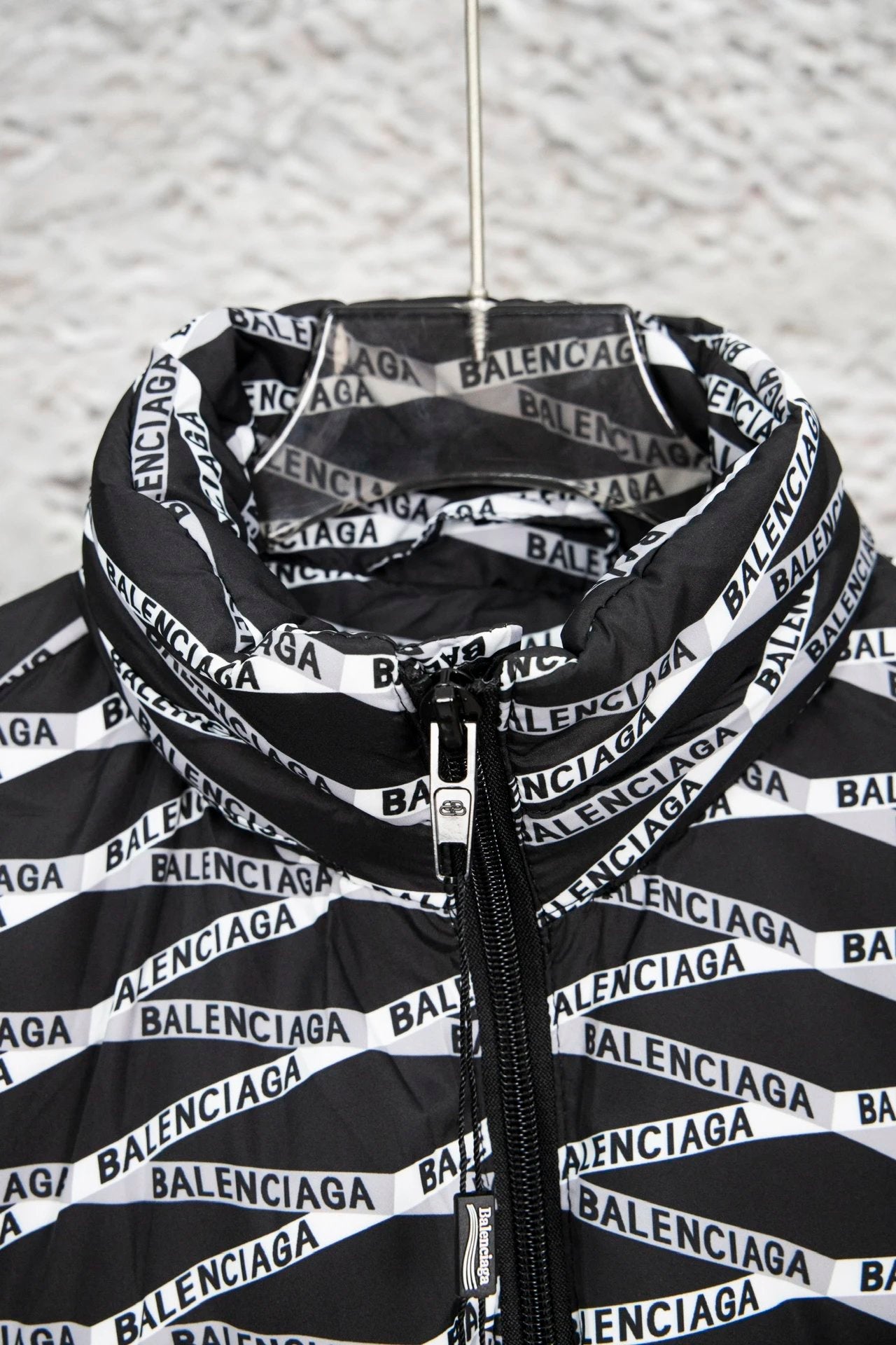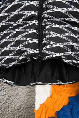 Balenciaga Down Jacket Asymmetrical Letter Full Print Bullet Screen Oversized Turtle Back Down Jacket Unisex Cotton Coat