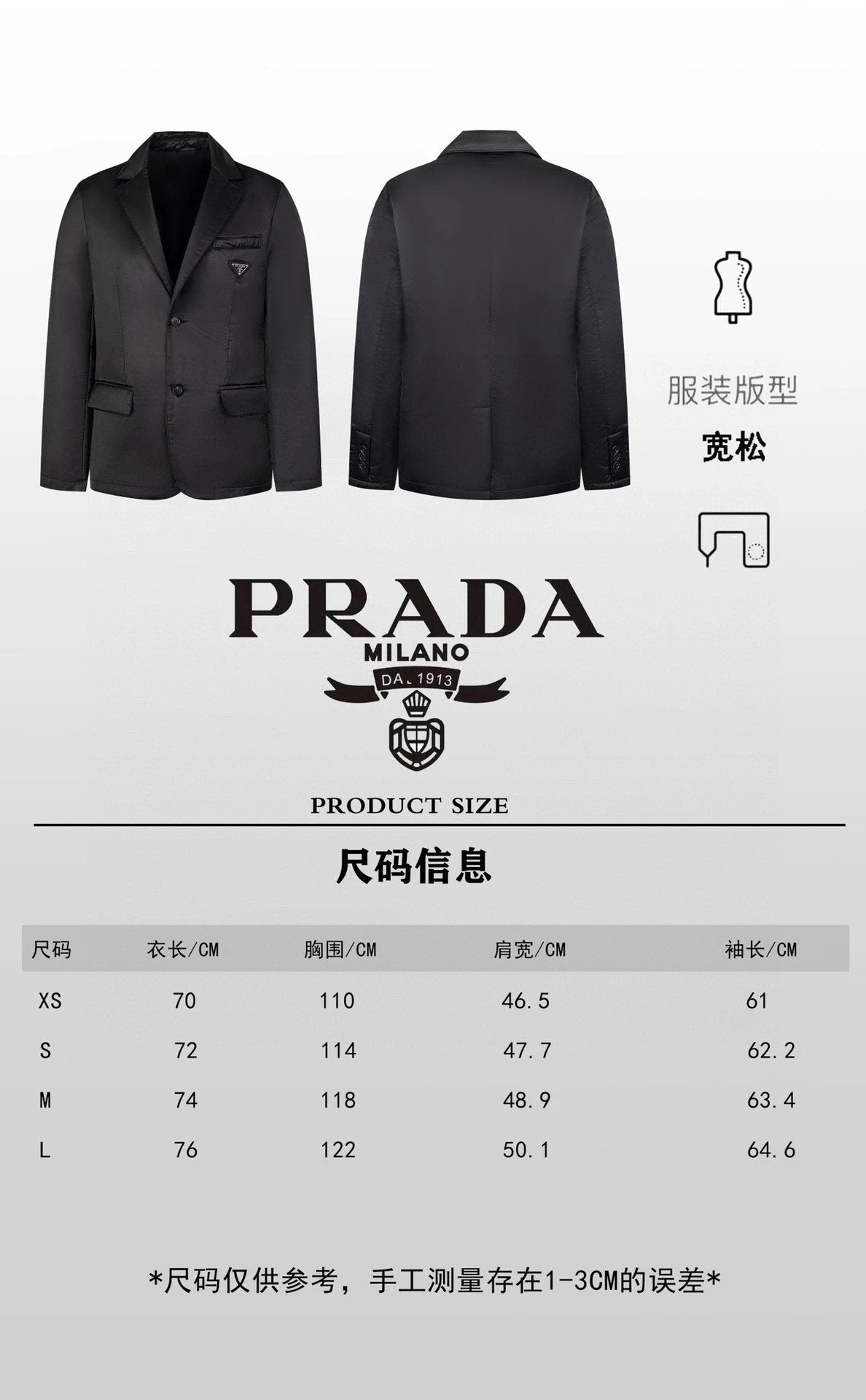 PRAD* Prada Autumn Winter Quilted Blazer Fabric Made of Recycled Nylon RE-Nylon Material Men's Business Casual Versatile P House Jacket