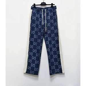 Gucci Sports suit Autumn New Double Letter Embossed logo Denim Straight Drawstring Pants Casual All-Match