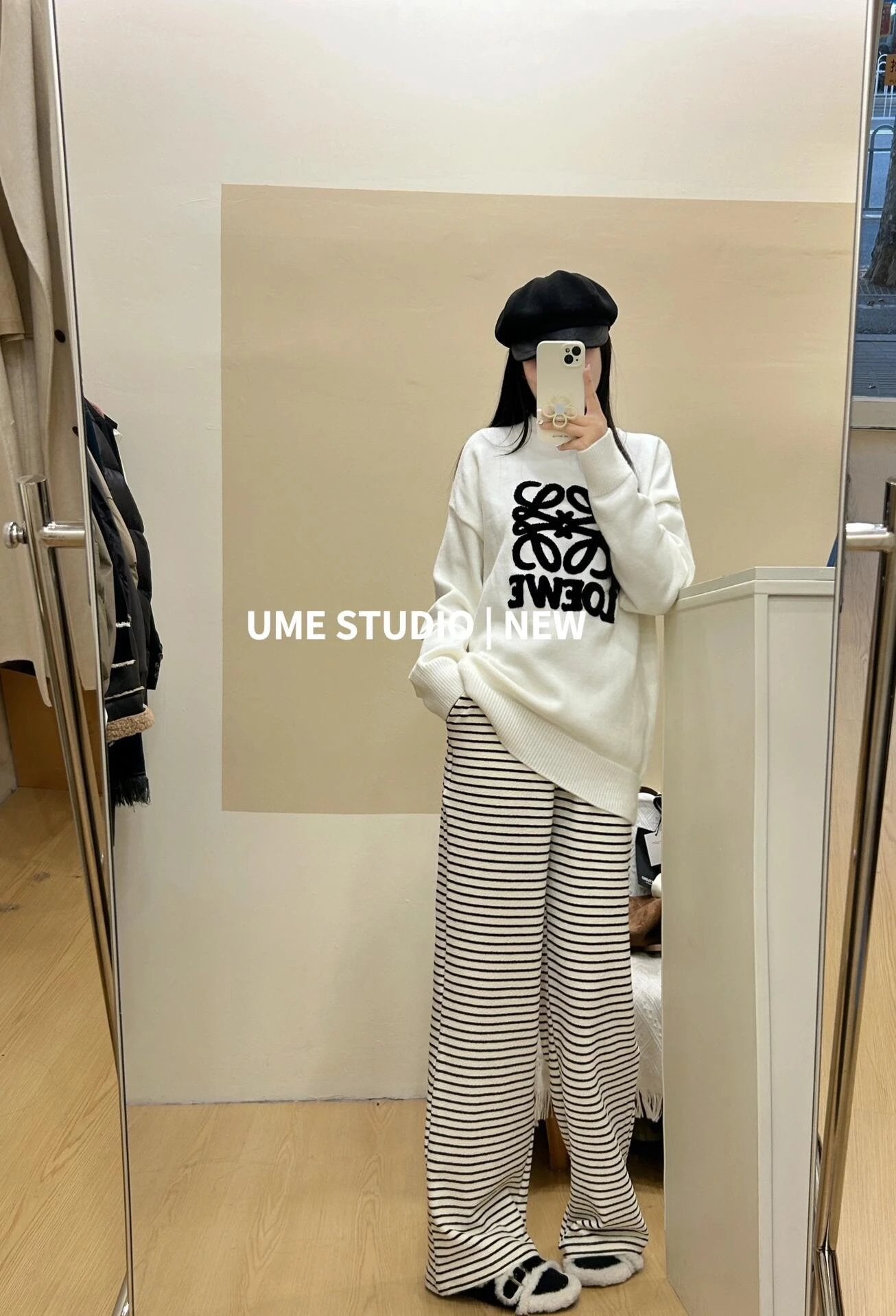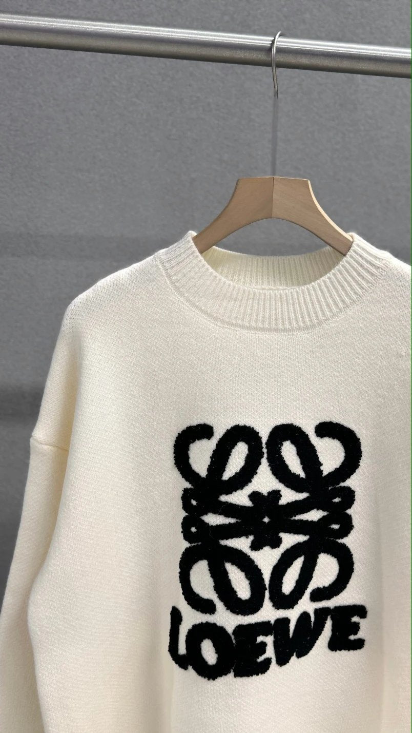 LOEWE Sweater Autumn Winter Limited Edition Knitted Embroidery logo Towel Embroidered Crew Neck Sweater Unisex os Loose Fit Sports Casual Loose Versatile