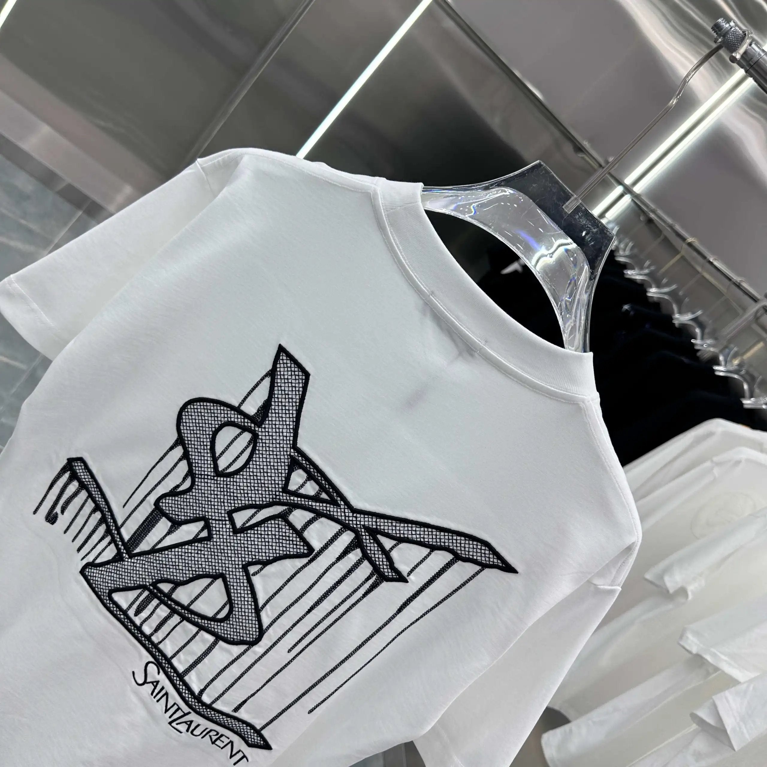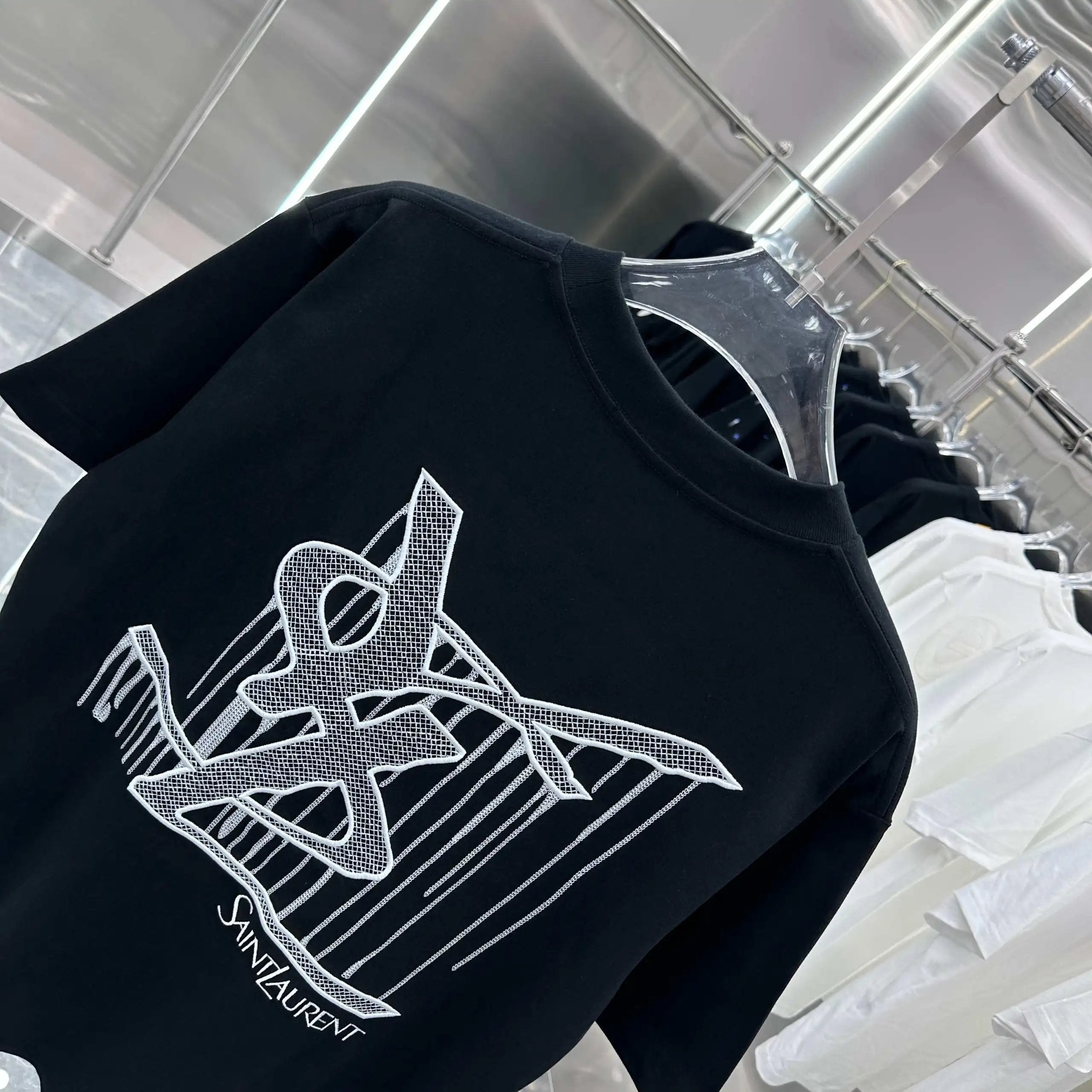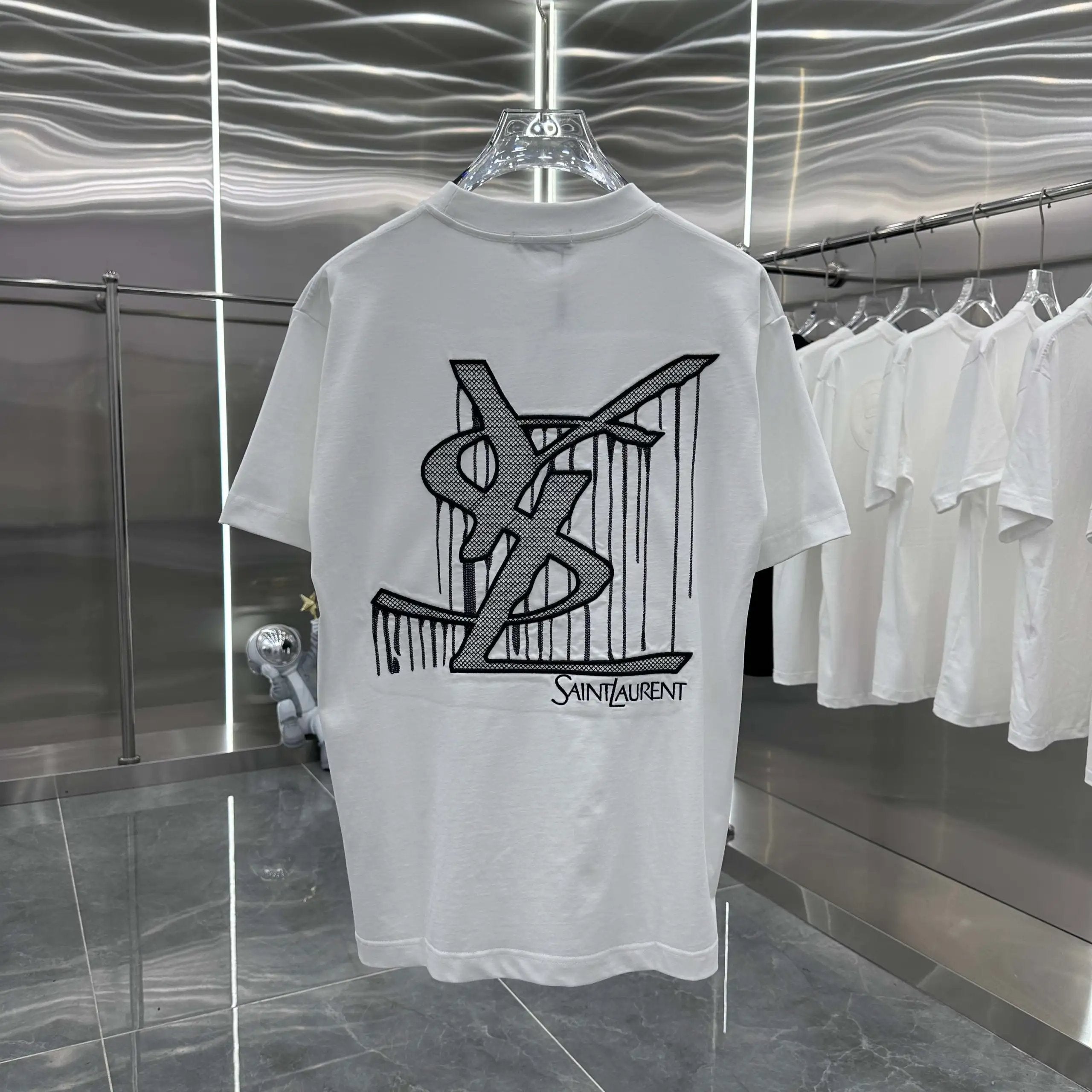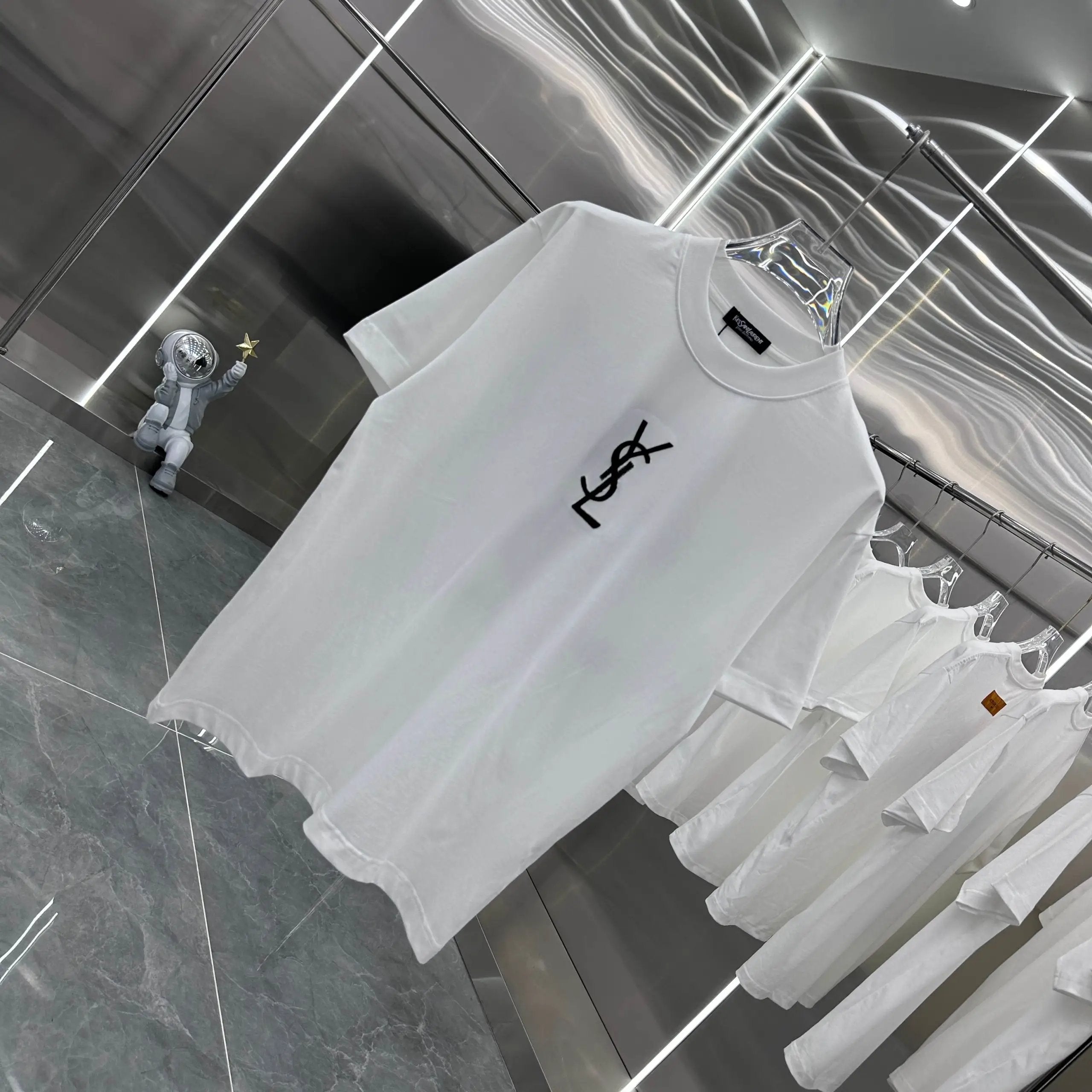 YSL T-shirt Back Brand Letter Embroidery logo round Neck Short Sleeve25ss New Pure Cotton Unisex Style T Casual T-Shirt Base Layer Shirt OS Loose Fit Half Sleeve Top Plus Size