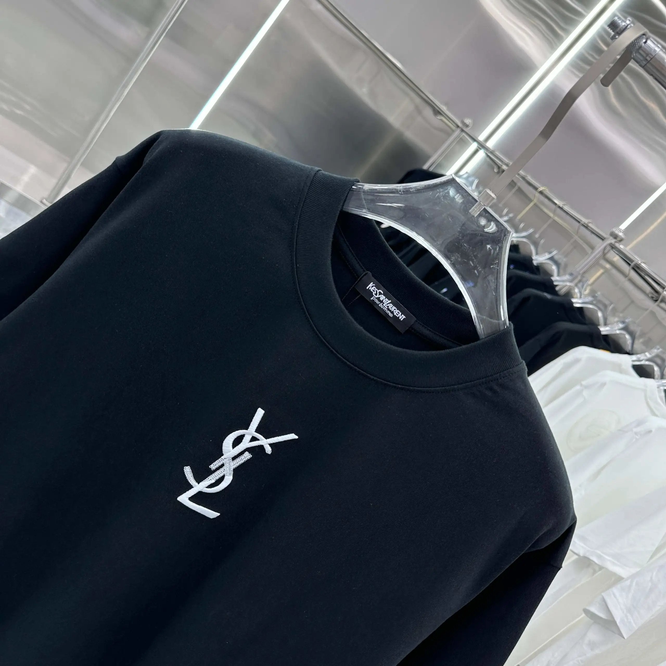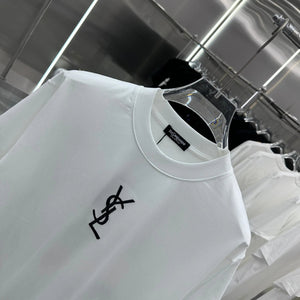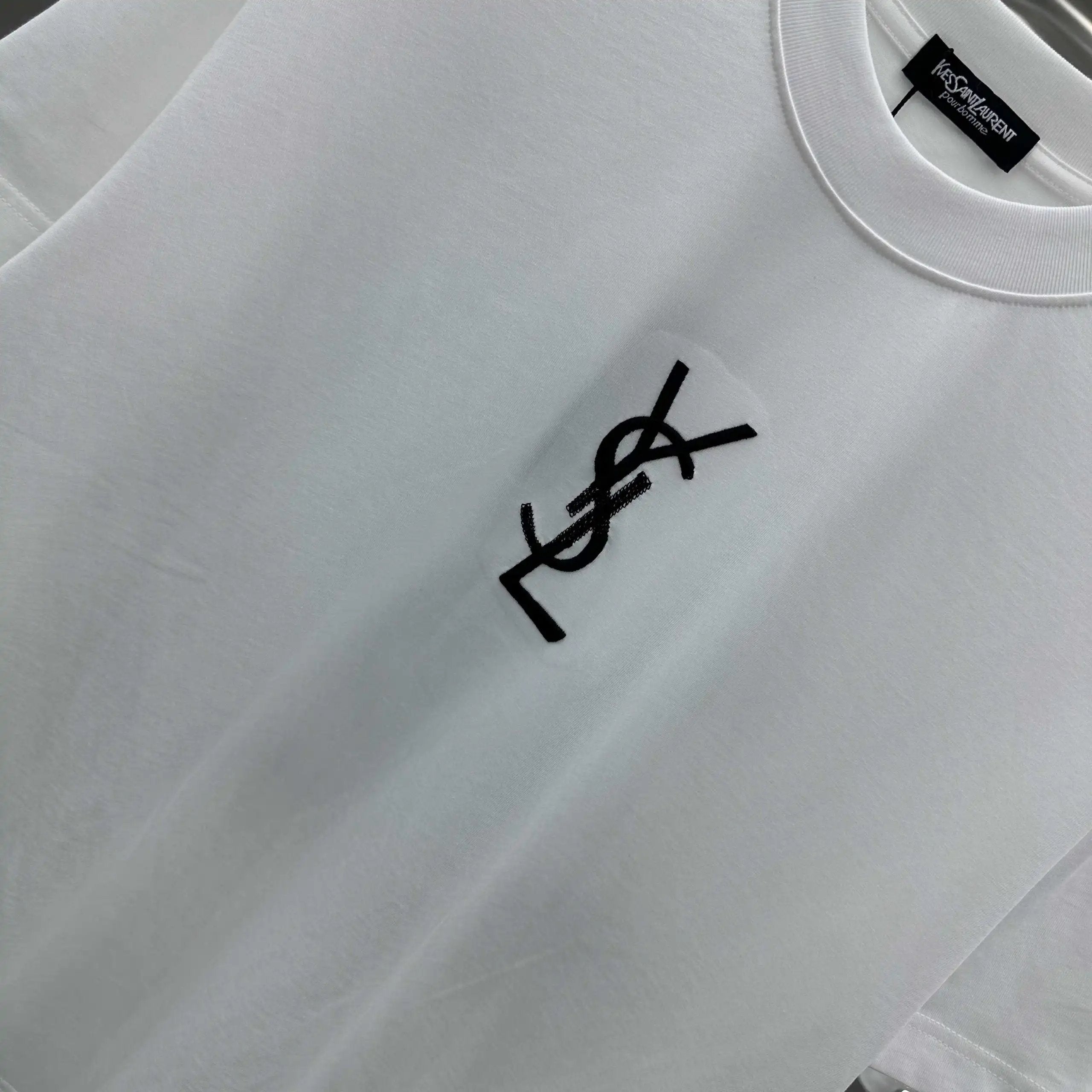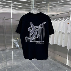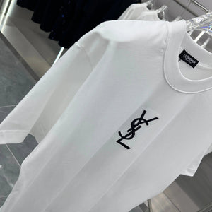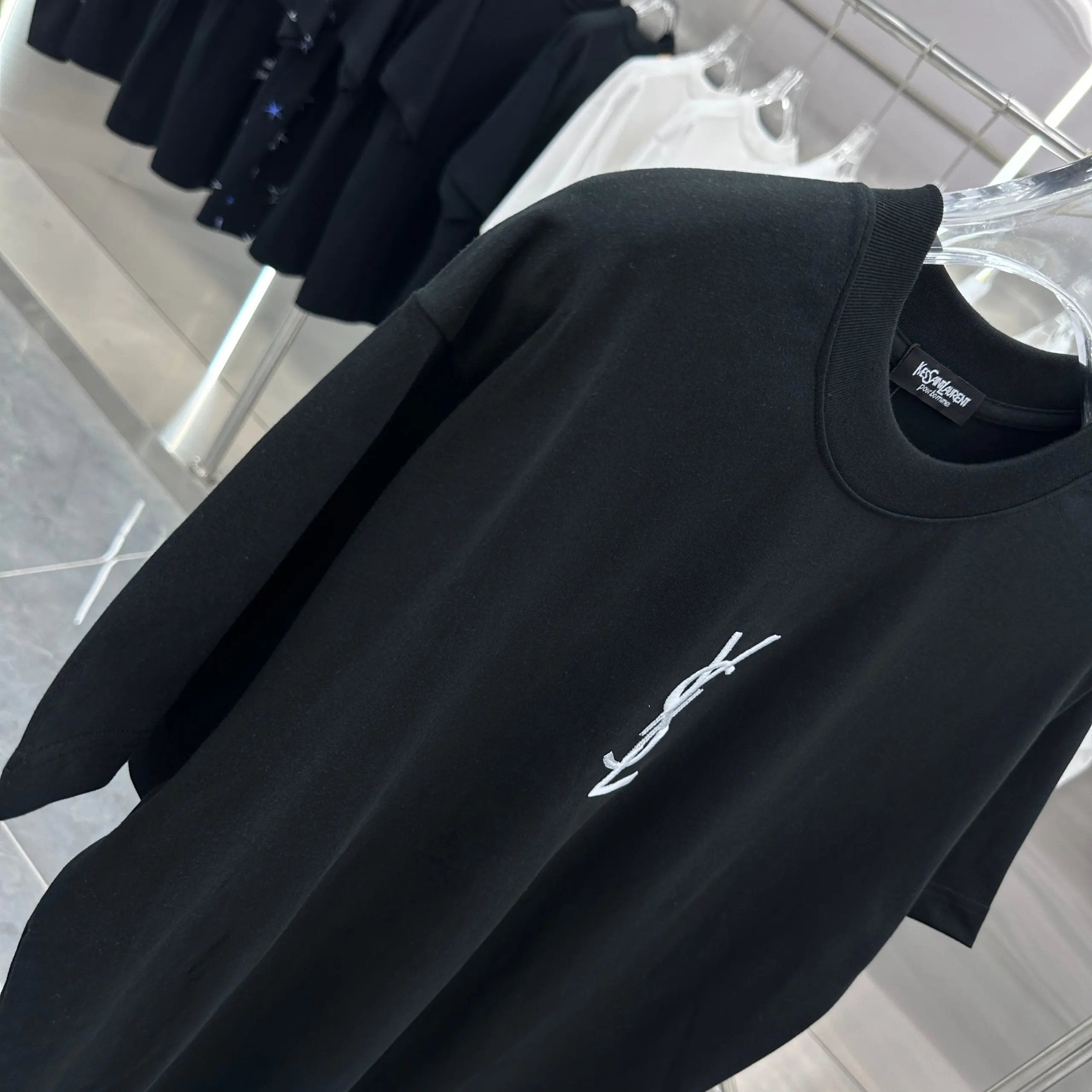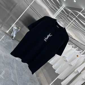 YSL T-shirt Back Brand Letter Embroidery logo round Neck Short Sleeve25ss New Pure Cotton Unisex Style T Casual T-Shirt Base Layer Shirt OS Loose Fit Half Sleeve Top Plus Size