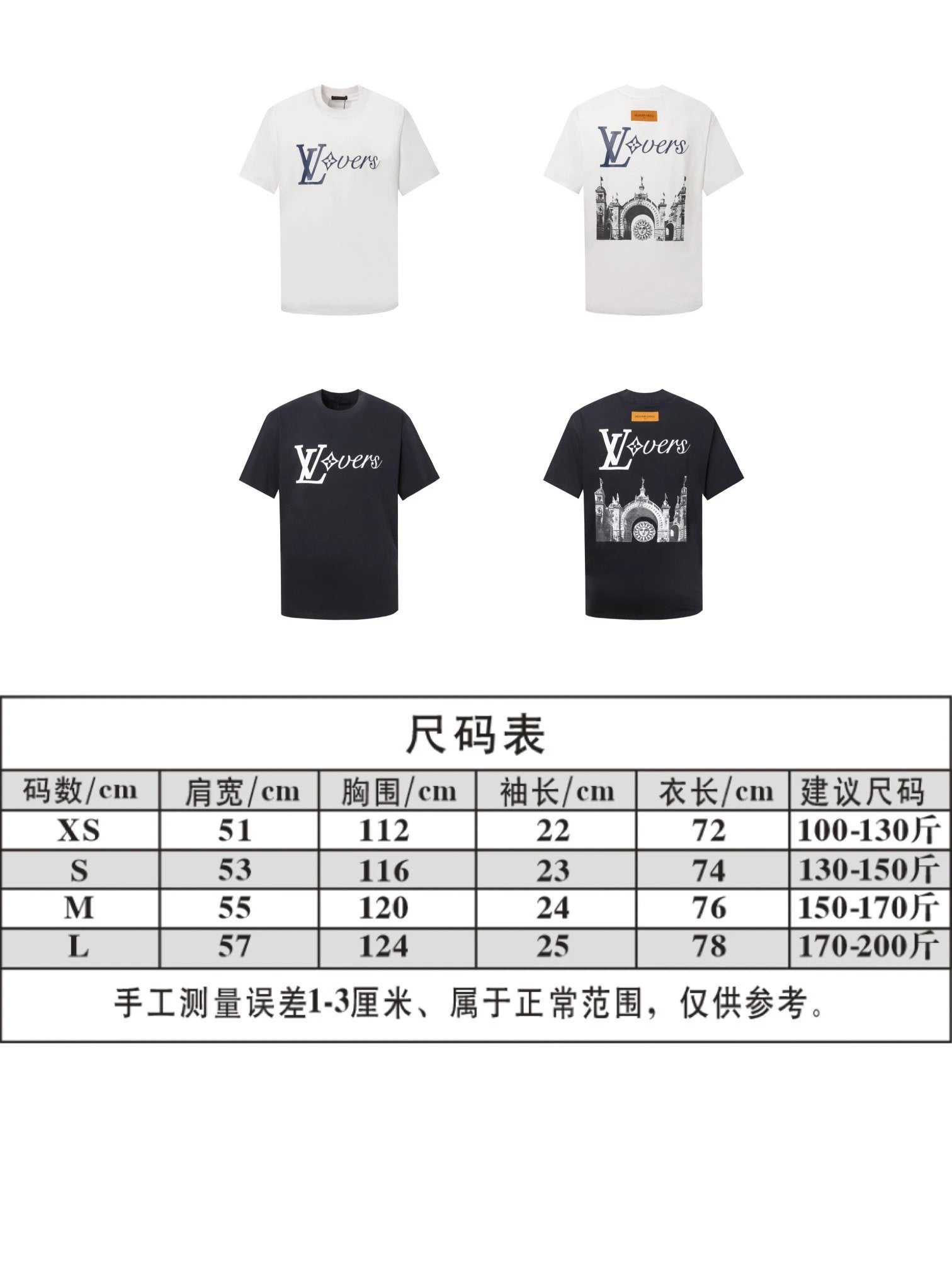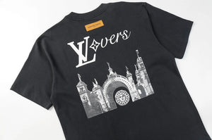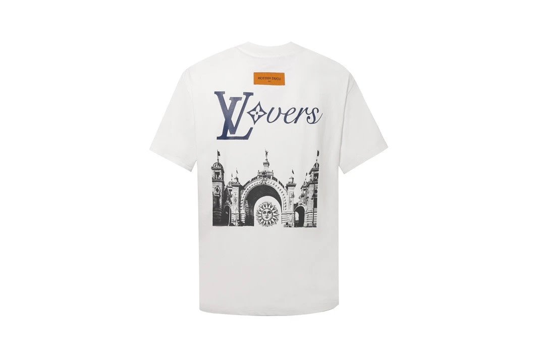 Louis Vuitton LV T-shirt Back Castle Letters logo Printed Crew Neck Short Sleeve Pure Cotton T Unisex T-Shirt OS Loose Fit Base Shirt Summer New Casual Simple B Home T-shirt