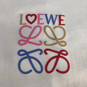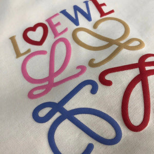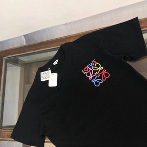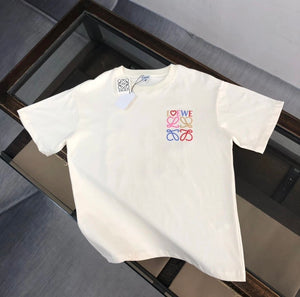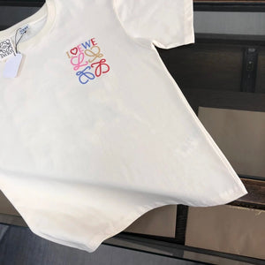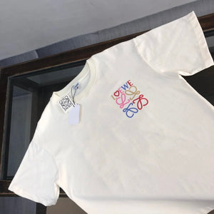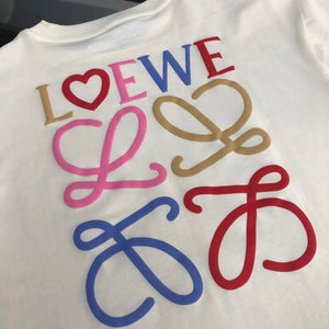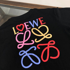 LOEWE T-shirt Back Colorful Letter Pattern Print logo round Neck Short Sleeve25ss New Pure Cotton Unisex Style T Casual T-Shirt Base Layer Shirt OS Loose Fit Half Sleeve Top Plus Size