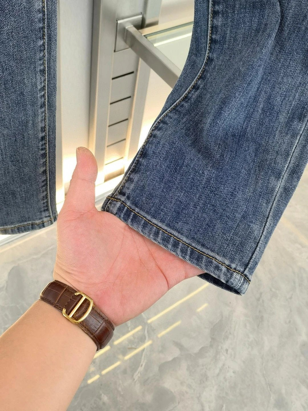 Cross Heart 2025ss Spring and Summer Fashion New Product?? High-End Luxury Custom Slim-Fitting Small Straight Jeans, Washed Elastic Fabric for Customers, Refined Imitation Cotton Blended Fabric, Comfortable and Soft Classic Hardware Accessories, Excellent Quality, Extremely Luxurious, Stylish Upper Body