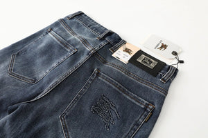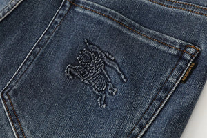 Burberry Logo Straight Leg Skinny Washed Blue Jeans Autumn Winter New Unisex Loose Casual Wide Leg High Waist