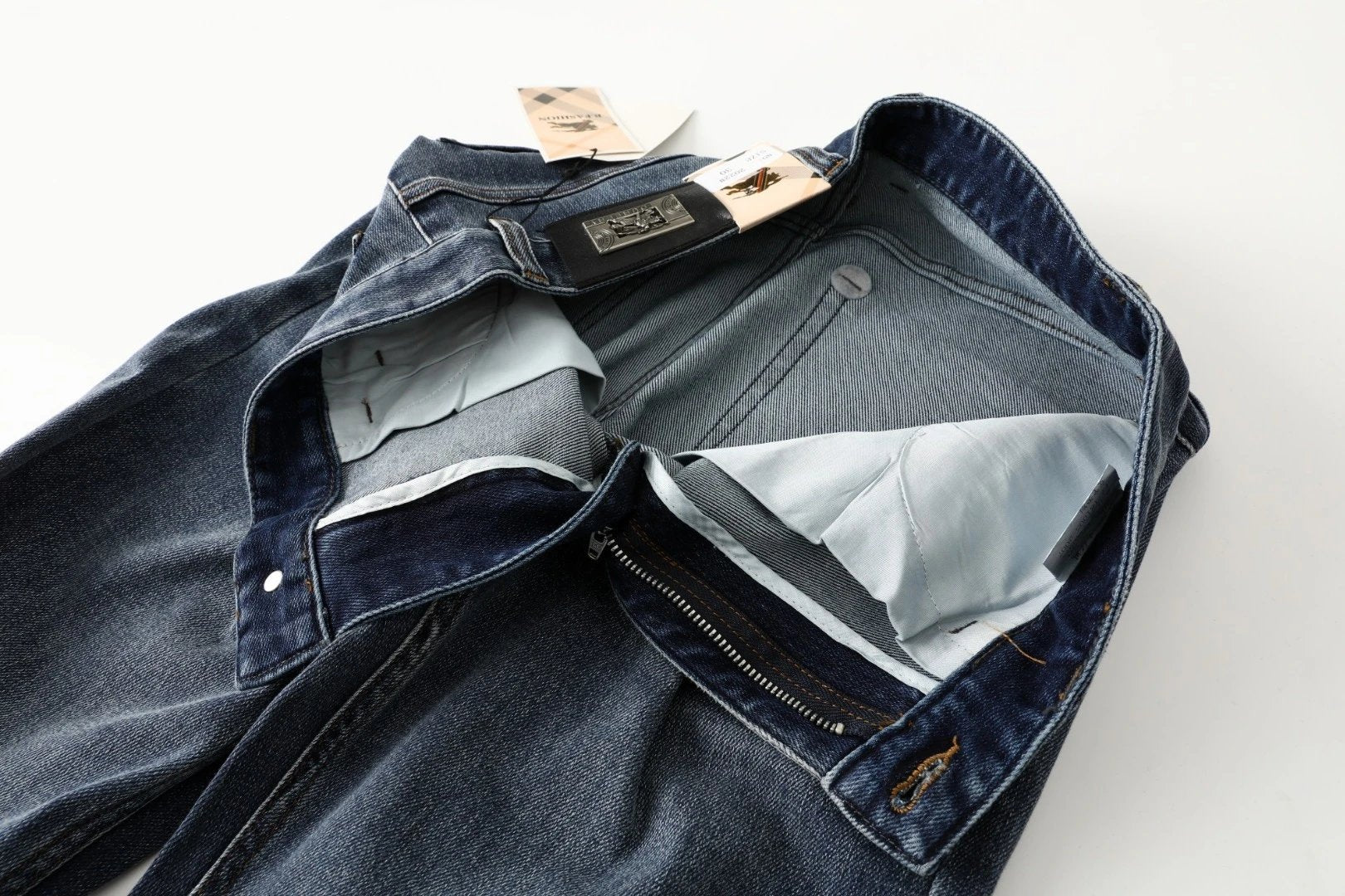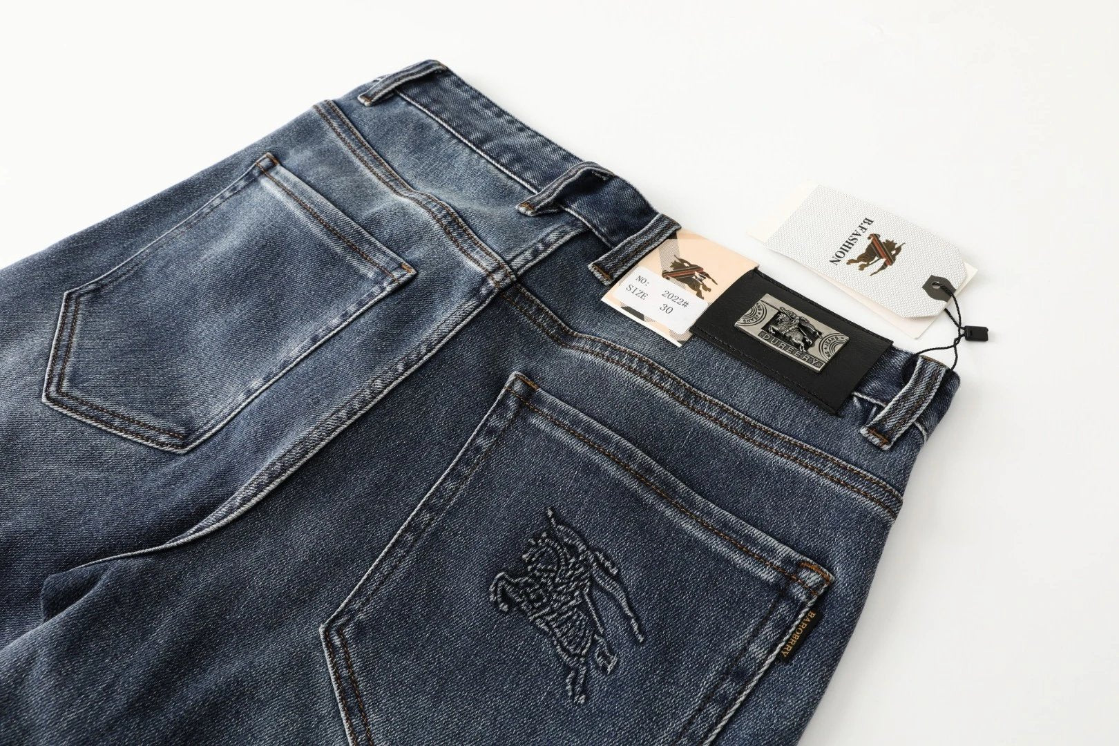 Burberry Jeans Back Label Hardware Logo Logo Straight Washed Blue Jeans Autumn Winter New Unisex Straight Long Pants Loose Casual Wide Leg High Waist