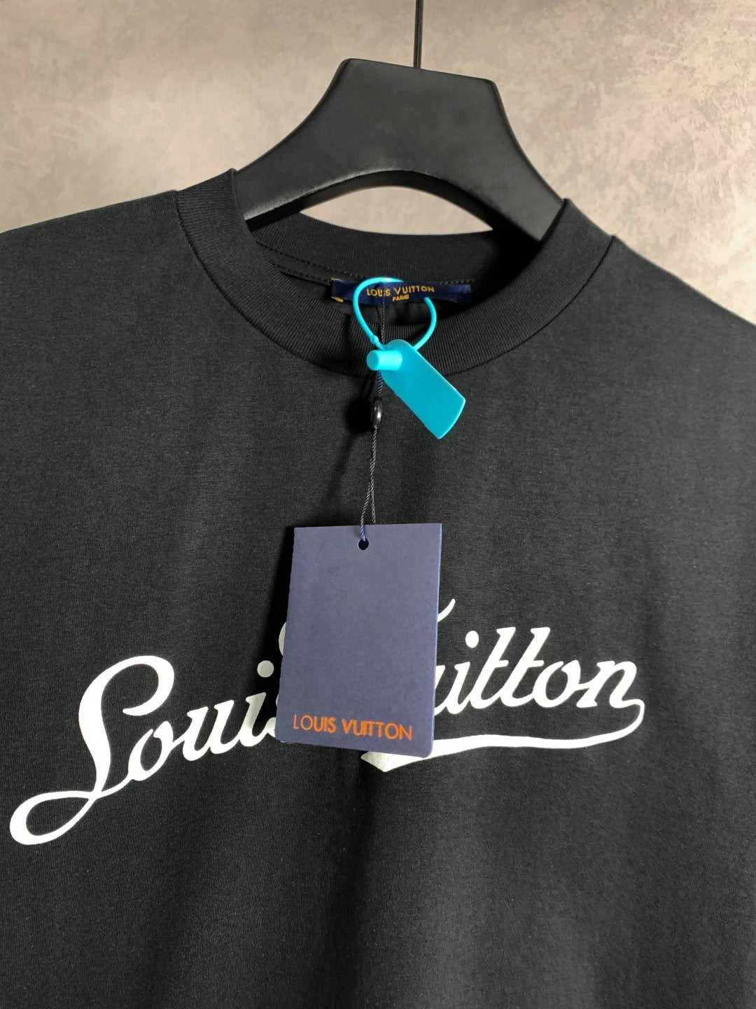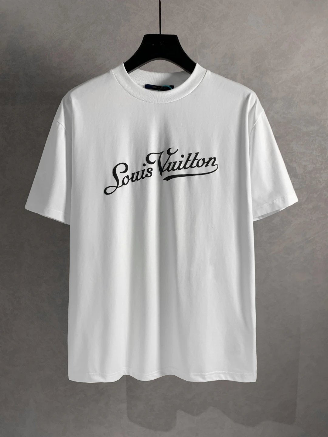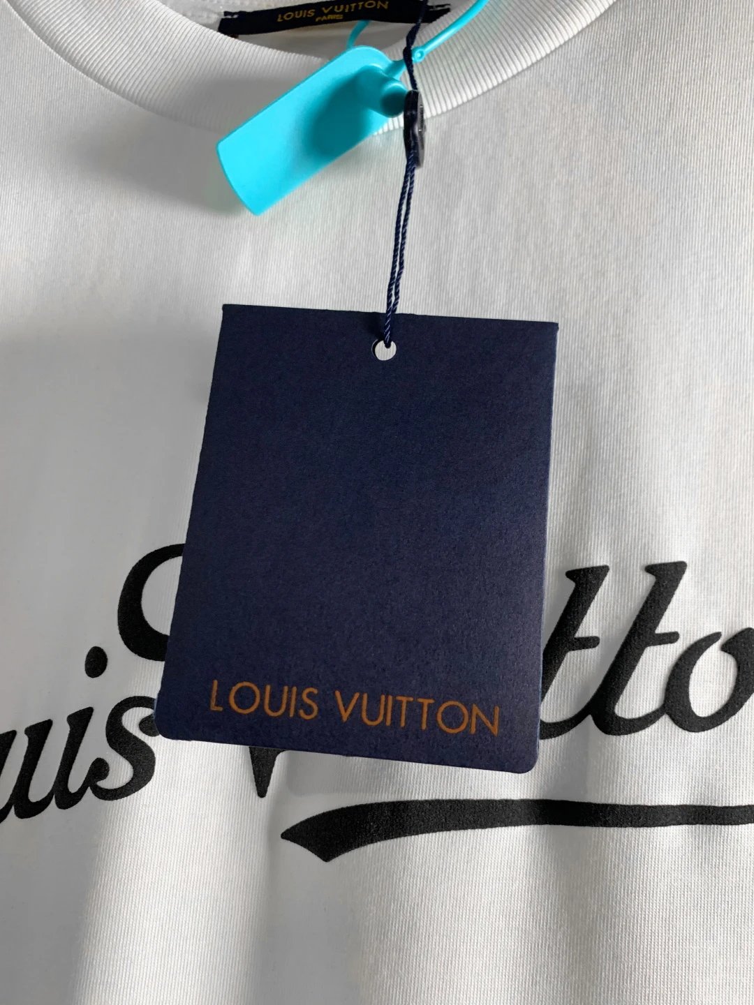 Louis Vuitton Icon English Letter Short Sleeve T-Shirt, Complete with Three Icons, Made of High-End Solona Fabric, Front and Back with Fleece Foam Technology, Very Comfortable Feel, OS Drop Shoulder Design, Fashionable and Unique, Super Versatile! Ribbed Collar Not Loose, High-Temperature Color Fixation, Full Shoulder Drawstring Craftsmanship. Unisex