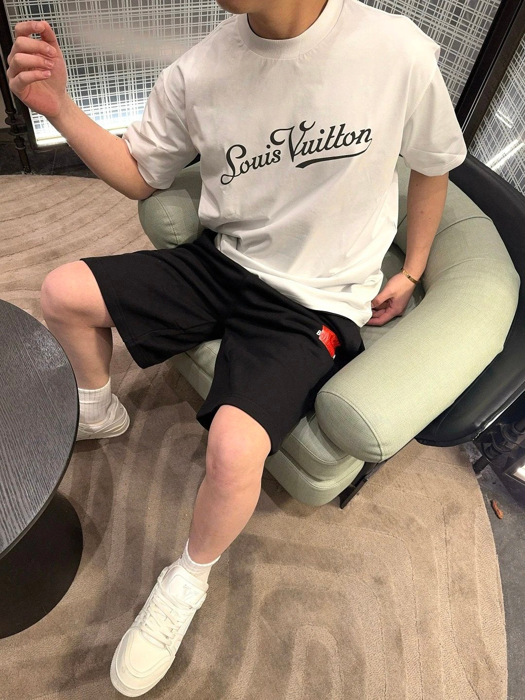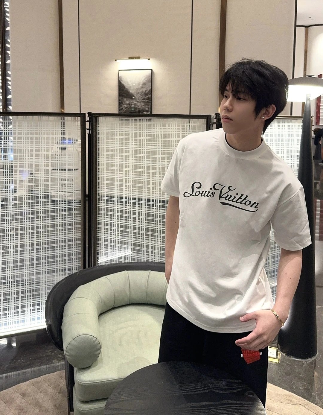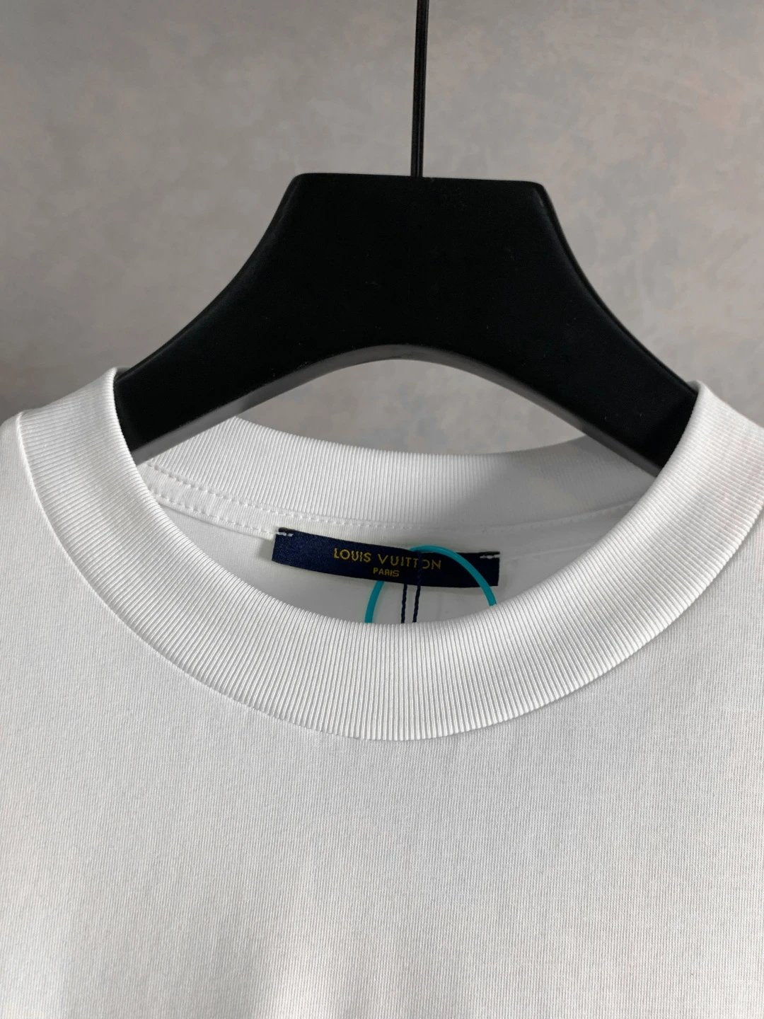 Louis Vuitton Icon English Letter Short Sleeve T-Shirt, Complete with Three Icons, Made of High-End Solona Fabric, Front and Back with Fleece Foam Technology, Very Comfortable Feel, OS Drop Shoulder Design, Fashionable and Unique, Super Versatile! Ribbed Collar Not Loose, High-Temperature Color Fixation, Full Shoulder Drawstring Craftsmanship. Unisex