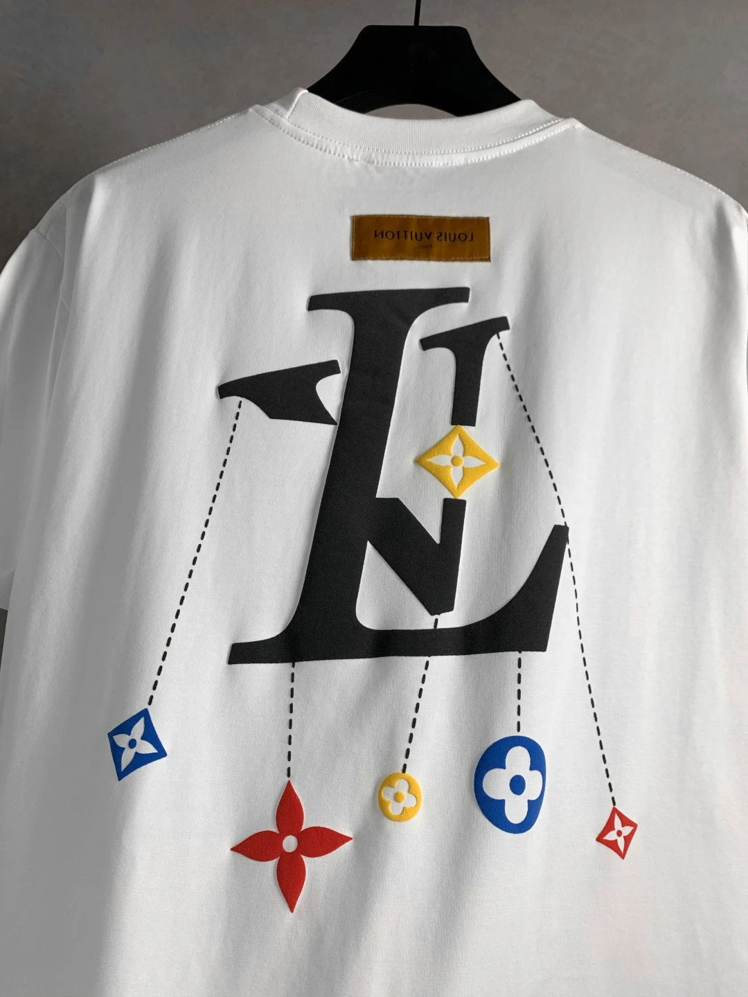 Louis Vuitton LV T-shirt Back Letter Four-Leaf Flower Pattern Print logo round Neck Short Sleeve25ss New Pure Cotton Unisex Style T T-shirt OS Loose Fit Base Shirt Top Half Sleeve T-Shirt