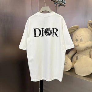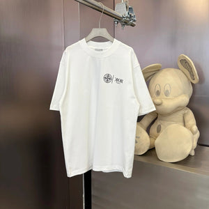 Dior T-shirt Back Letter Pointer Pattern Print logo round Neck Short Sleeve25ss New Pure Cotton Unisex Style T T-shirt OS Loose Fit Base Shirt Half Sleeve T-Shirt Top Half Sleeve