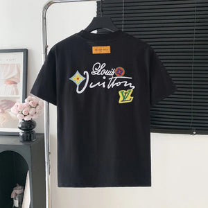 Louis Vuitton LV T-shirt Back logo Embroidered Letter Crew Neck Short Sleeve25ss New Pure Cotton Unisex Style T T-shirt OS Loose Fit Base Shirt G Home Top Half Sleeve T-Shirt