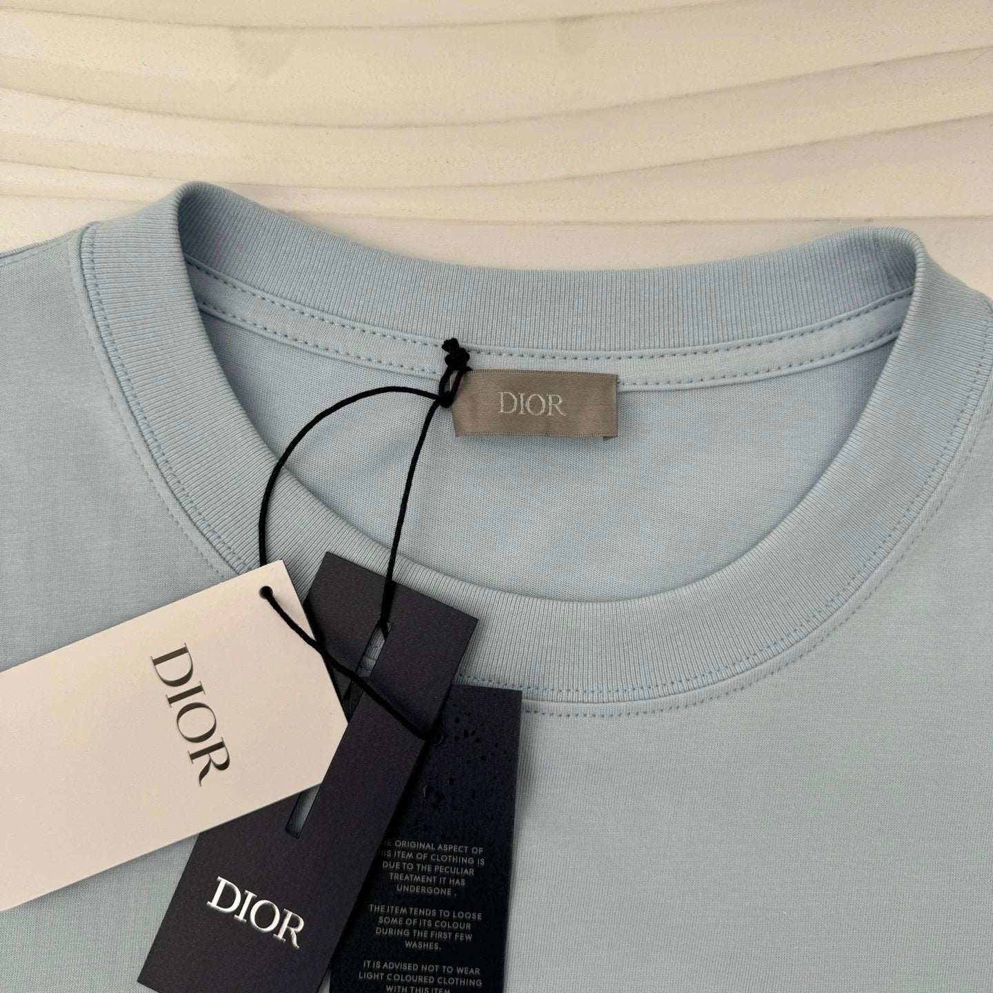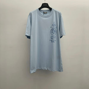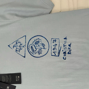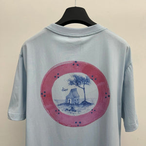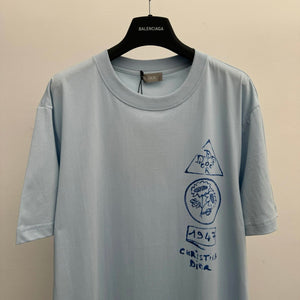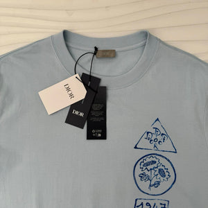 This T-shirt showcases the logo from this season's DIOR AND HYLTON NEL collaboration series. Crafted from blue cotton plain knit fabric, it features a classic silhouette with a ribbed round neck and contrasting prints on the front and back to enhance its style. Casual cut, can be paired with sports pants or jeans. Pre-purchase Instructions