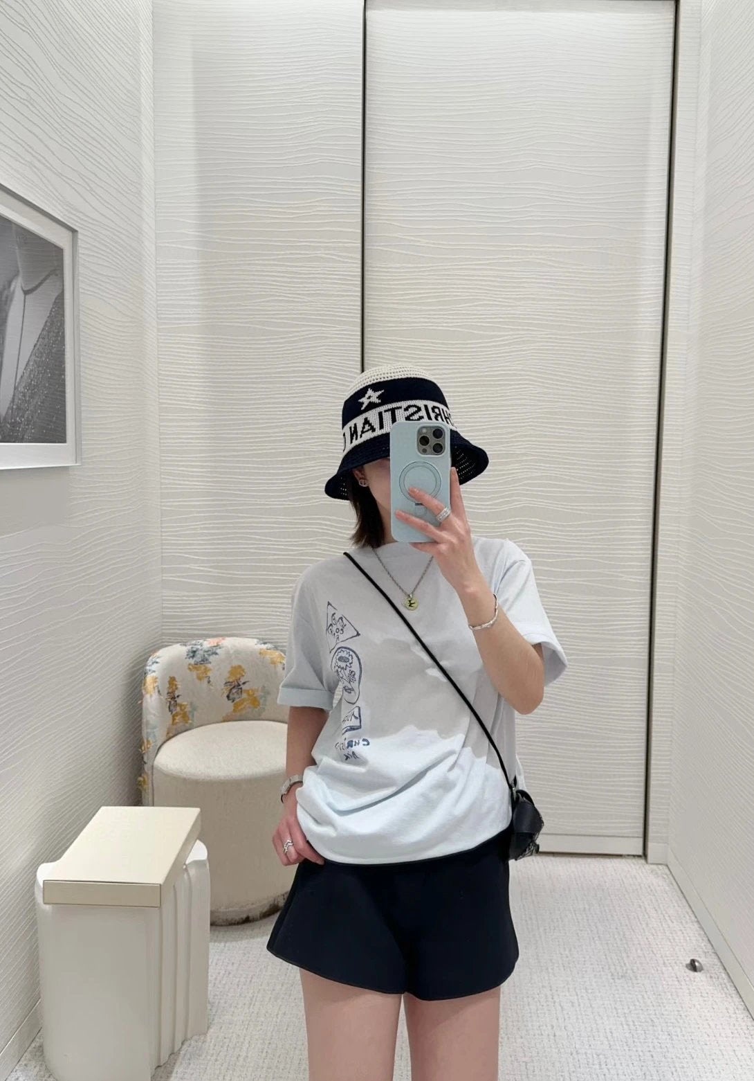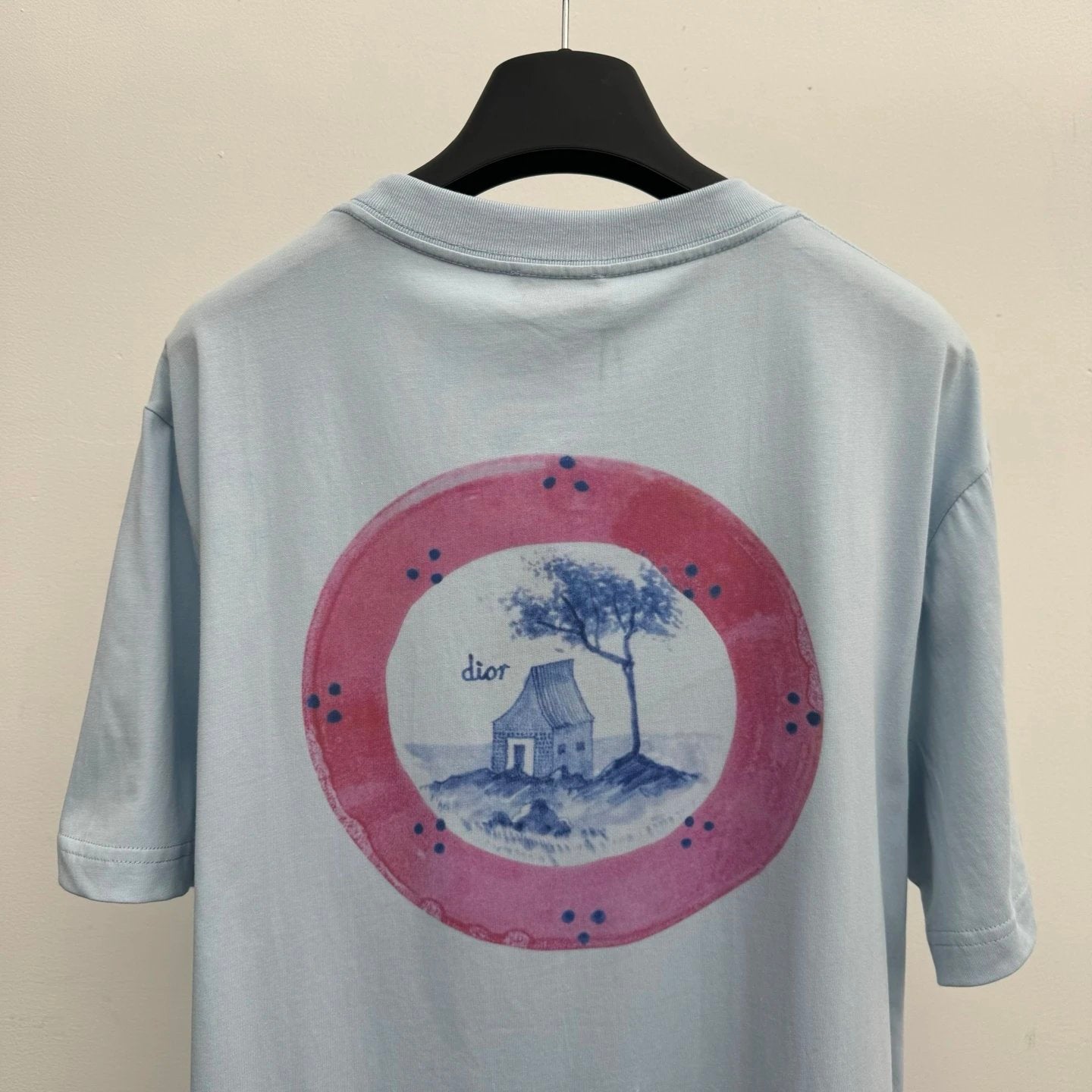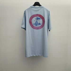 Dior T-shirt Back Pink Circle Print logo round Neck Short Sleeve25ss New Pure Cotton Unisex Style T T-shirt OS Loose Fit Base Shirt Top Half Sleeve T-Shirt