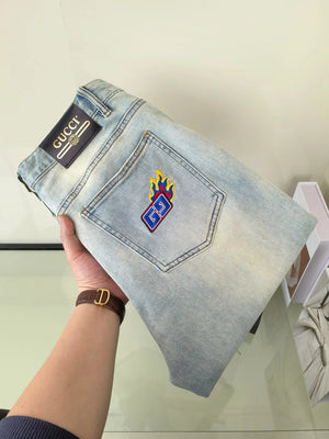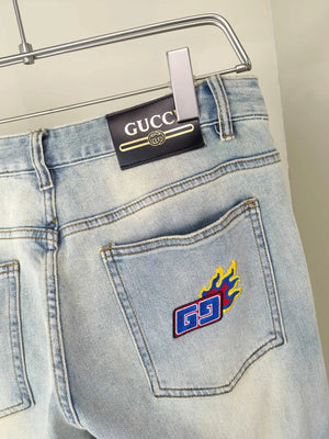 Gucci Jeans Back Pocket Letter Flame Embroidery logo25ss Spring Summer New Straight Slim Fit Jeans Unisex Loose Fit Long Pants