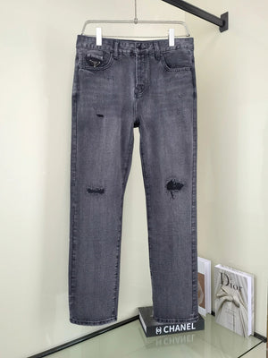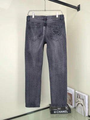 PRADA Jeans Back Pocket Letter Pattern Embroidery logo25ss Spring Summer New Straight Slim Fit Jeans Unisex Loose Fit Long Pants