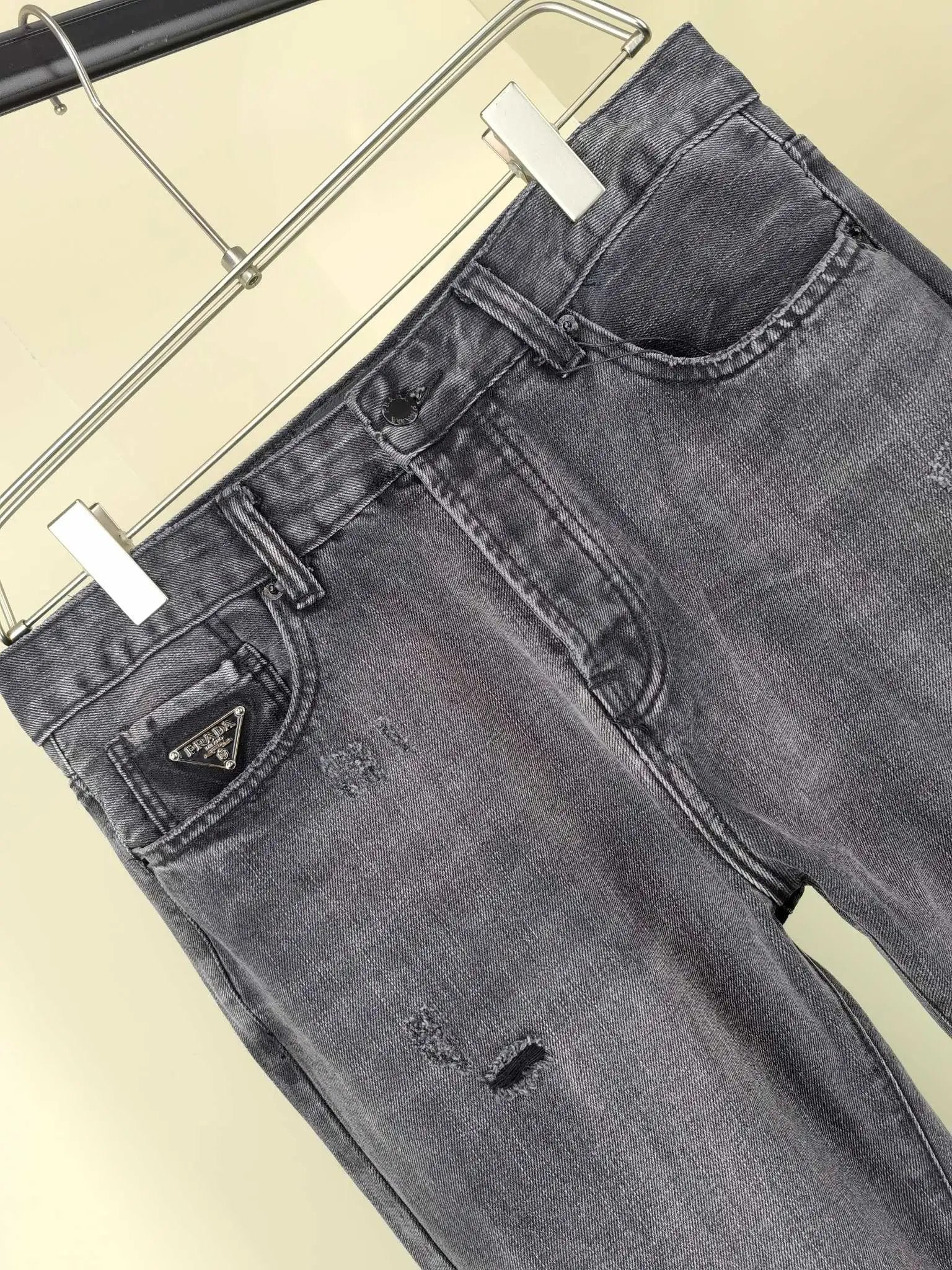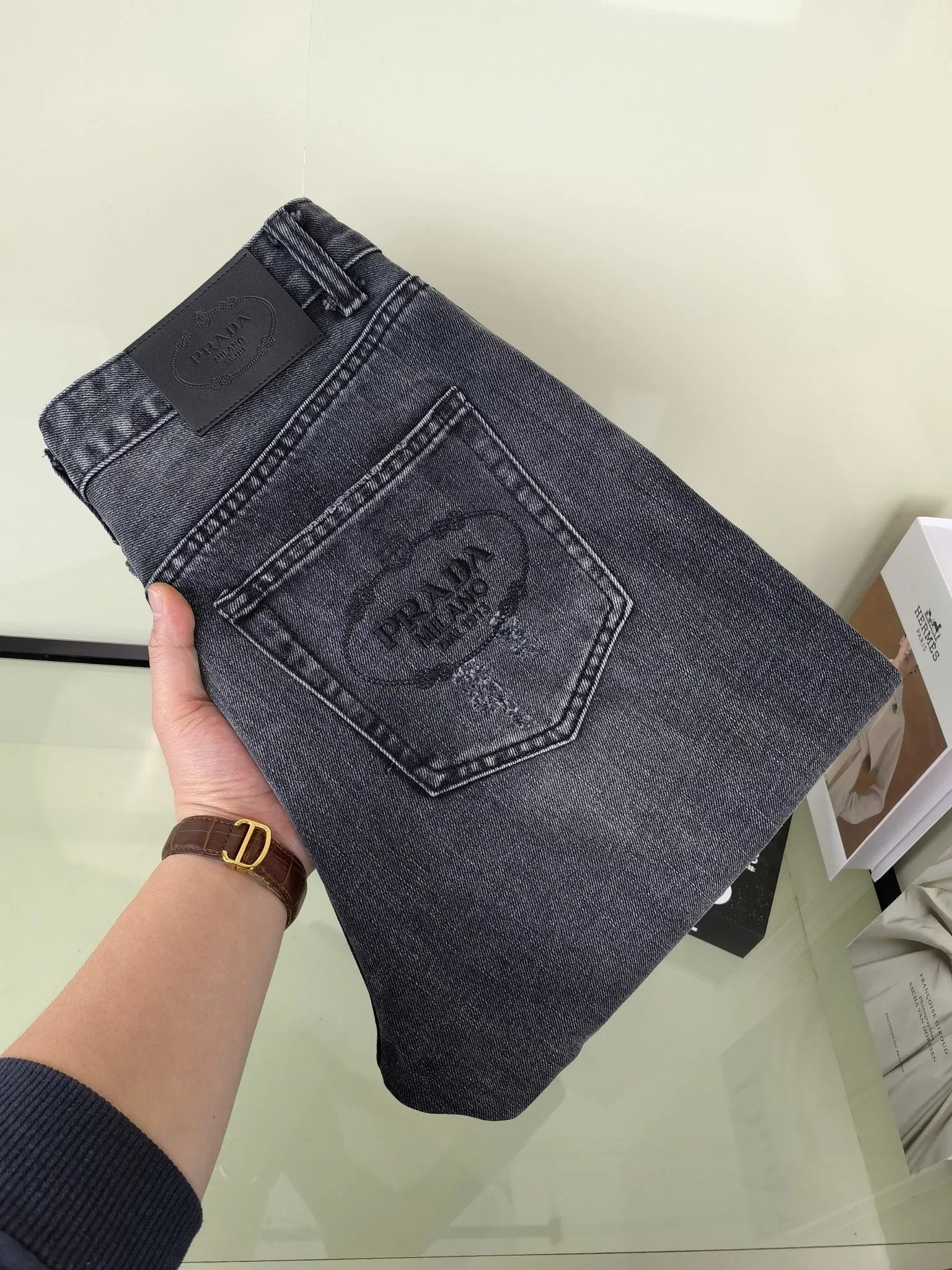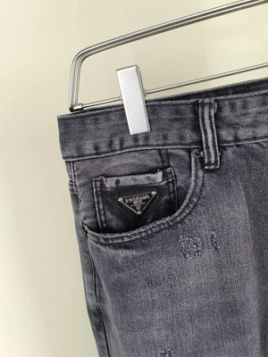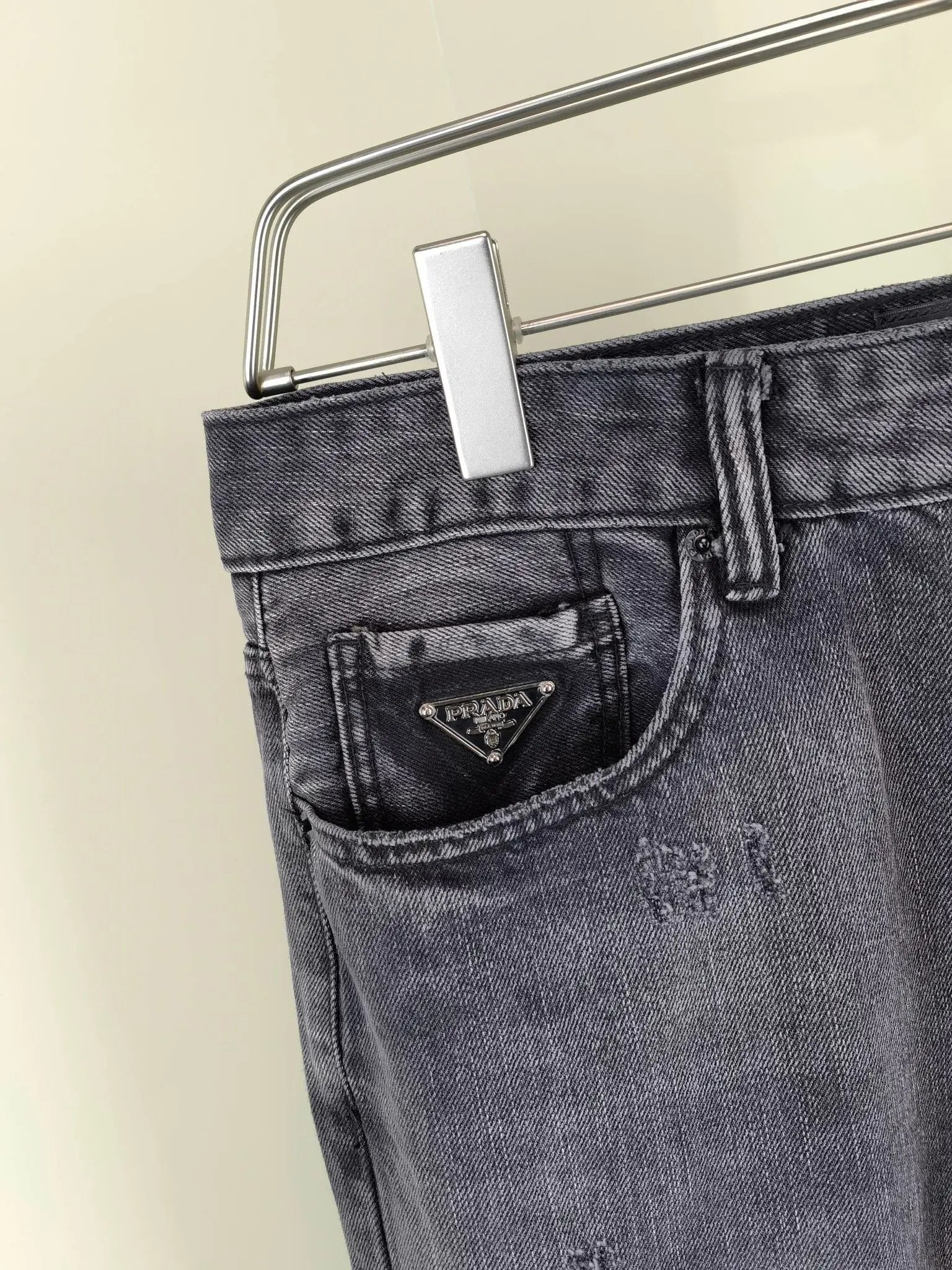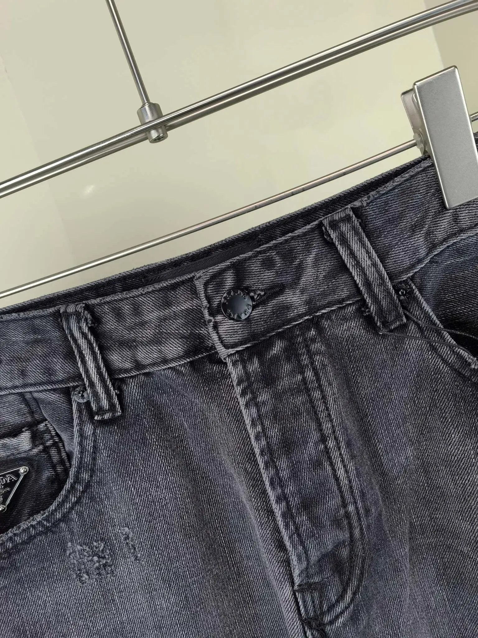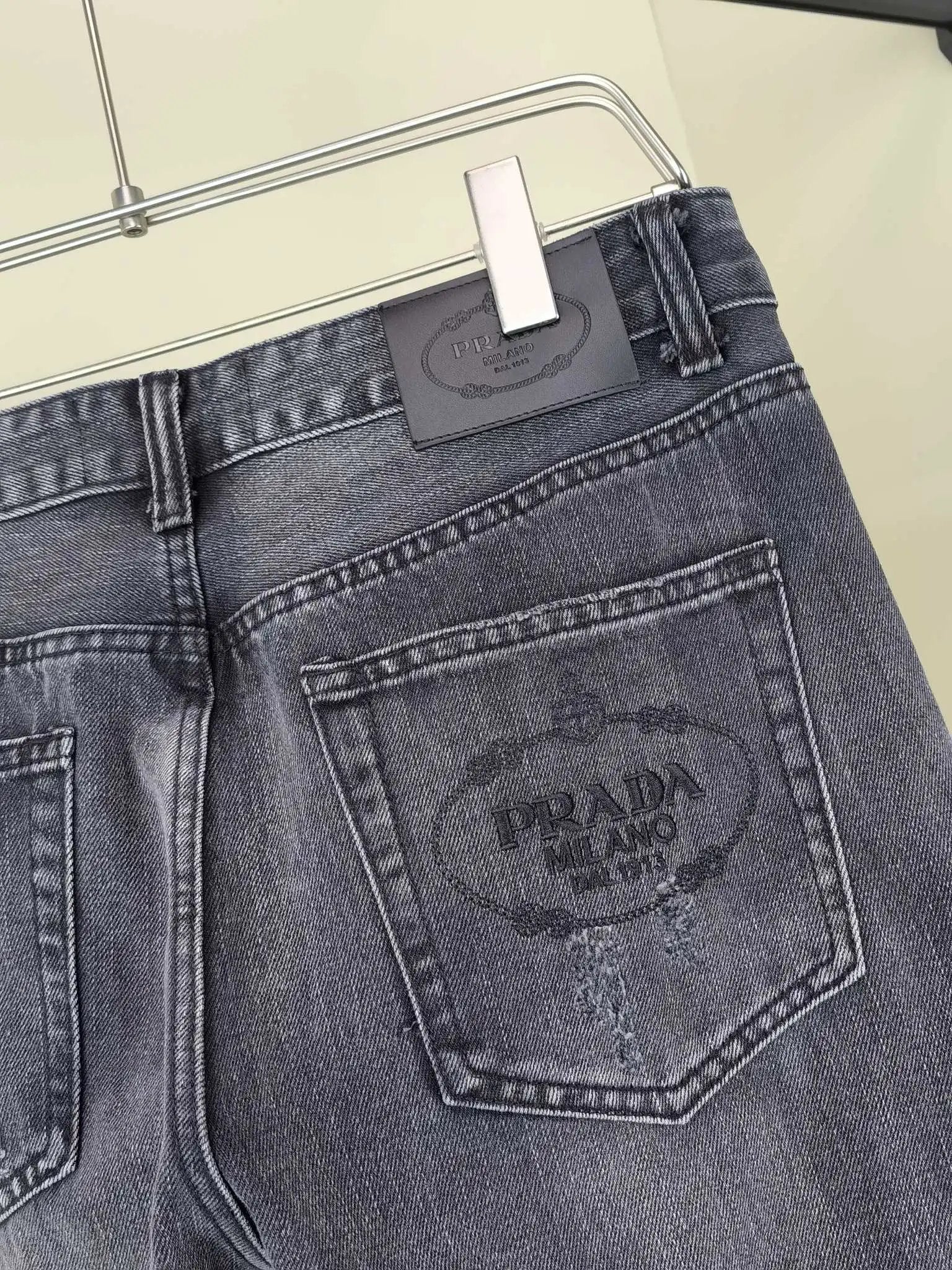 Prada 2025? New Original Washed Jeans High Version Original Development High-end Quality Feel Free to Compare Original Custom Hardware Logo Heavy Craft Embroidery Soft and Durable Denim Fabric Fits Leg Lines Comfortable Fashionable (Three Labels Complete)