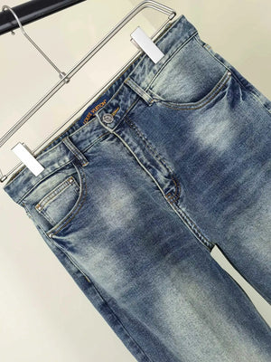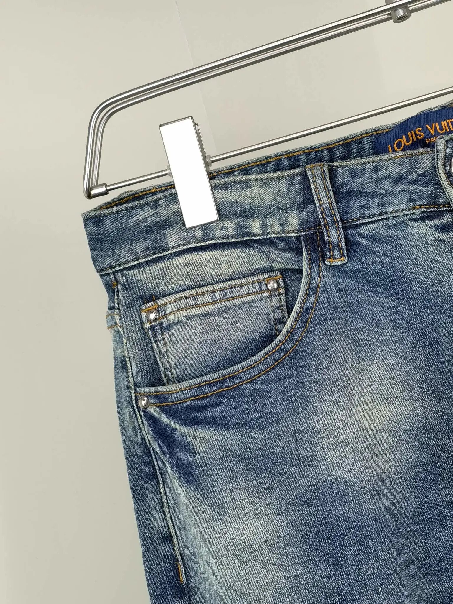 LV 2025?New Original Washed Jeans High Version Original Development High-end Quality Feel Free to Compare Original Custom Hardware Logo Heavy Craft Embroidery Soft and Durable Denim Fabric Fits Leg Lines Comfortable Fashionable (Three Labels Complete)