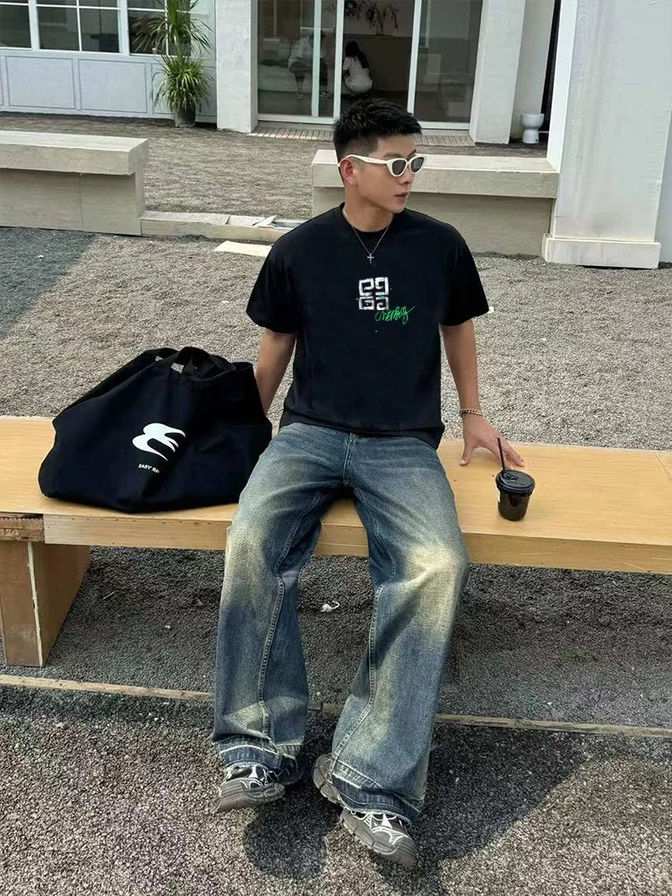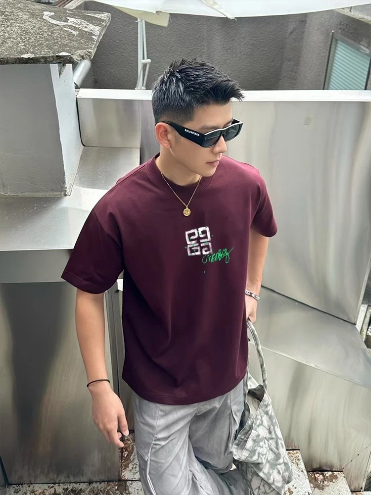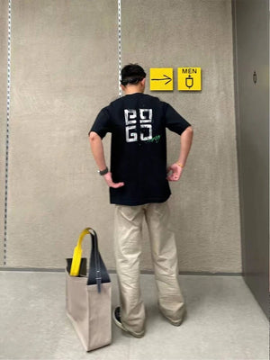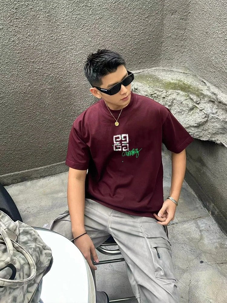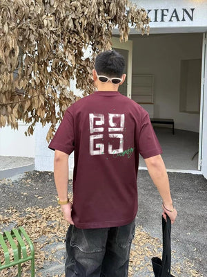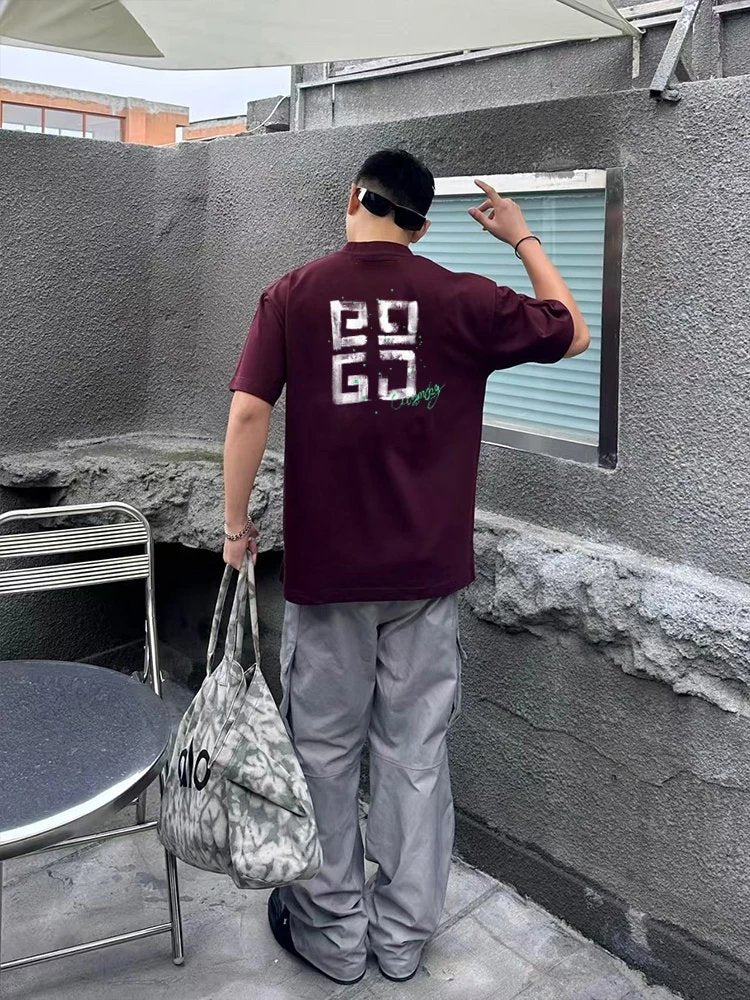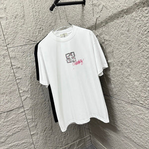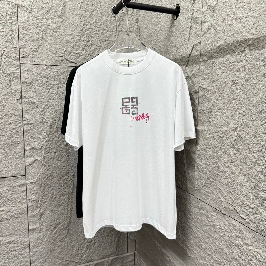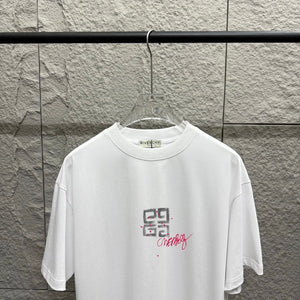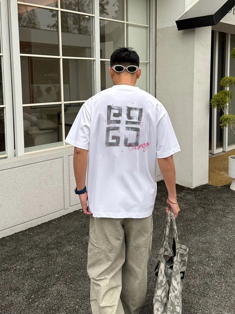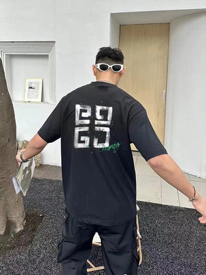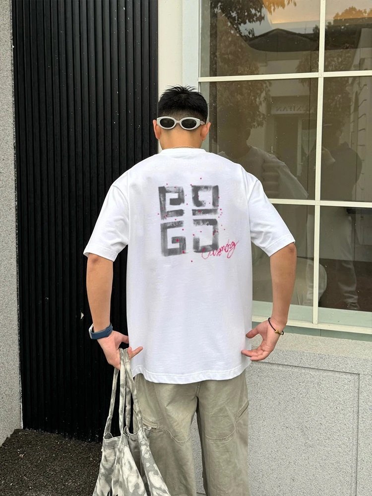 Givenchy T-shirt Back Splash Ink Letter Totem Print logo round Neck Short Sleeve25ss New pure cotton T Unisex T-Shirt OS Drop Shoulder Loose Fit Base Shirt Top T-Shirt Short Sleeve
