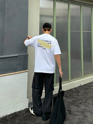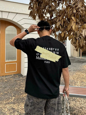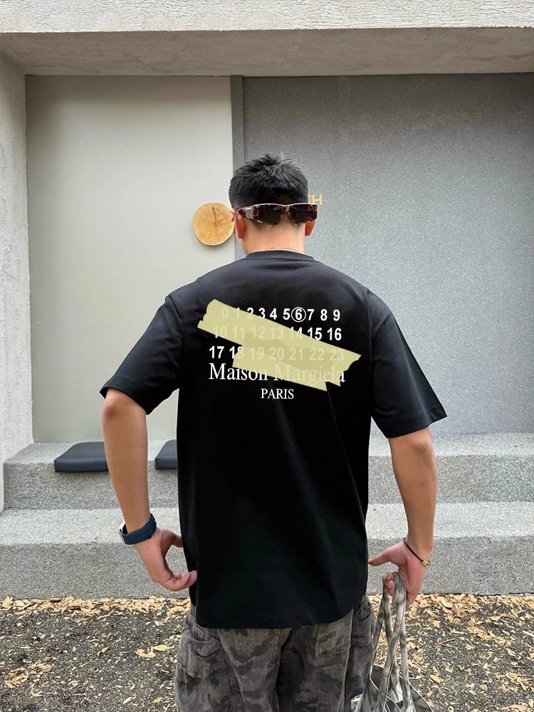 Maison Margiela T-shirt Back Tape Print Round Neck Short Sleeve Pure Cotton T T-shirt ins Unisex Simple Summer New Casual Base Shirt T-Shirt