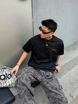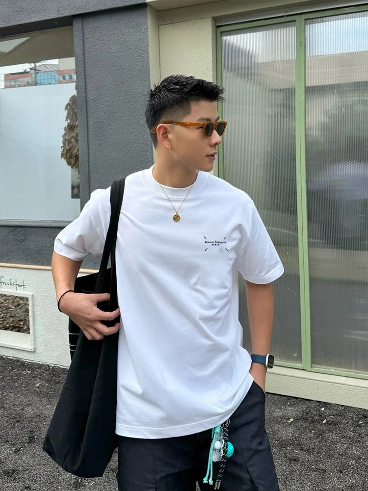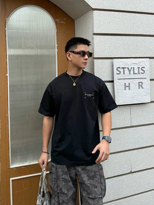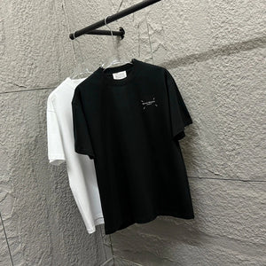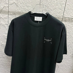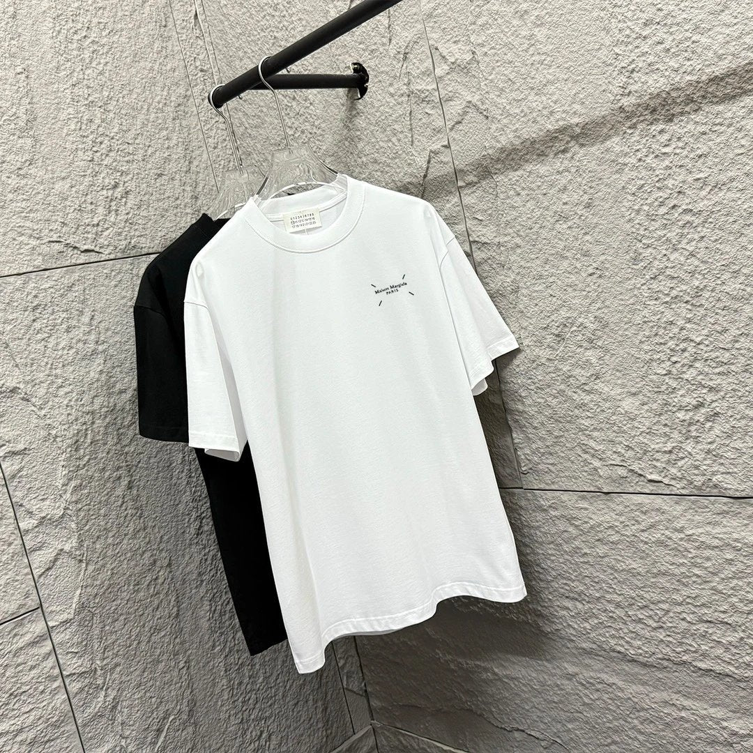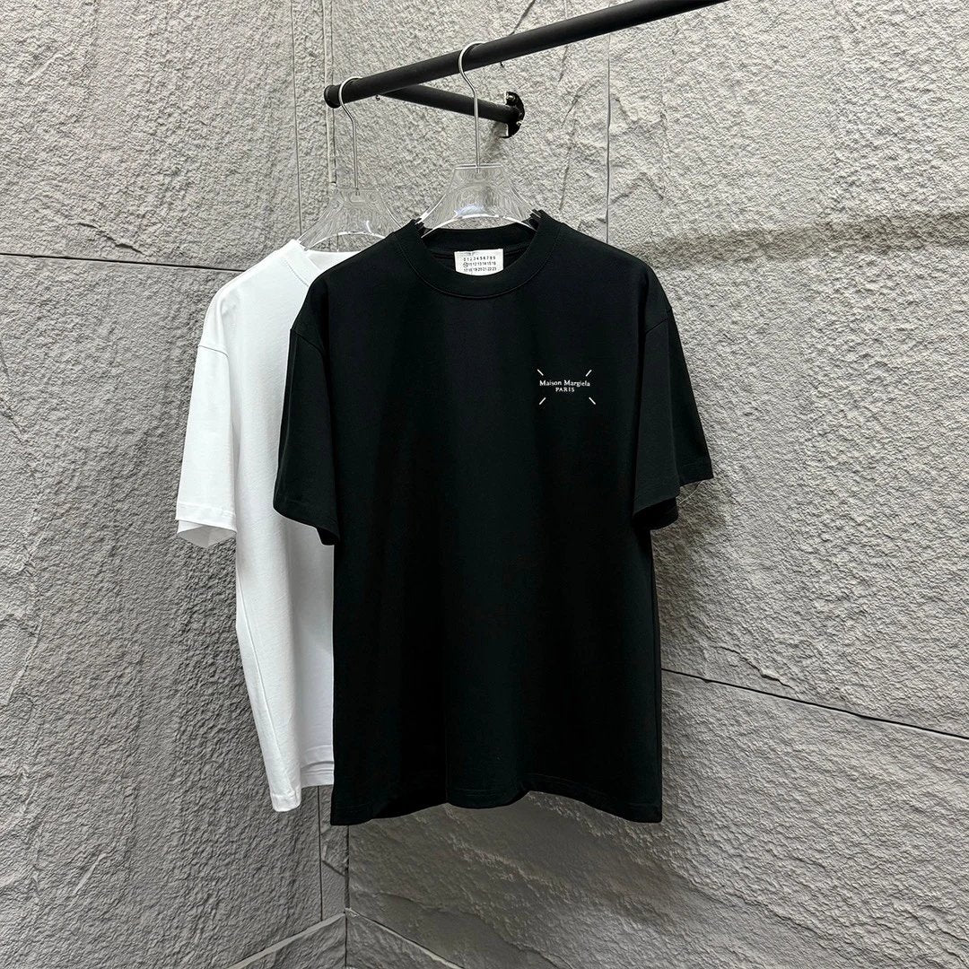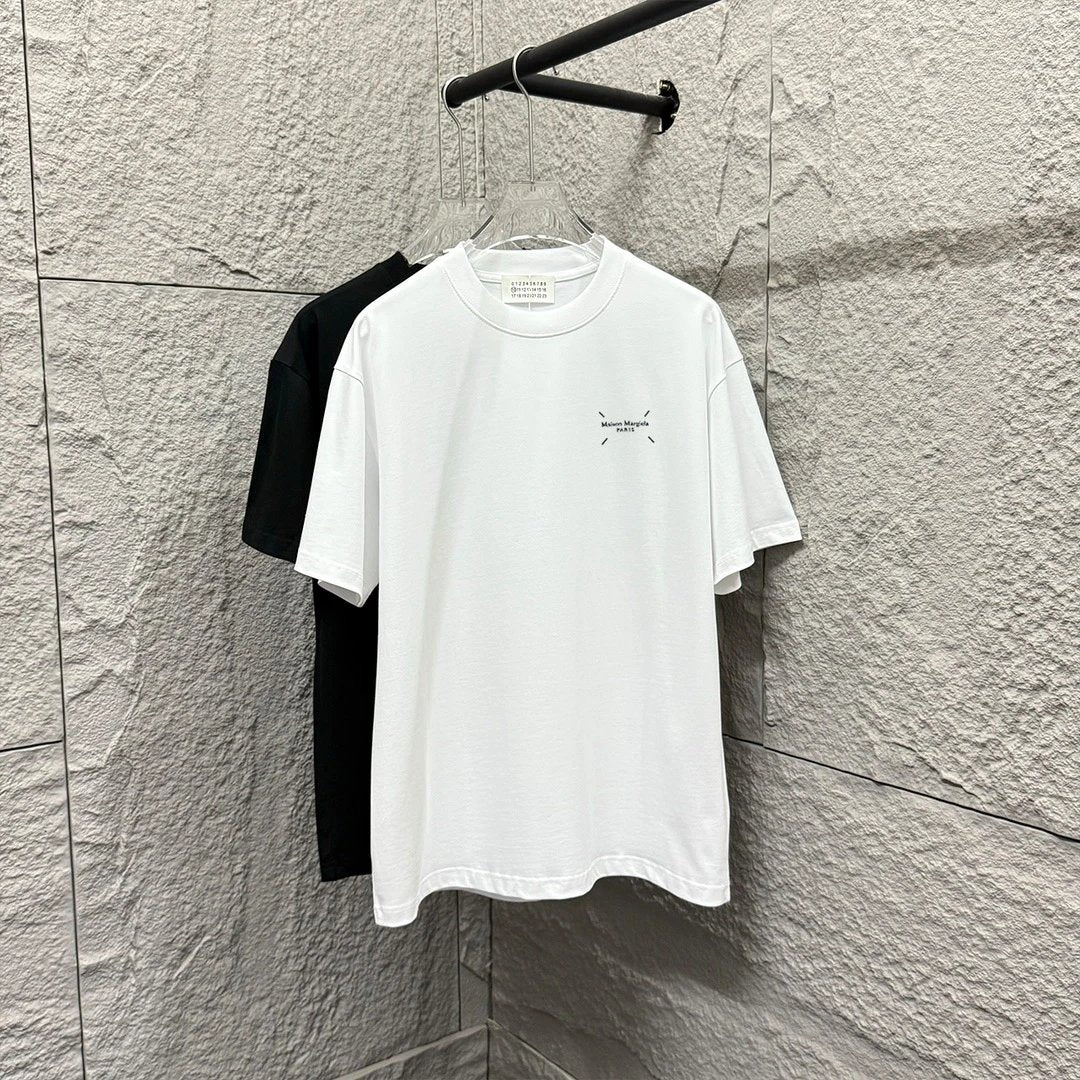 MM6 Maji*2025 Spring/Summer New Chest Letter Embroidery Back Tape Print Short Sleeve T-Shirt Custom Double Yarn Plain Cotton 300 Fabric Unisex