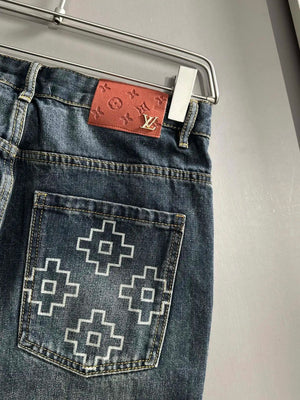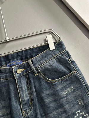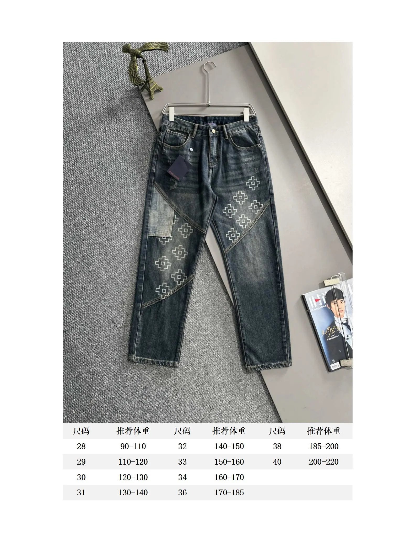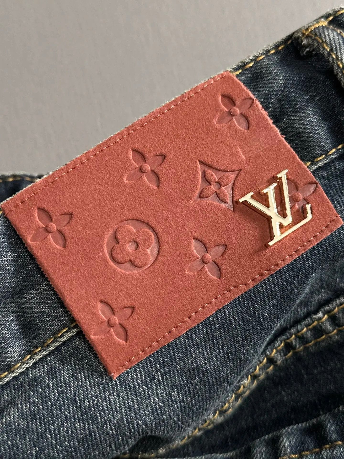 Louis Vuitton LV Jeans Back Waist Leather Tag logo Straight Washed Blue Jeans Autumn Winter New Unisex Long Pants Loose Casual High Waist