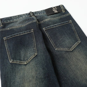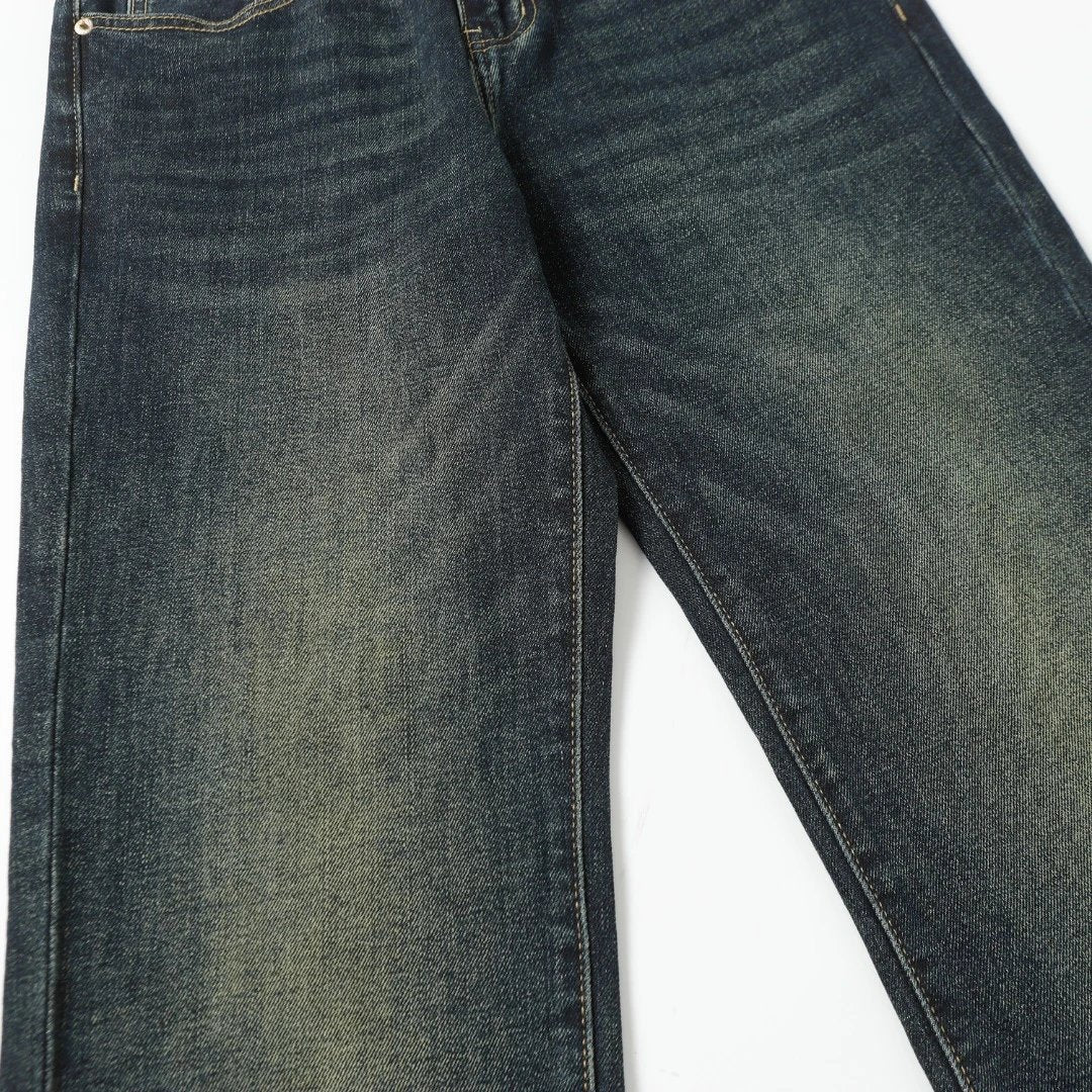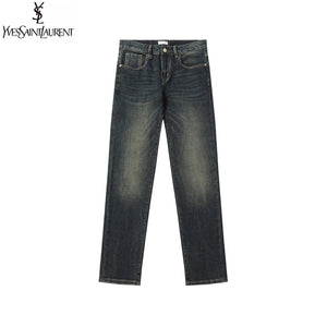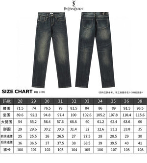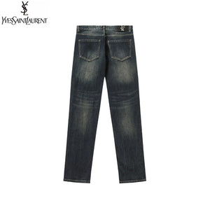 YSL Jeans Back Waist Leather Tag logo Straight Washed Blue Jeans Autumn Winter New Unisex Loose Casual Wide Leg High Waist Pants
