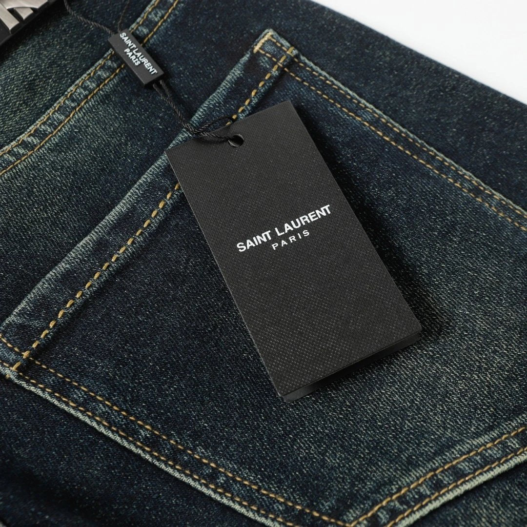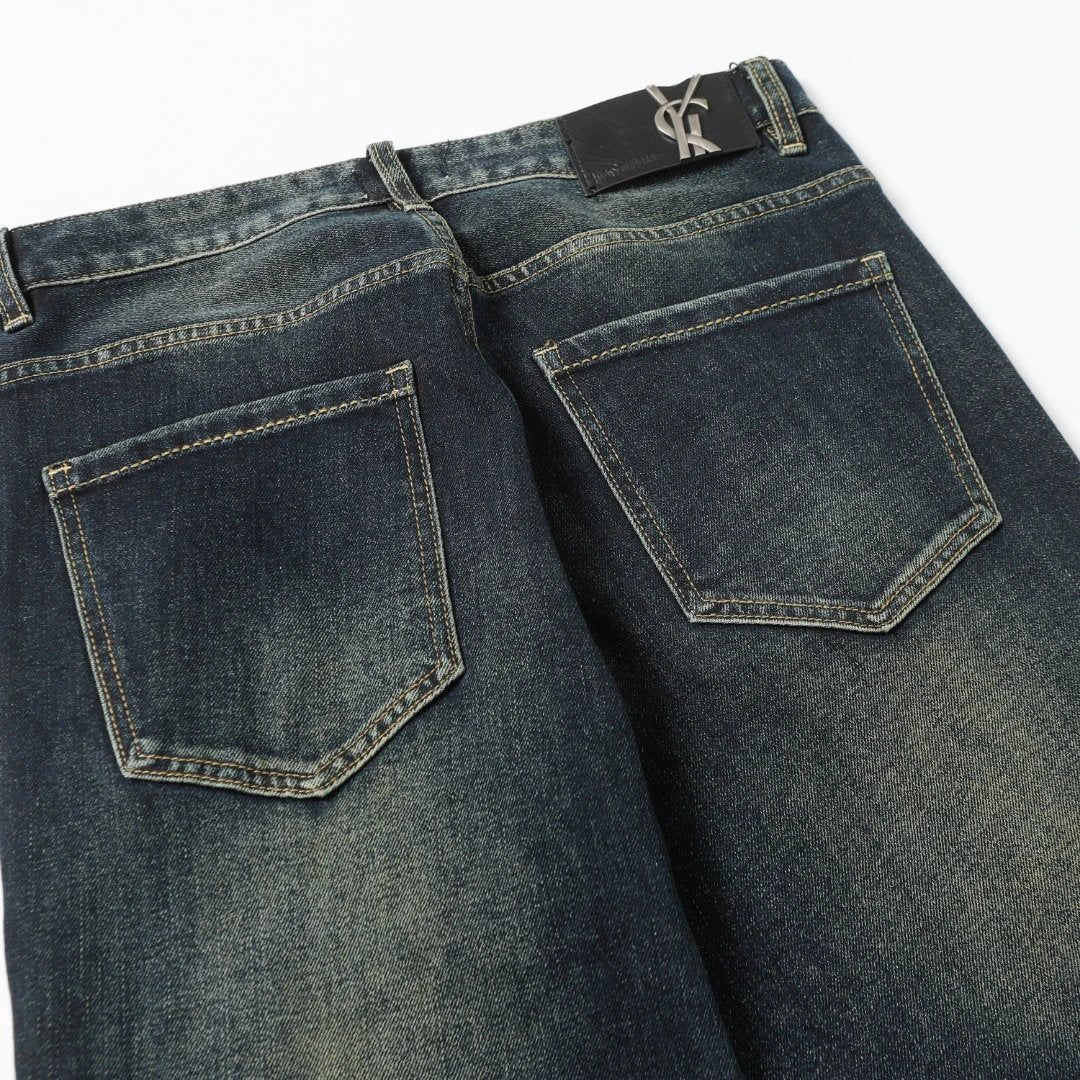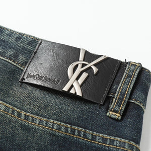 SLP Saint Laurent Back Waist Leather Label Logo Straight Washed Blue Jeans Autumn Winter New Unisex Loose Casual Wide Leg High Waist Pre-Purchase Instructions
