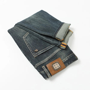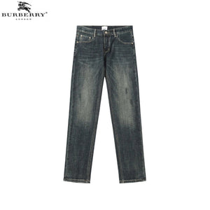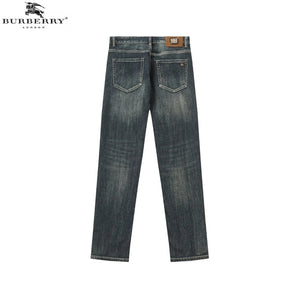 Burberry Jeans Back Waist Leather Tag logo Straight Washed Blue Jeans Autumn Winter New Unisex Loose Casual Wide Leg High Waist Pants