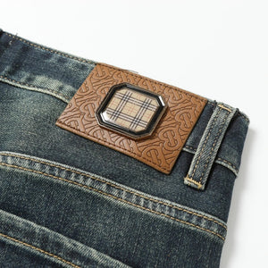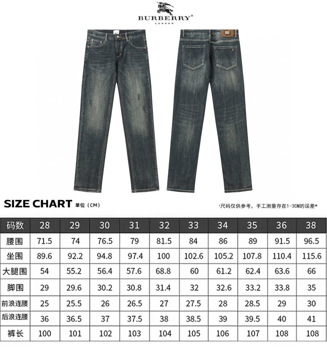 BBR Burberry Back Waist Leather Label Logo Straight Washed Blue Jeans Autumn Winter New Unisex B Parent Pants Loose Casual Wide Leg High Waist Pre-Purchase Instructions