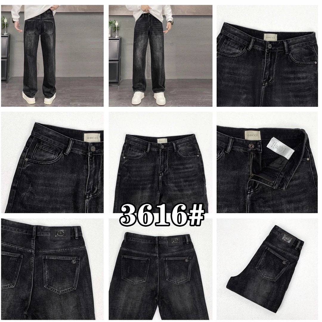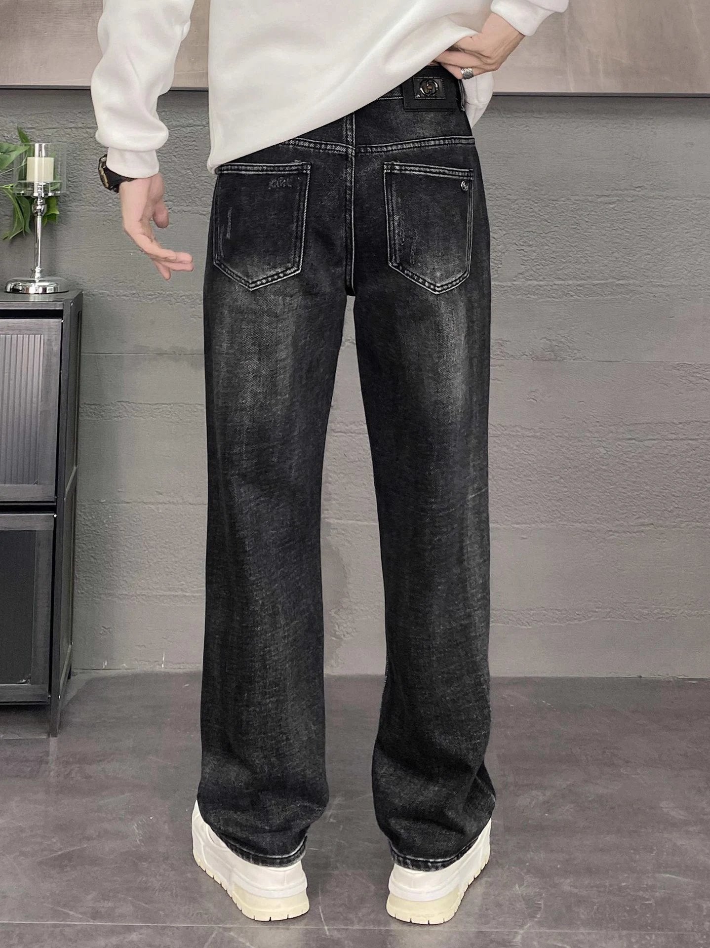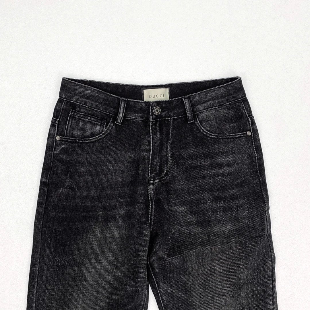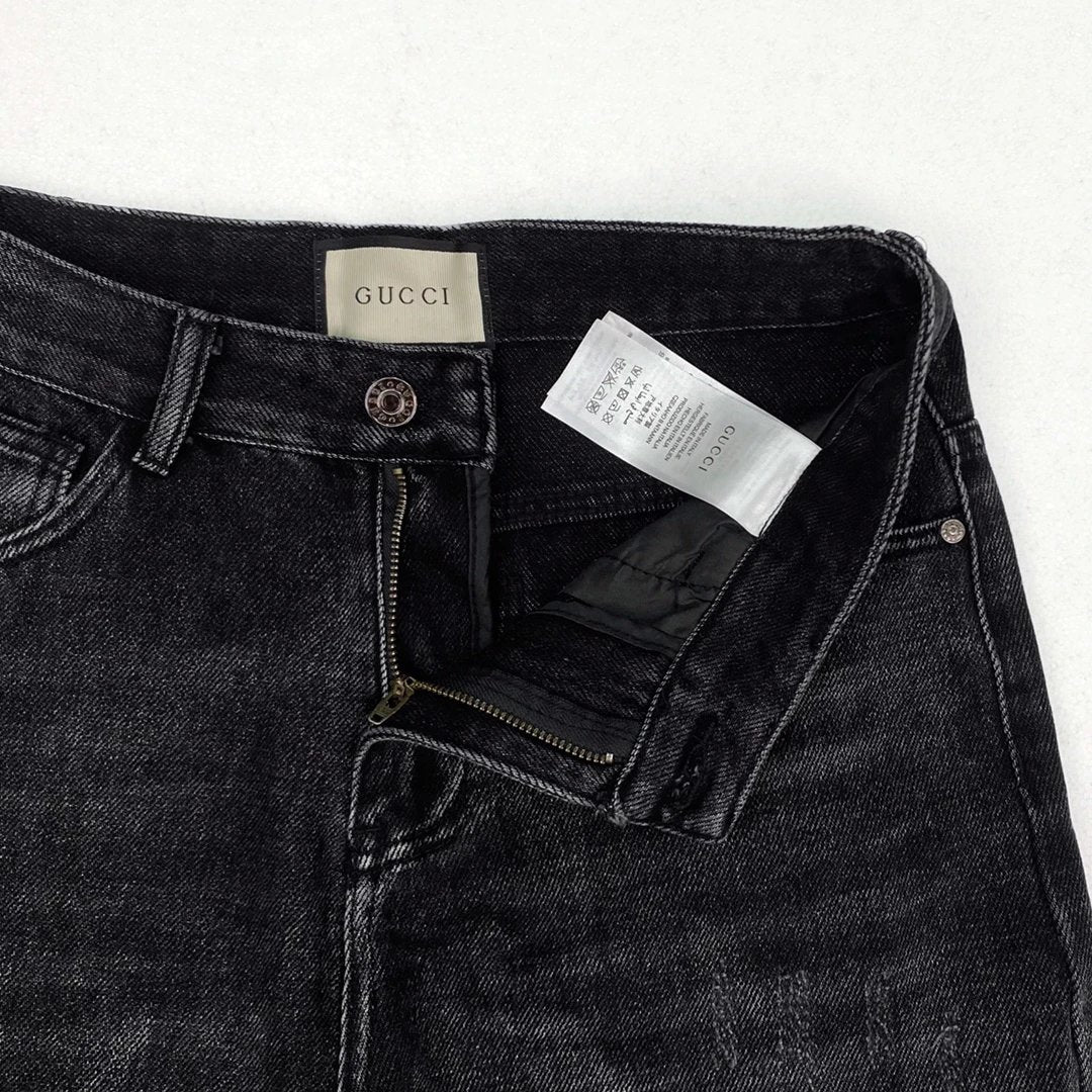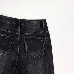 Gucci Jeans Back Waist Leather Tag logo Straight Washed Blue Jeans Autumn Winter New Unisex Loose Casual Wide Leg High Waist Pants