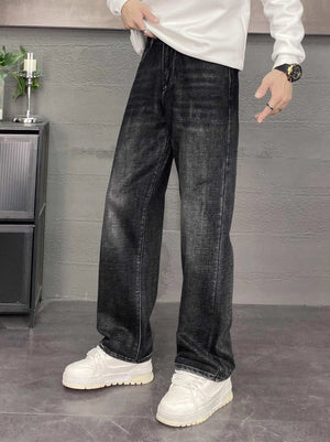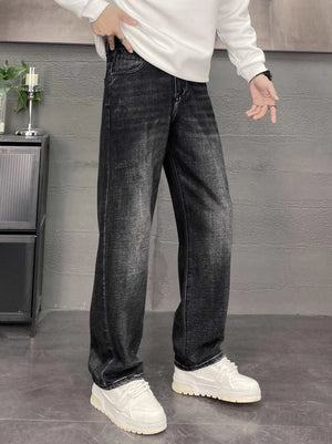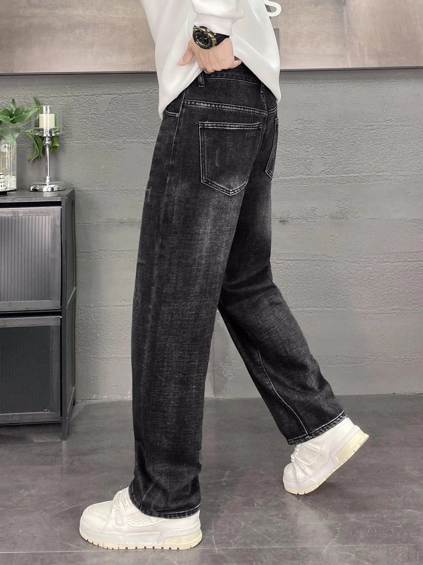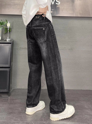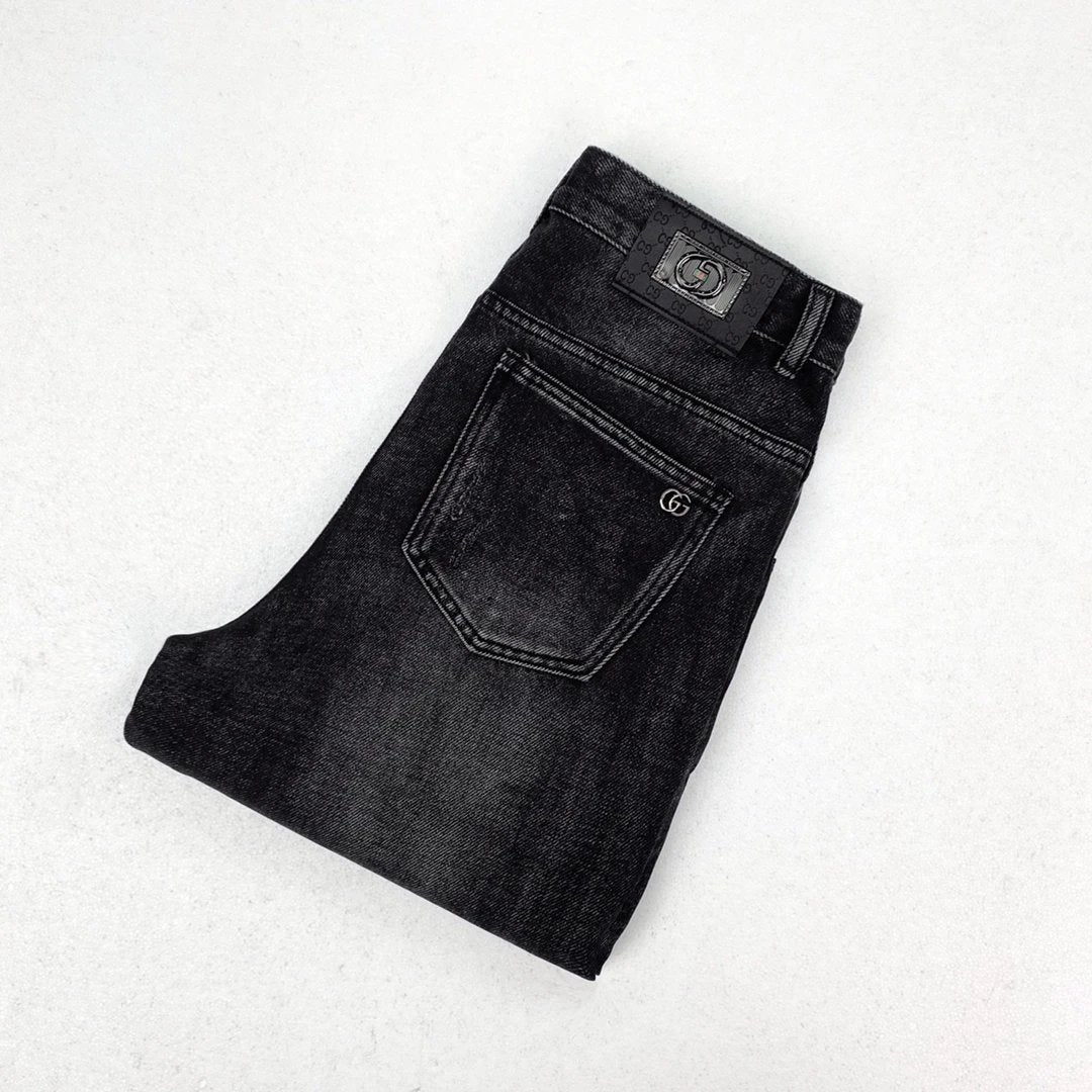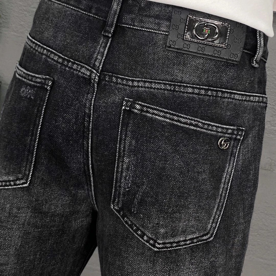 Gucci Jeans Back Waist Leather Tag logo Straight Washed Blue Jeans Autumn Winter New Unisex Loose Casual Wide Leg High Waist Pants