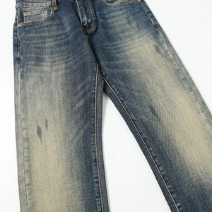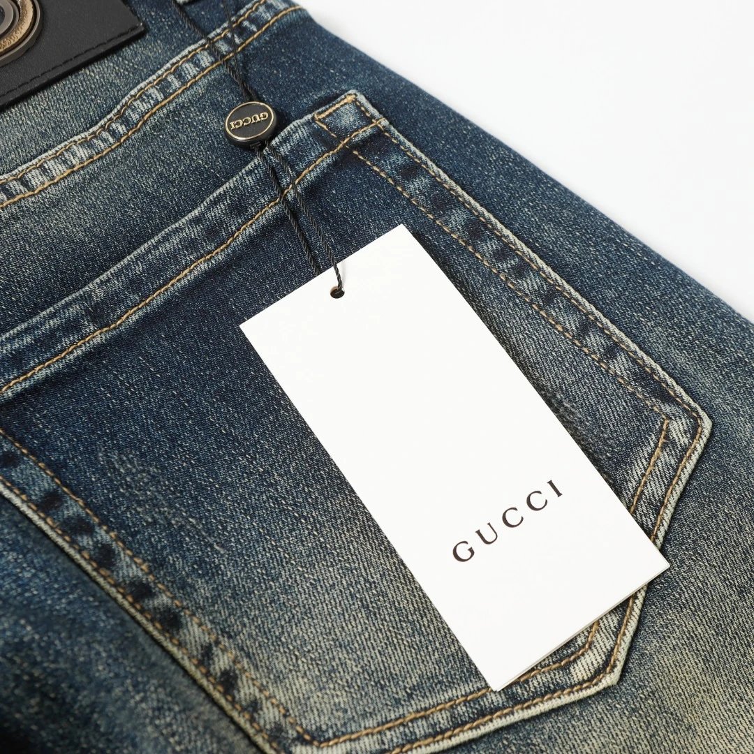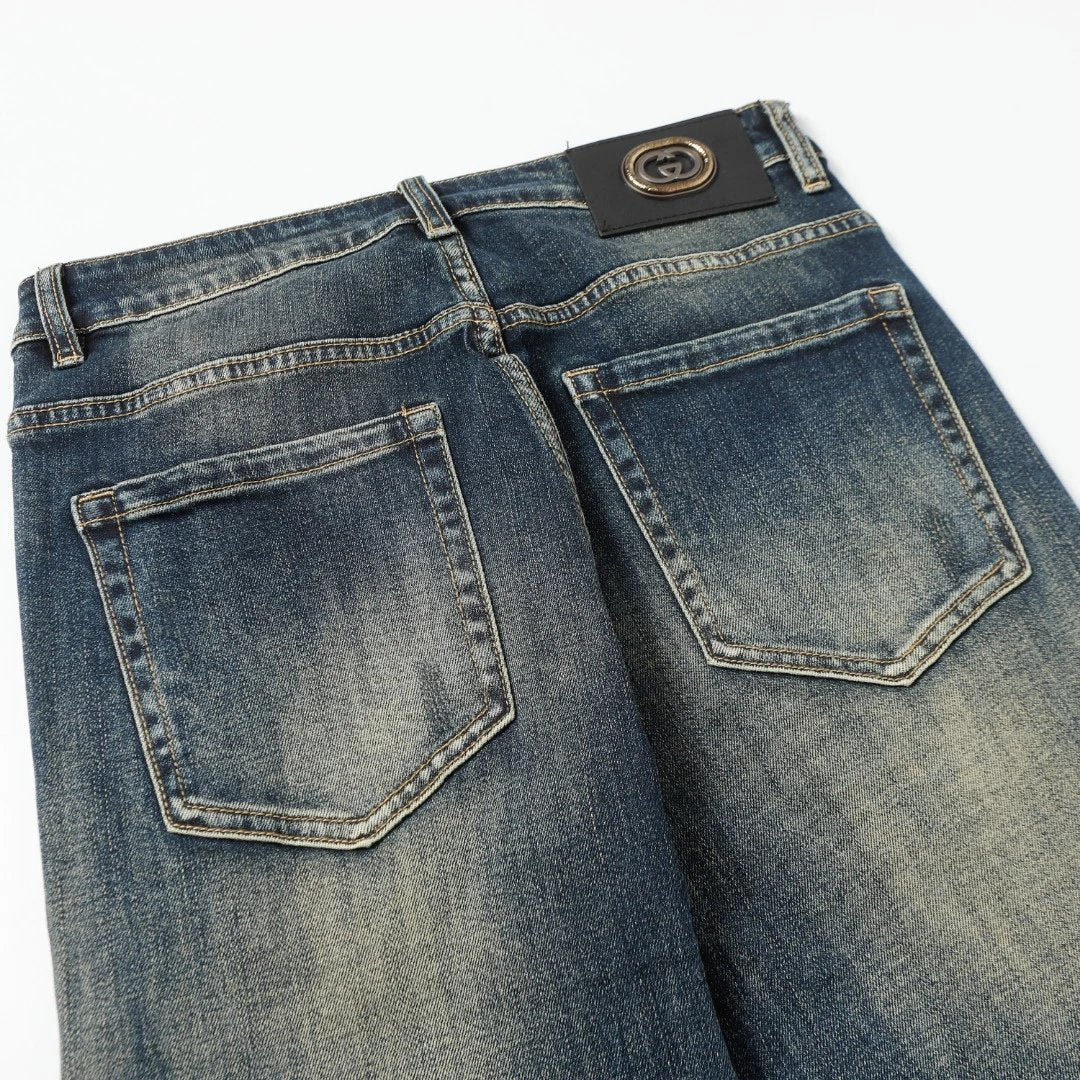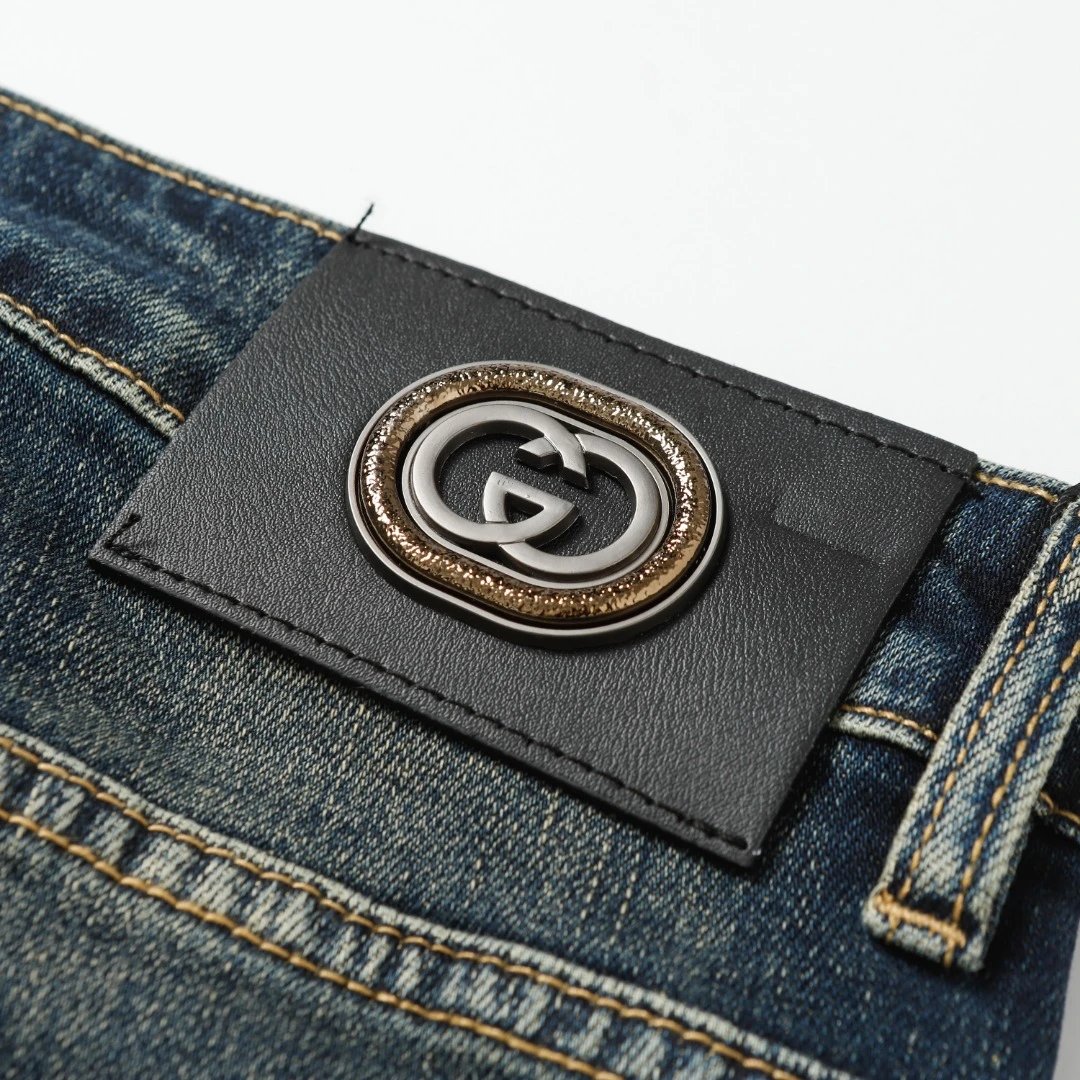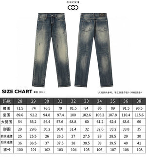 Gucci Jeans Back Waist Leather Tag logo Straight Washed Blue Jeans Autumn Winter New Unisex Loose Casual Wide Leg High Waist Pants