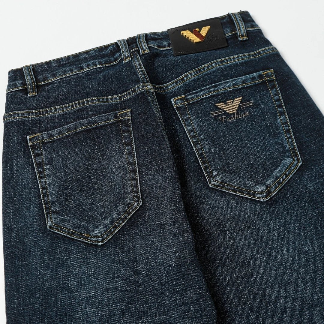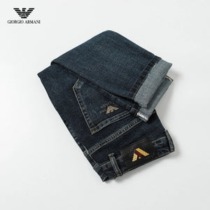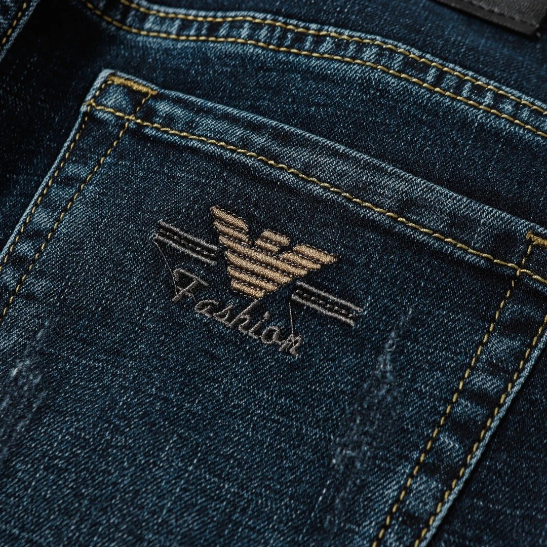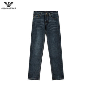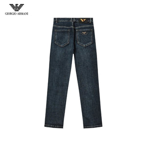 AMANI Armani Back Waist Leather Label Logo Straight Washed Blue Jeans Autumn Winter New Unisex Loose Casual Wide Leg High Waist Pre-Purchase Instructions